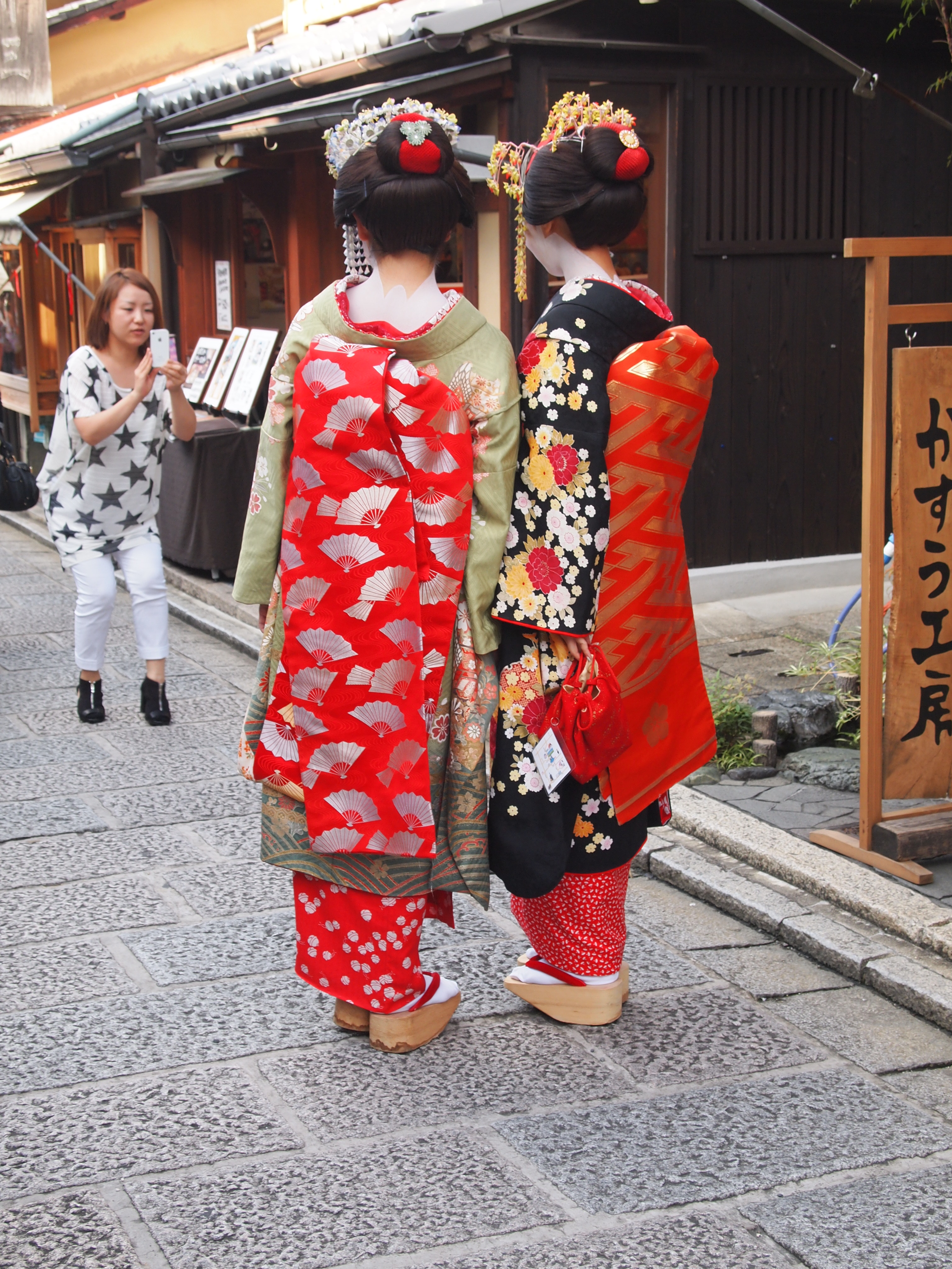 After our ceremony we walked around and poked in the shops on Ninen-zaka and Sannen-zaka. We saw some girls dressed up as maiko (apprentice geisha) walking around and many, many, girls in kimonos.
