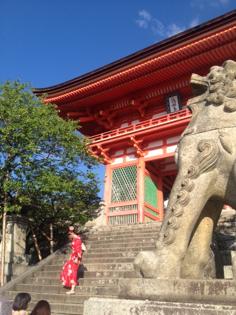 We went up to Kiyomizu-dera which was nearby. We probably shouldn’t have because we were tired and hot and hungry, but it was so close we thought we ought to visit. Kiyomizu-dera is a Hossō Buddhist temple that was built in 798. The current buildings are reconstructions from 1633. Unfortunately many of the buildings were under renovation so we could only see a little bit and that made the crowds even more unbearable. We decided to leave and do something else.