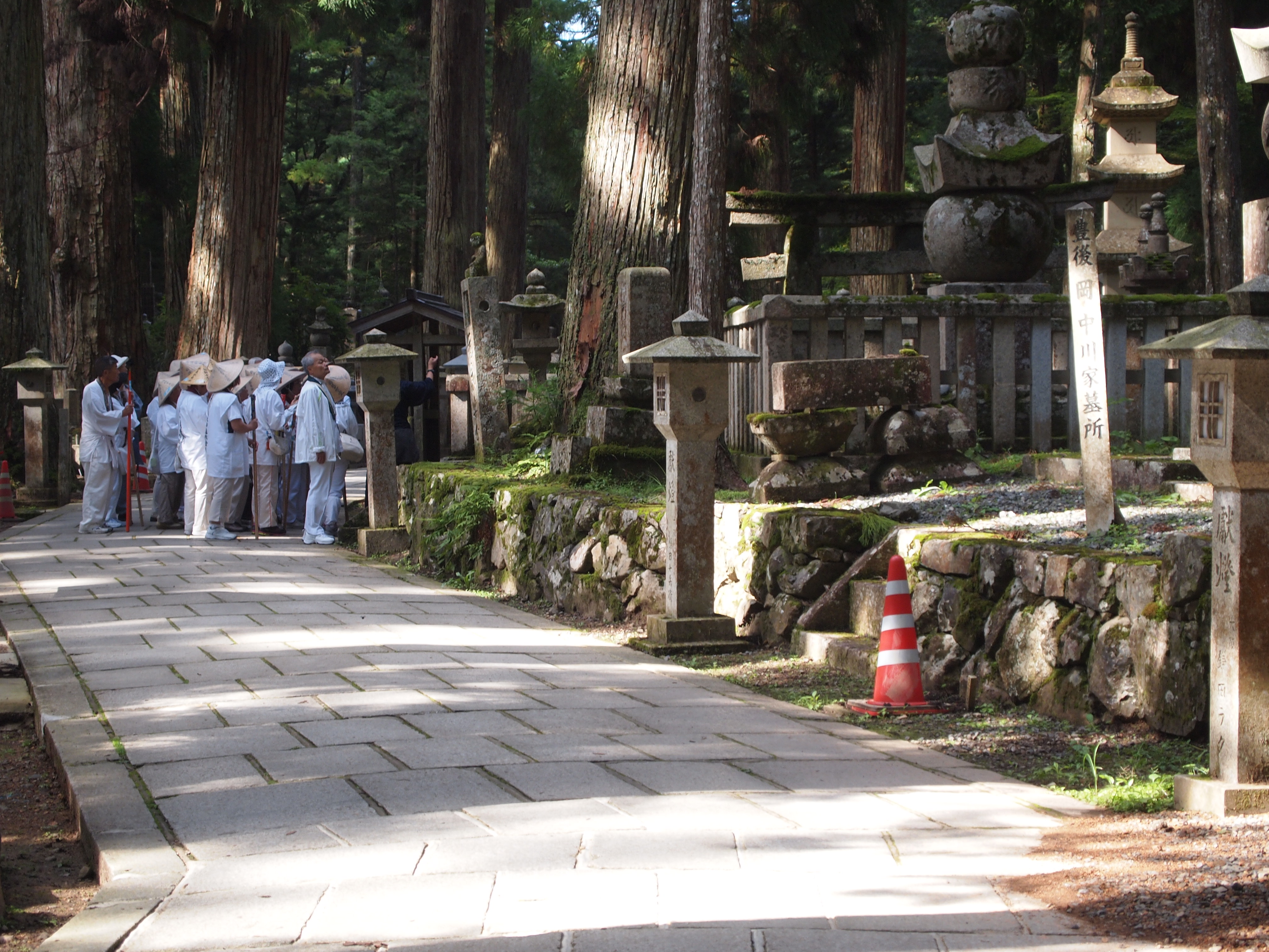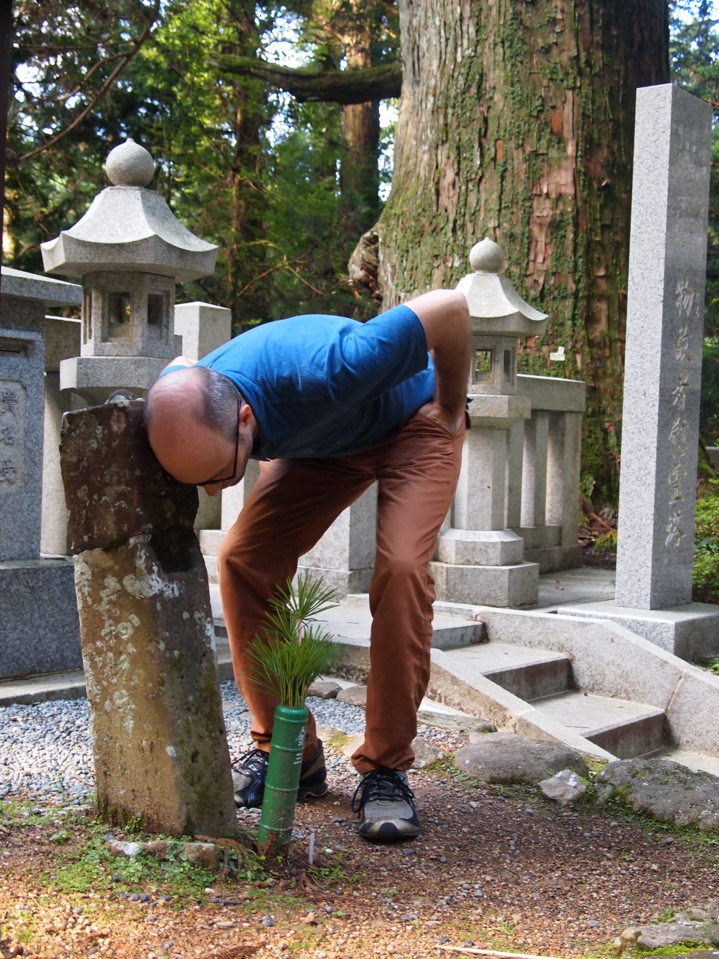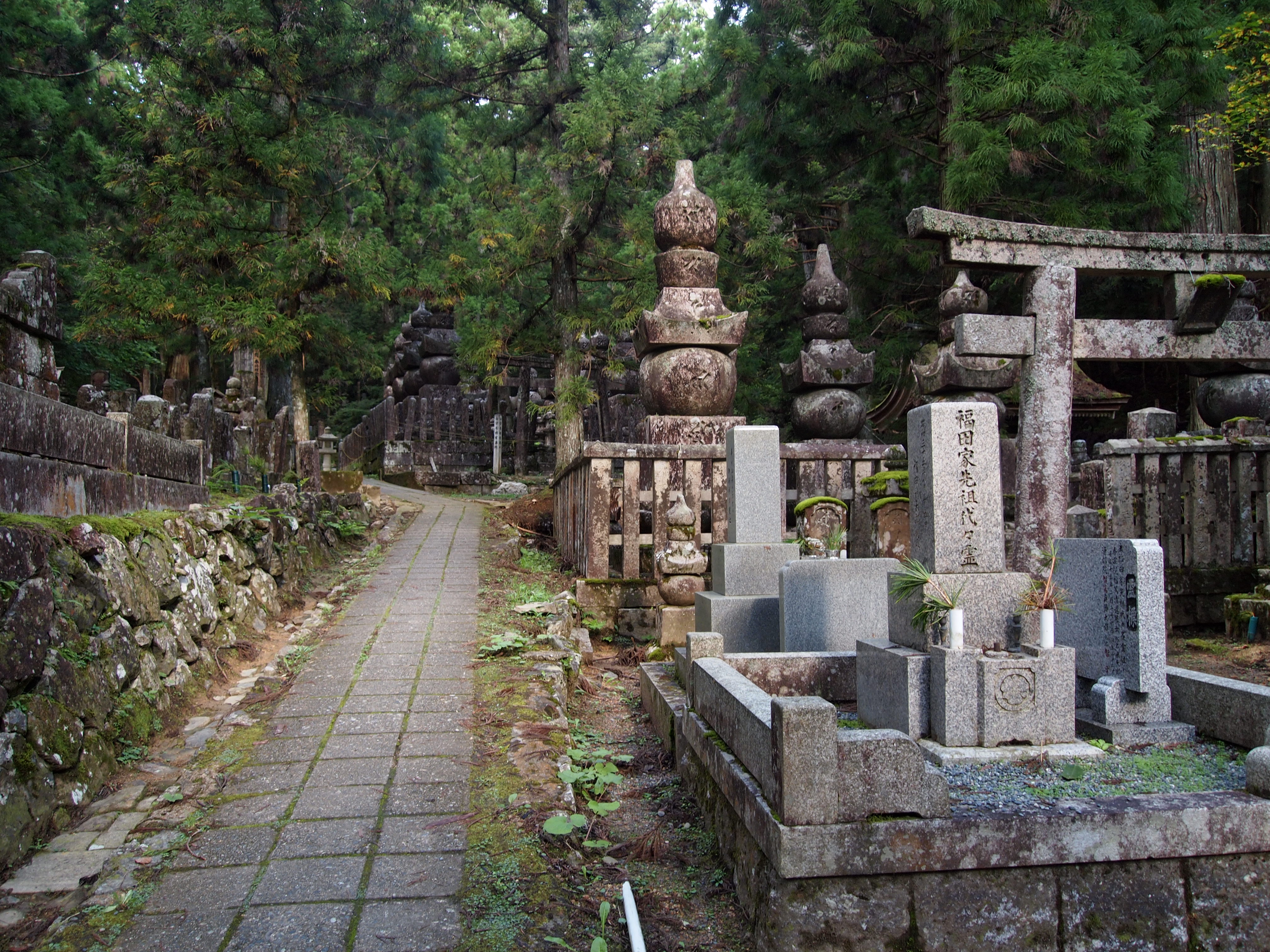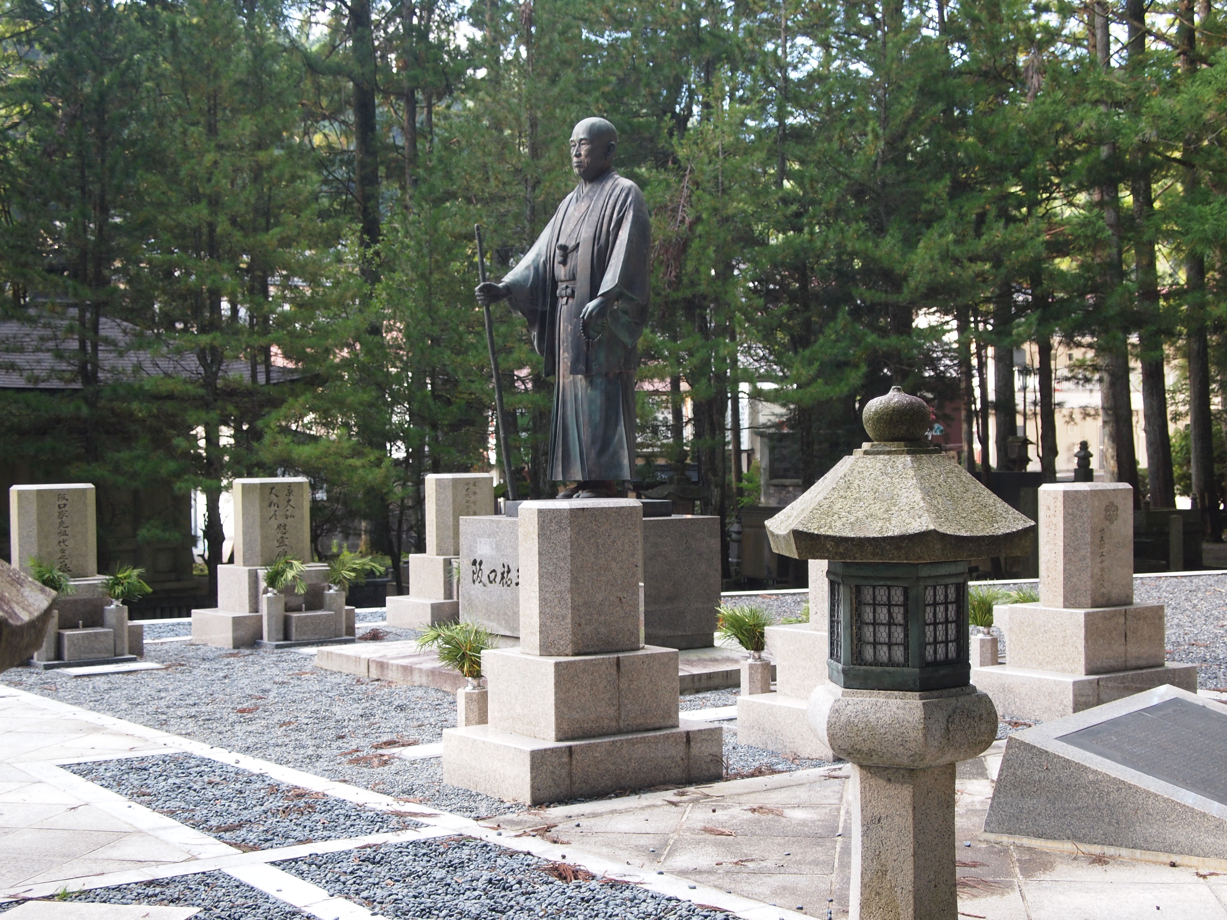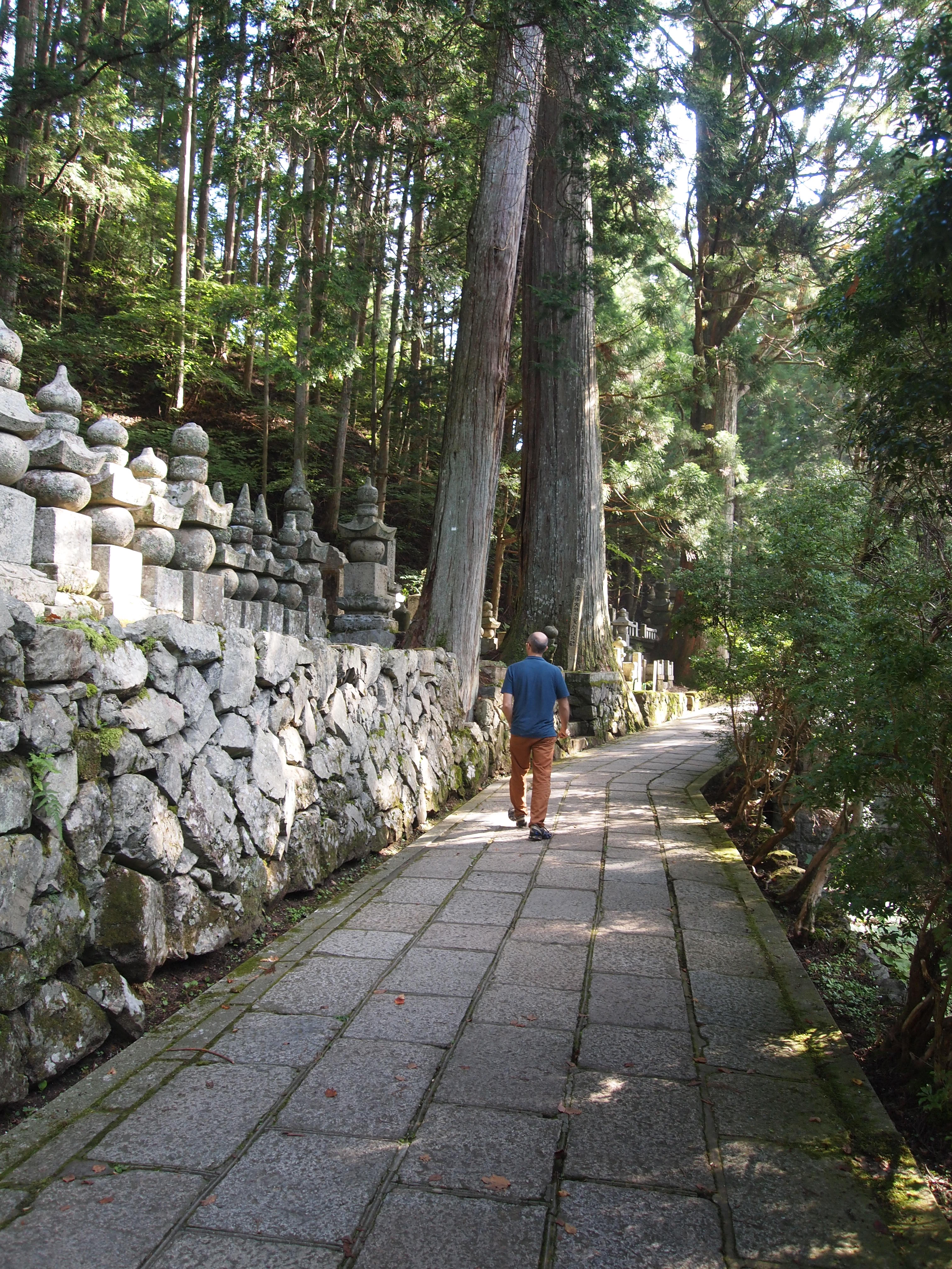 Anyhow, after breakfast, we decided to explore a little of the town. Our temple was next to the cemetery path that leads to Okunoin, regarded as Koyasan’s most sacred site and one of the most sacred sites in Japan. Okunoin is where the mausoleum of Kobo Daishi is located. Kobo Daishi (or Kukai) was the founder of Shingon Buddhism. He is not believed to be dead but in an eternal meditation (since 835) while he awaits the Buddha of the Future, Miroku Nyorai.