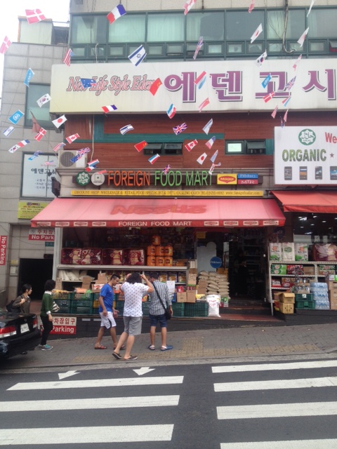 On Saturday we went and saw our first movie in Korea at our neighborhood CGV theater. We bought our tickets at the theater on a large electronic machine. It had an English option so it was pretty simple to figure out. Our tickets were ₩10,000 each ($10) which is comparable to theaters in the US. Then we bought some popcorn and drinks at the snack bar; it was only ₩8,500 for a large popcorn and 2 drinks! There was a little confusion at first because we didn’t realize there were two types of popcorn – sweet and regular. The sweet looked kind of like a caramel corn? We’ll have to try it out next time. We waited in the lobby next to the arcade until about 10 minutes before the film. Then our theater number was displayed and we could go into our theater. We saw an American movie, Begin Again, with Keira Knightley and Mark Ruffalo. It’s probably not a movie we would have typically seen but it was very enjoyable – I would call it “a feel good” movie – and it was almost disorienting to step out of the theater and back into Korea. ( I apologize for the poor photos!)