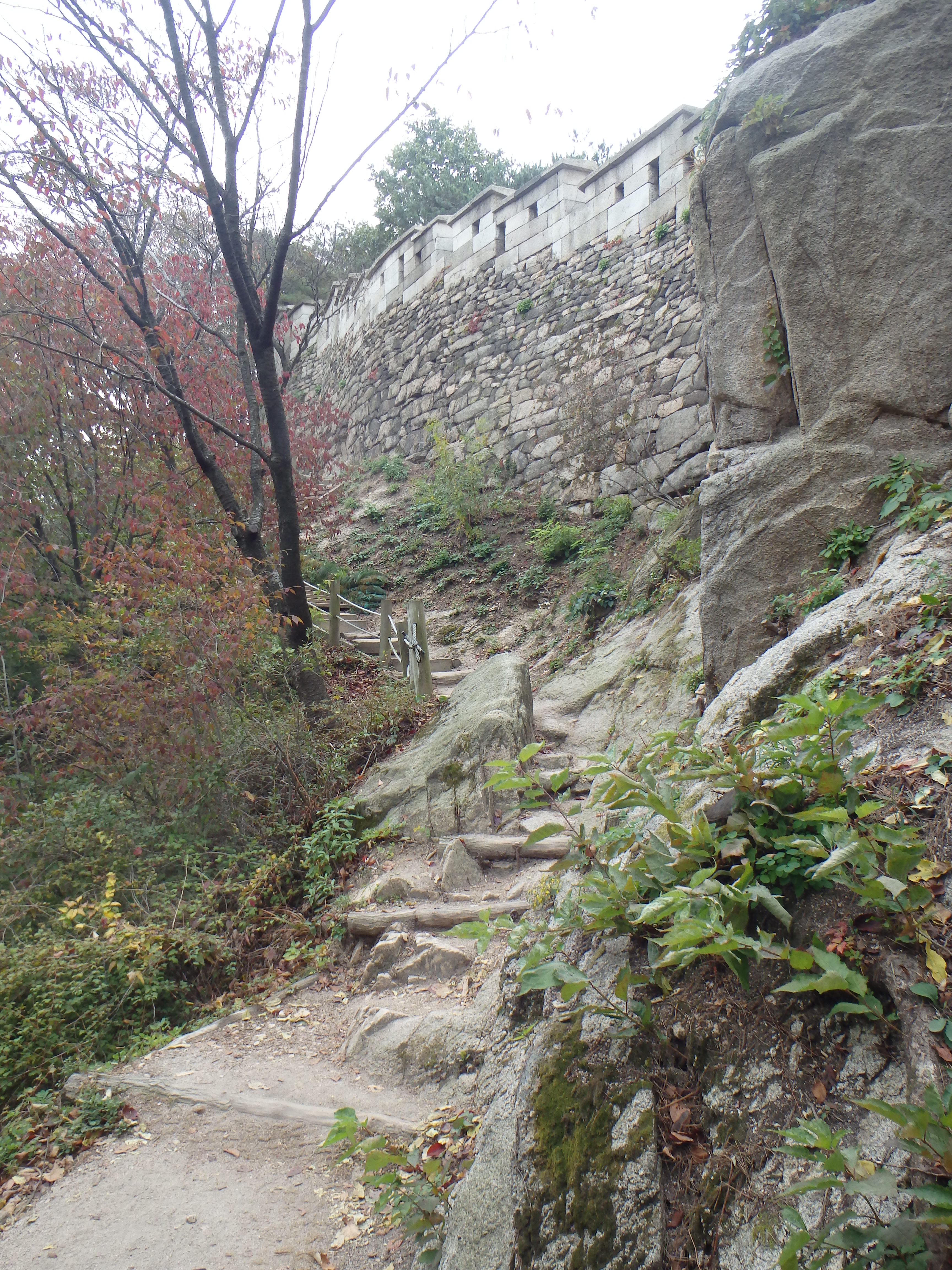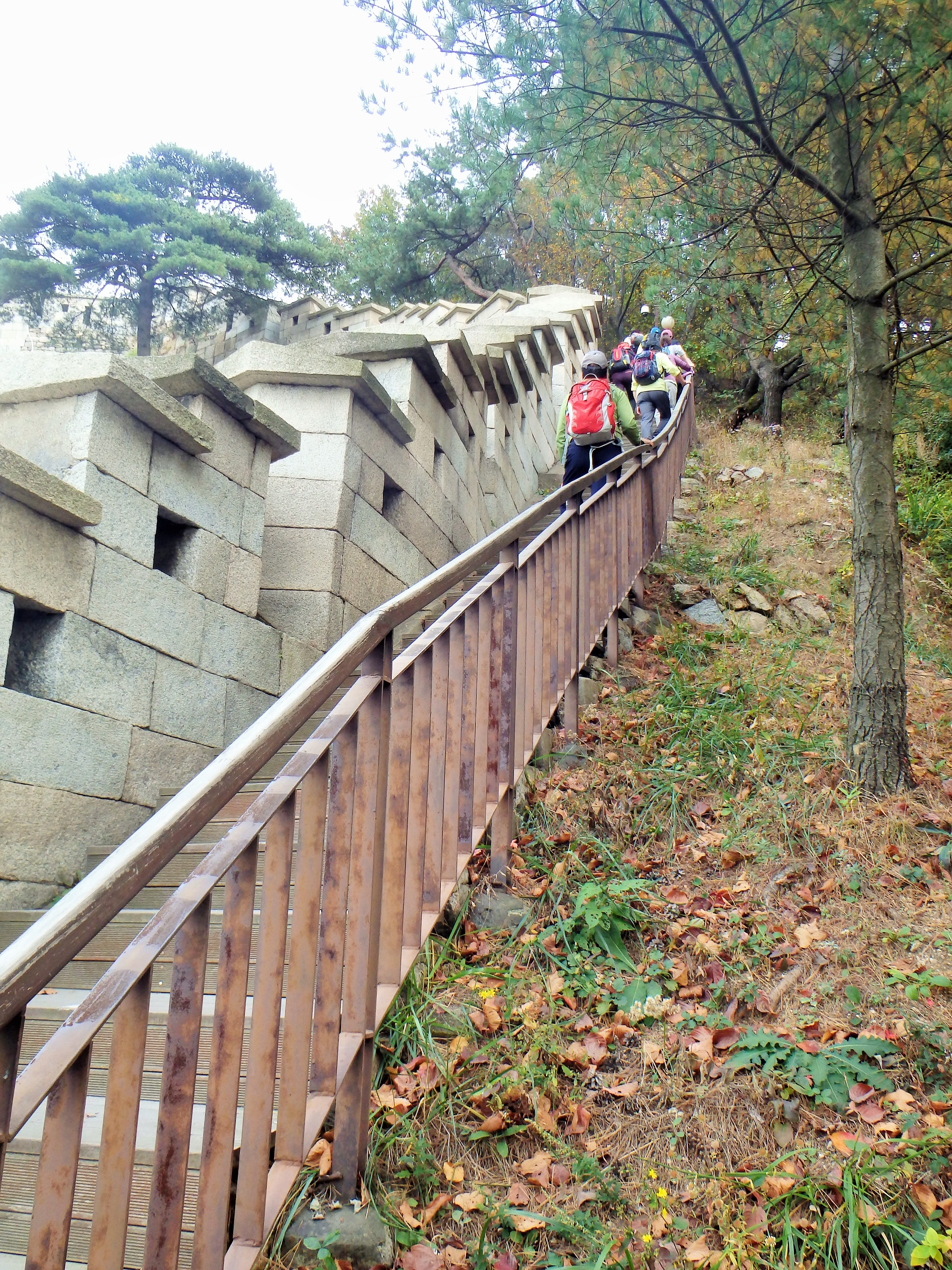 Beginning the hike – most of the Fortress Wall that remains was constructed during the reigns of King Taejo (1396), King Sejong (1422), and King Sukjong (1704)