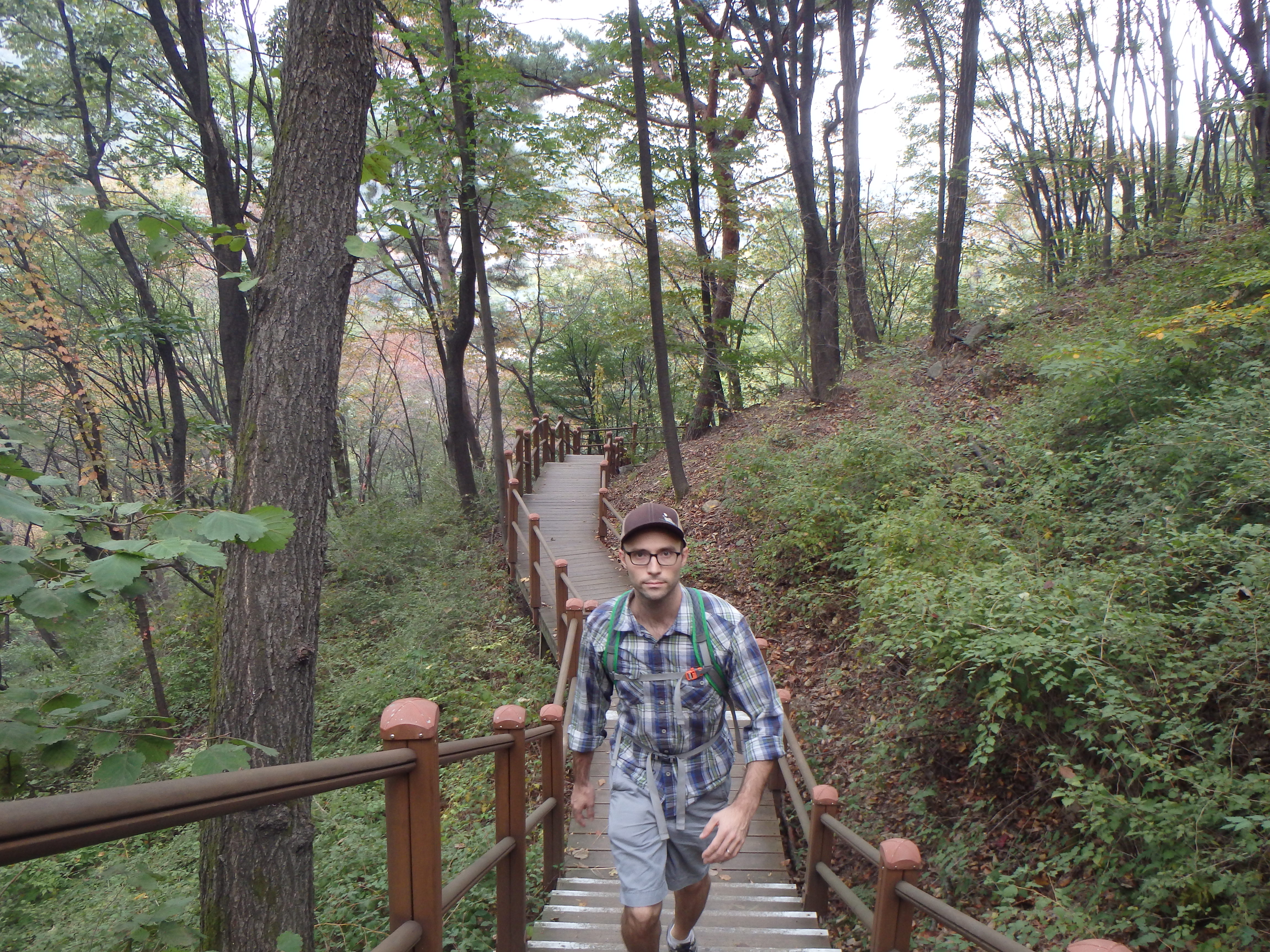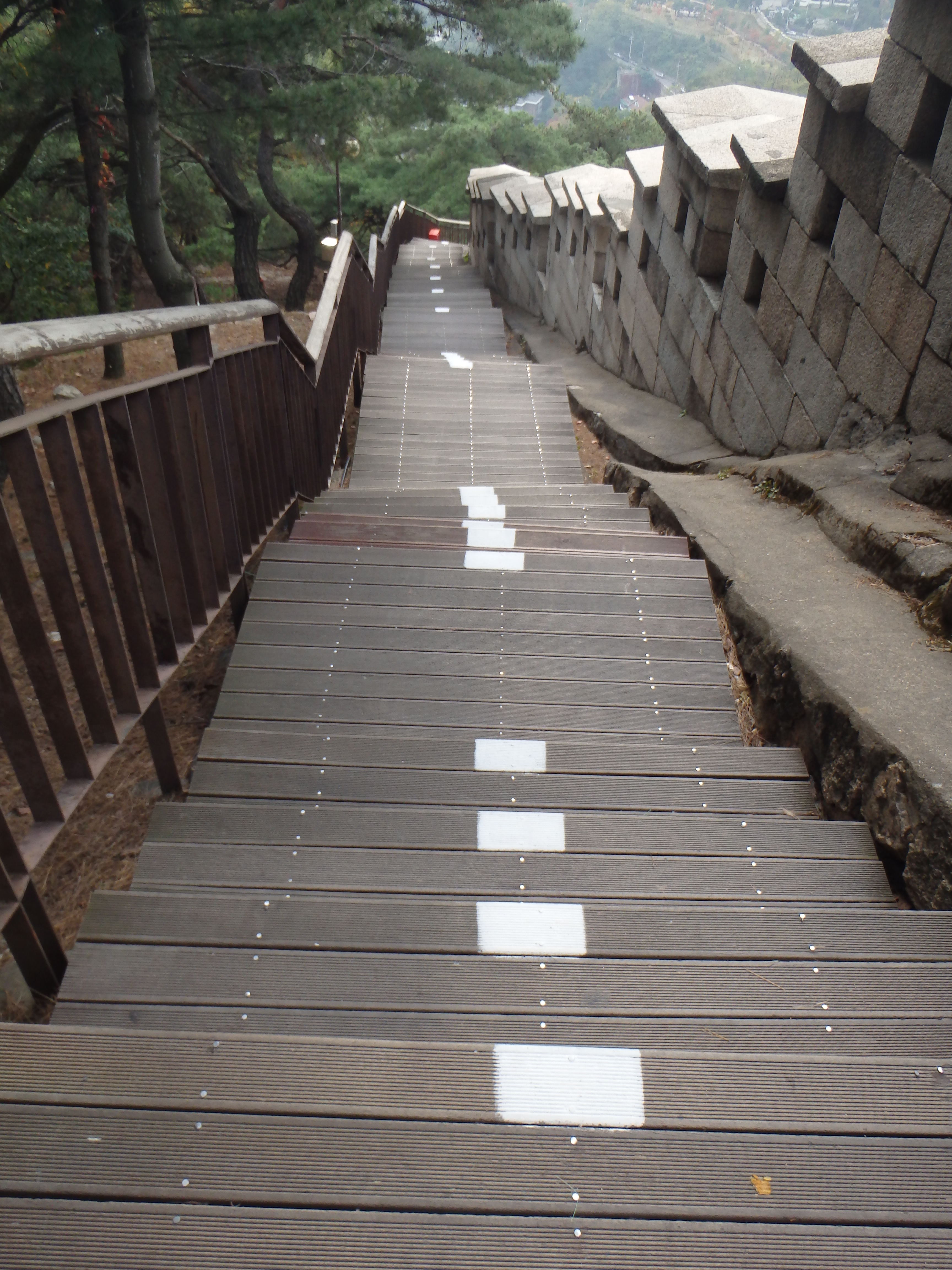 The trail itself was pretty disappointing for us. It was nothing like what we’re used to at home. It wasn’t really a trail at all. It was mostly a series of stairs! Ugh, switchbacks were invented for a reason! However, this trail is meant for tourists so hopefully other mountains in Korea won’t be similar. Thankfully, we did not begin our hike where we ended it because that would have been horrific! It was straight down the mountain with little relief. I guess to keep you next to the wall??