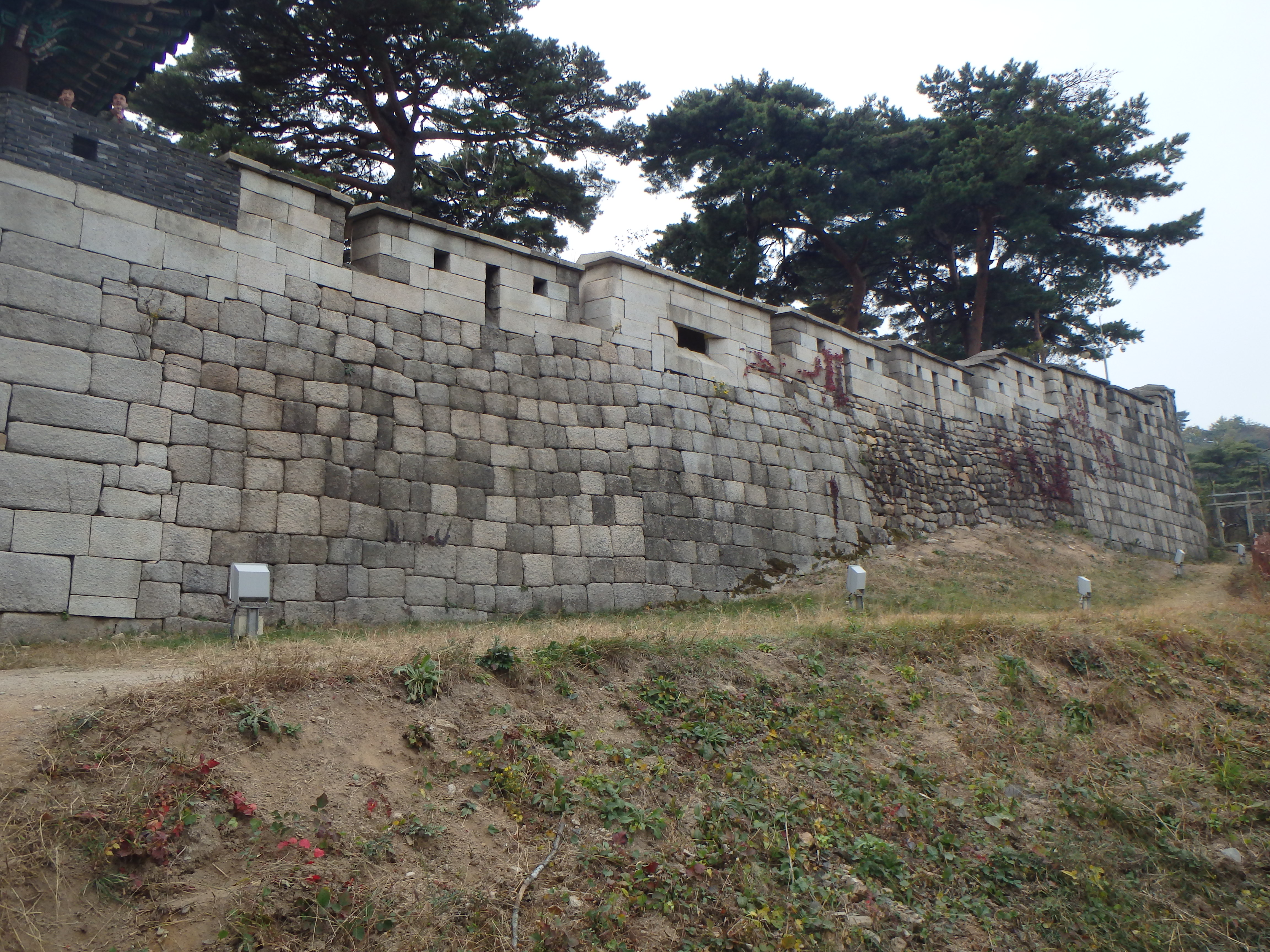 Larger, more standardized boulders characterize the repairs made during King Sukjong’s reign. Each boulder required 4 workers to carry it