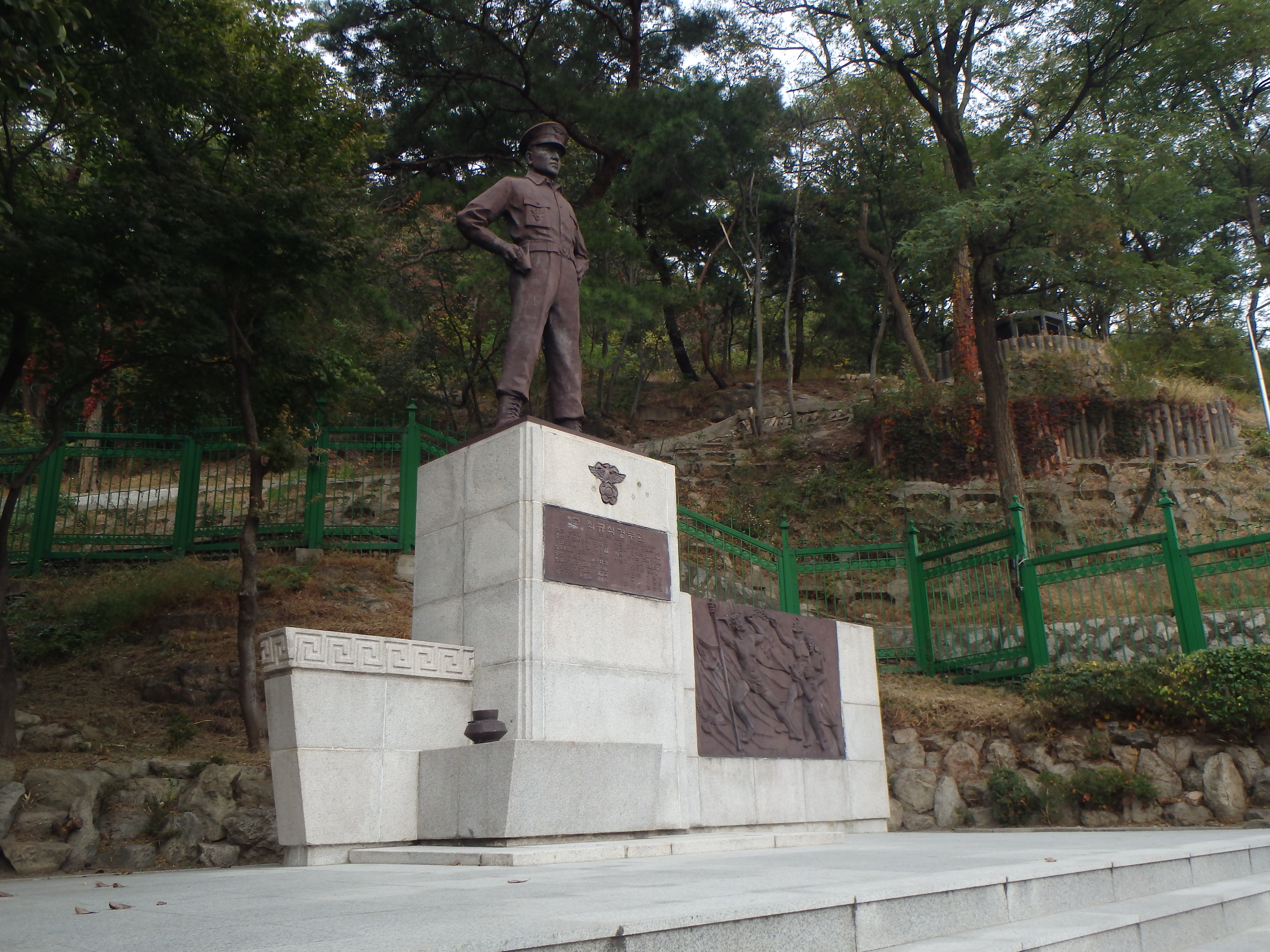 This is a statue Choi Gyu Sik, a police chief who was mortally wounded during the firefight. He is credited with stopping the commandos before they got to The Blue House