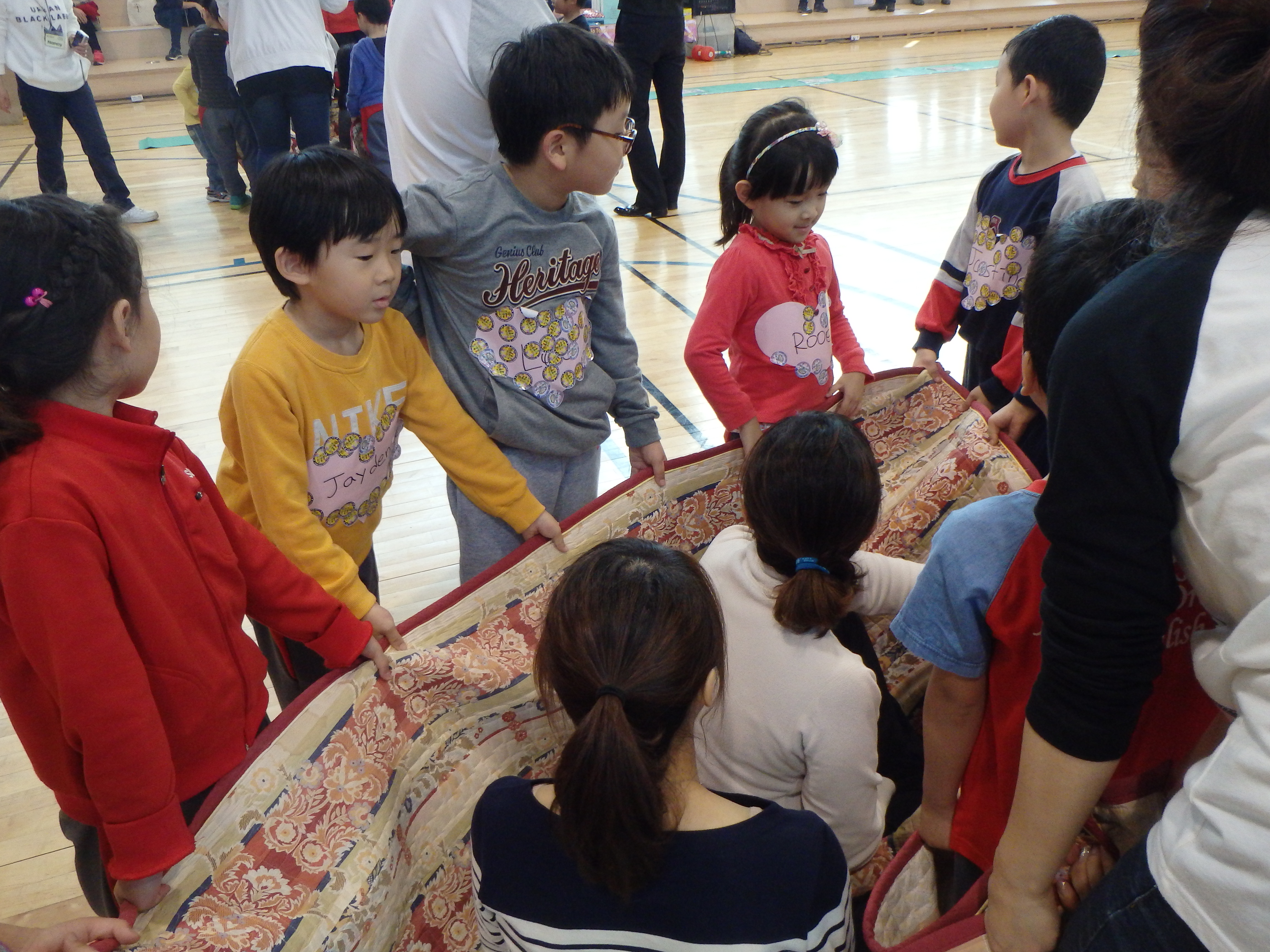 None of the kindergarteners came to school today instead they met us at a gym nearby. Most of their parents came too! It was a lot of fun for me to see and meet some of the parents and it was really entertaining watching them play games with their kids. Some of the parents couldn’t come however, so me and the other teachers would stand in as their parent in the games that required it.