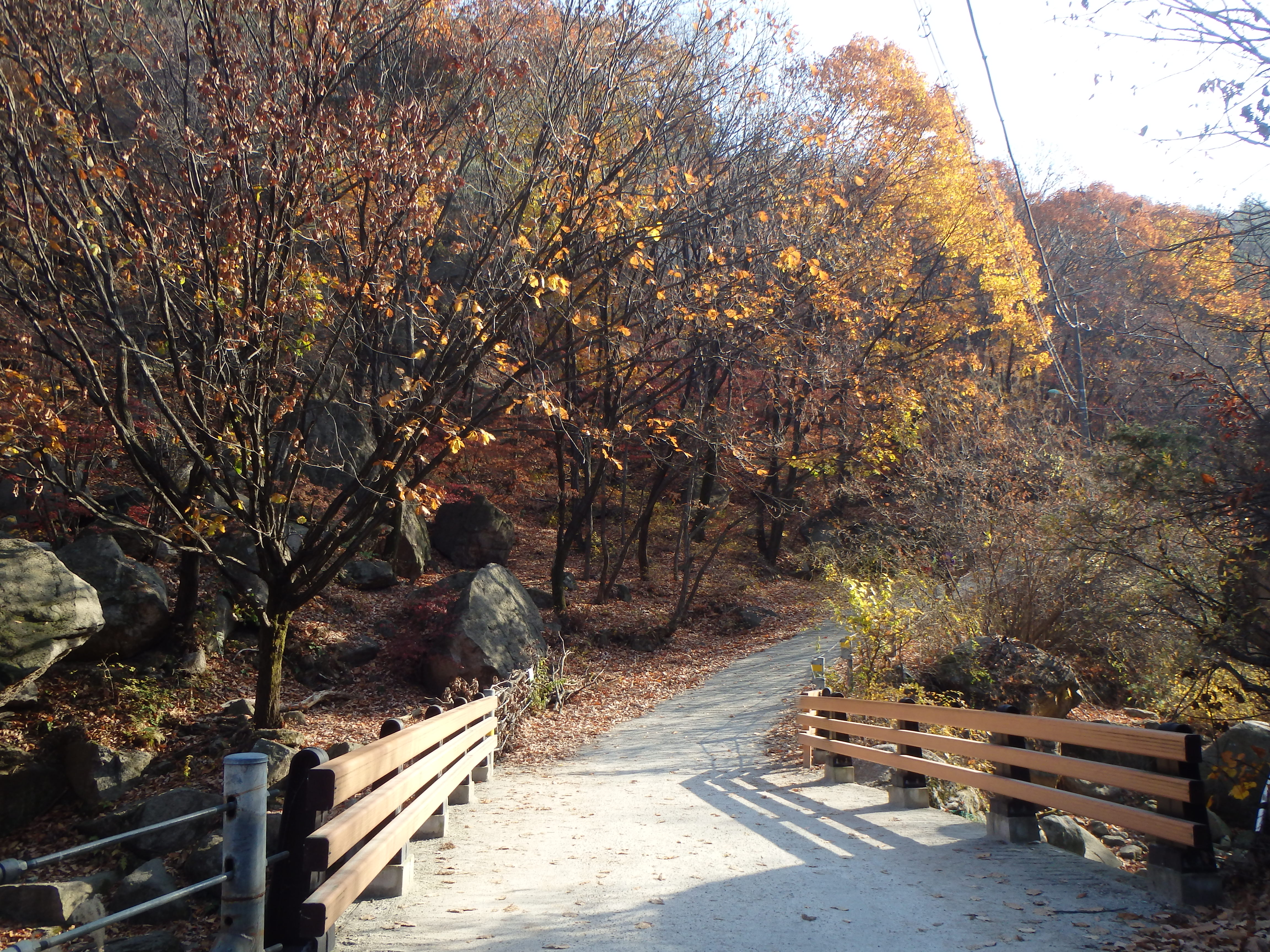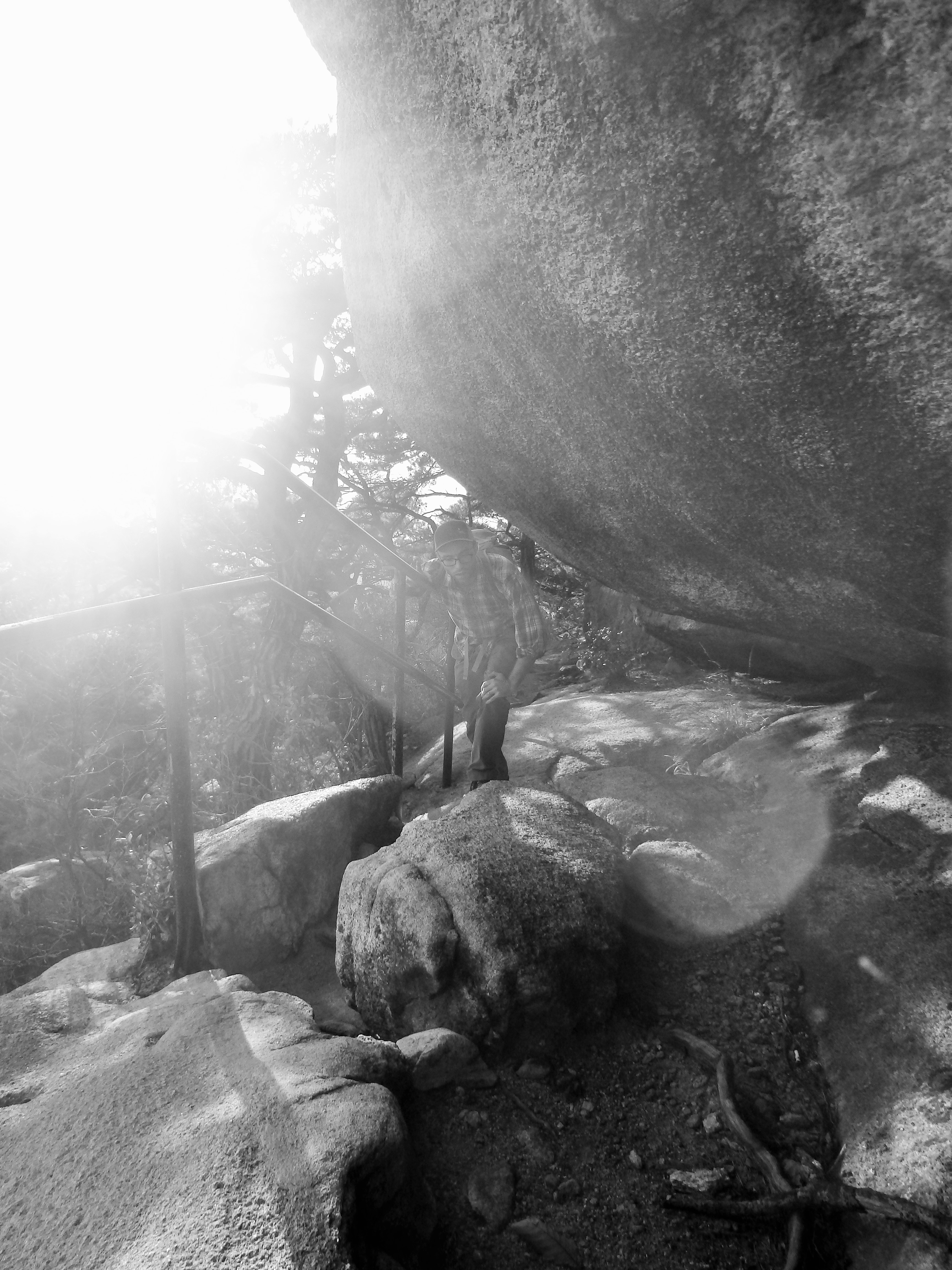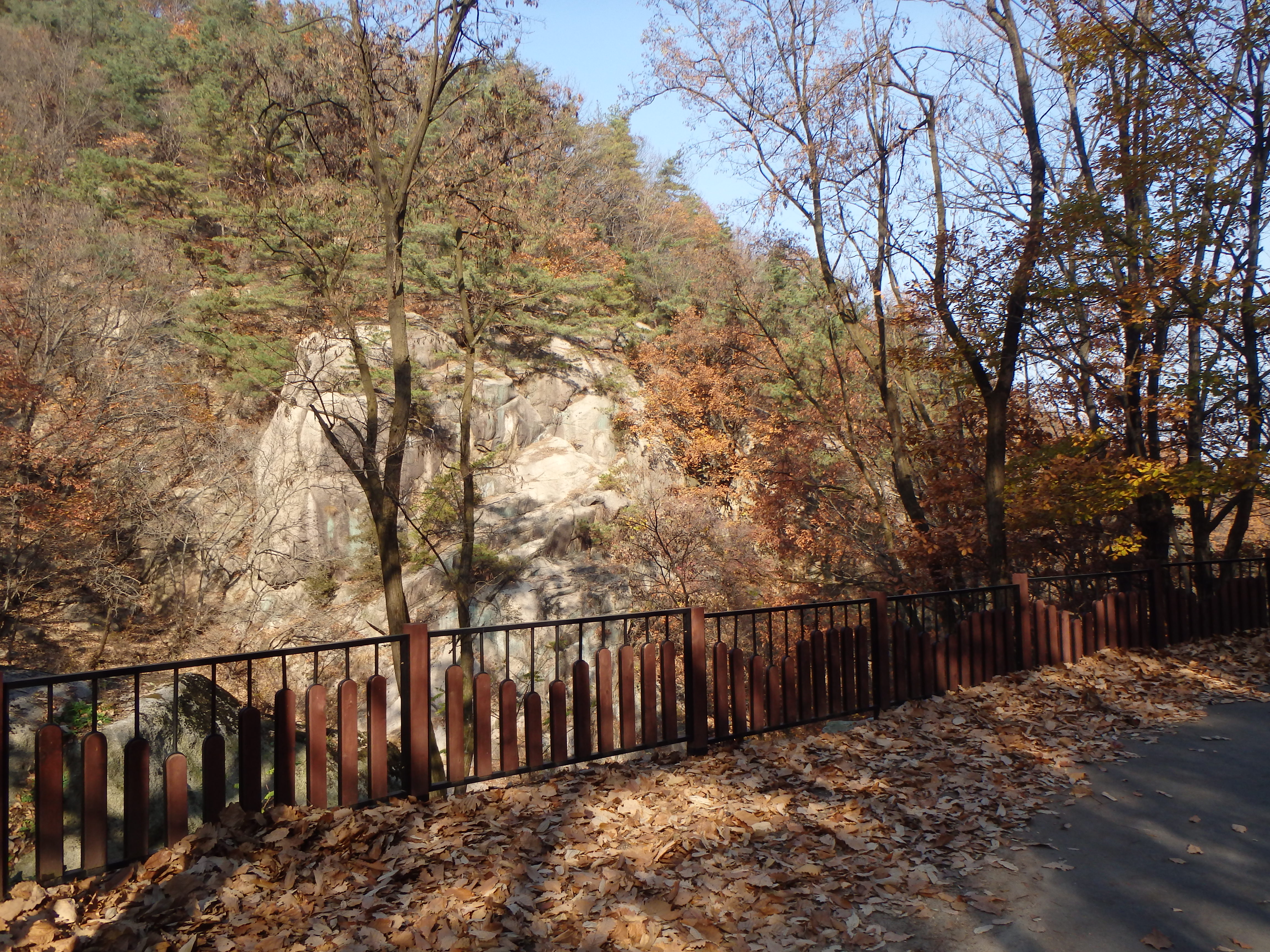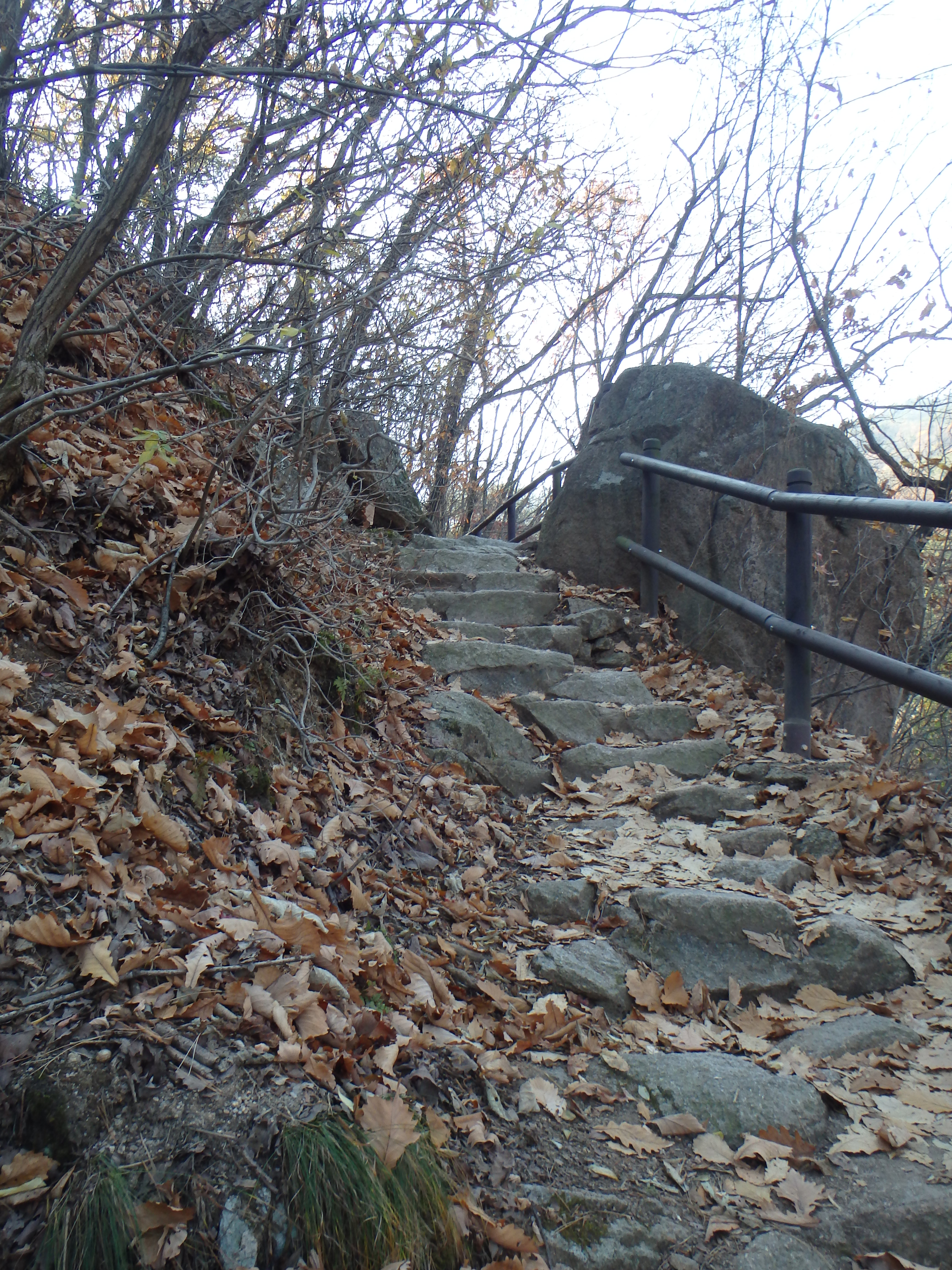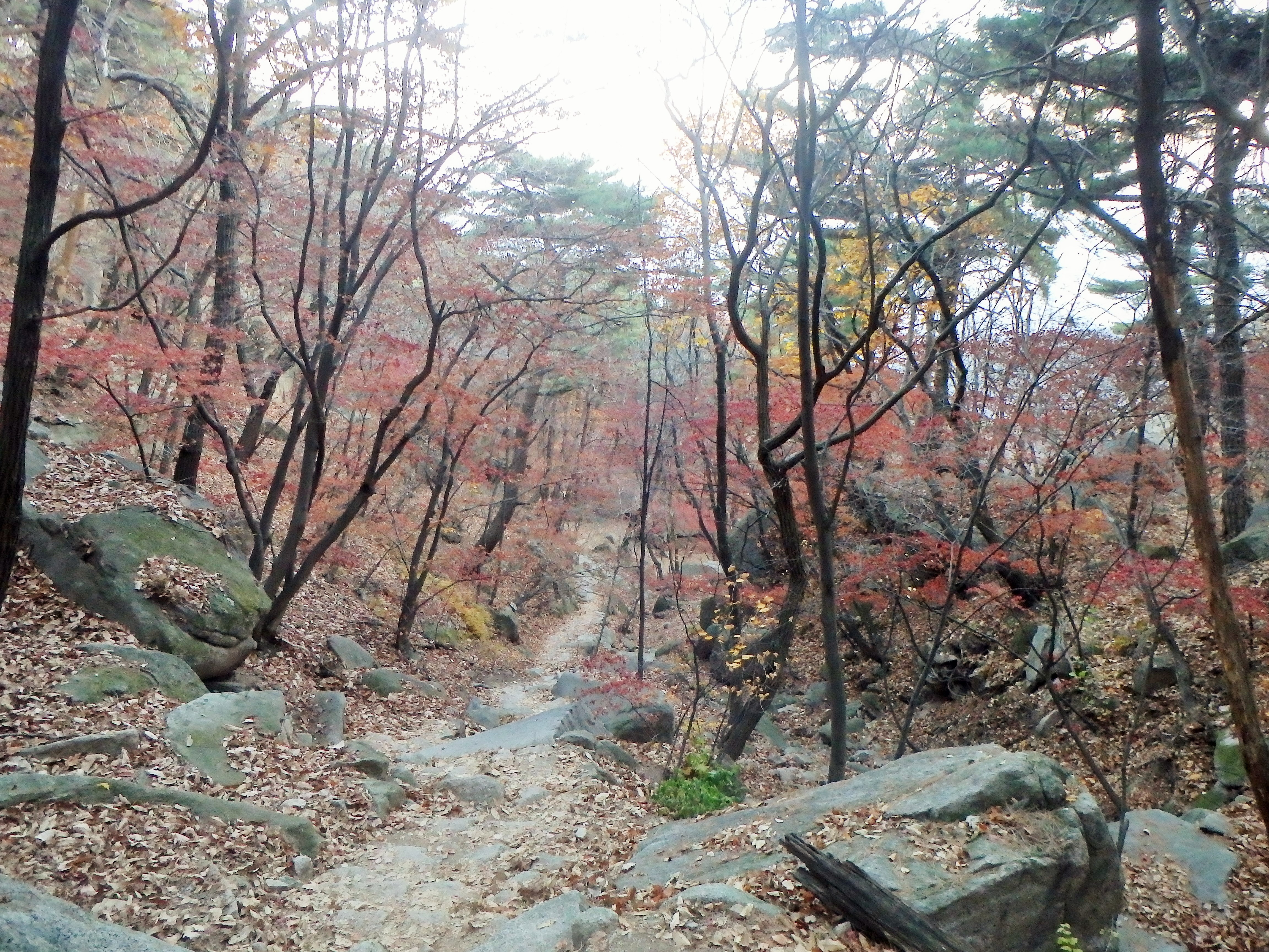 Once we made it to our next turn off, it became clear that we should have stayed up on the ridgeline. We had started our hike rather late in the day (2:40) and knew that we would be racing the sun to get off the mountain before dark. I think it was around 4 or so when we began walking toward Songchu Falls and the Obong Crossroads – a longer and steeper undertaking than I realized. As we walked in the direction of the peak the trail got steeper and steeper. Some Korean hikers even told us it was too late to be heading that way – “too late” – and another group just laughed at us! But we continued on. It was on this stretch of our hike that I began to feel really panicked about being up on the mountain as the sun went down. What I thought would be a nice stroll through the valley was actually a tough ascent up toward the ridgeline. And don’t forget, when I say ascent, I mean essentially hiking straight up. There wasn’t much relief for our knees, and of course, there were more staircases.