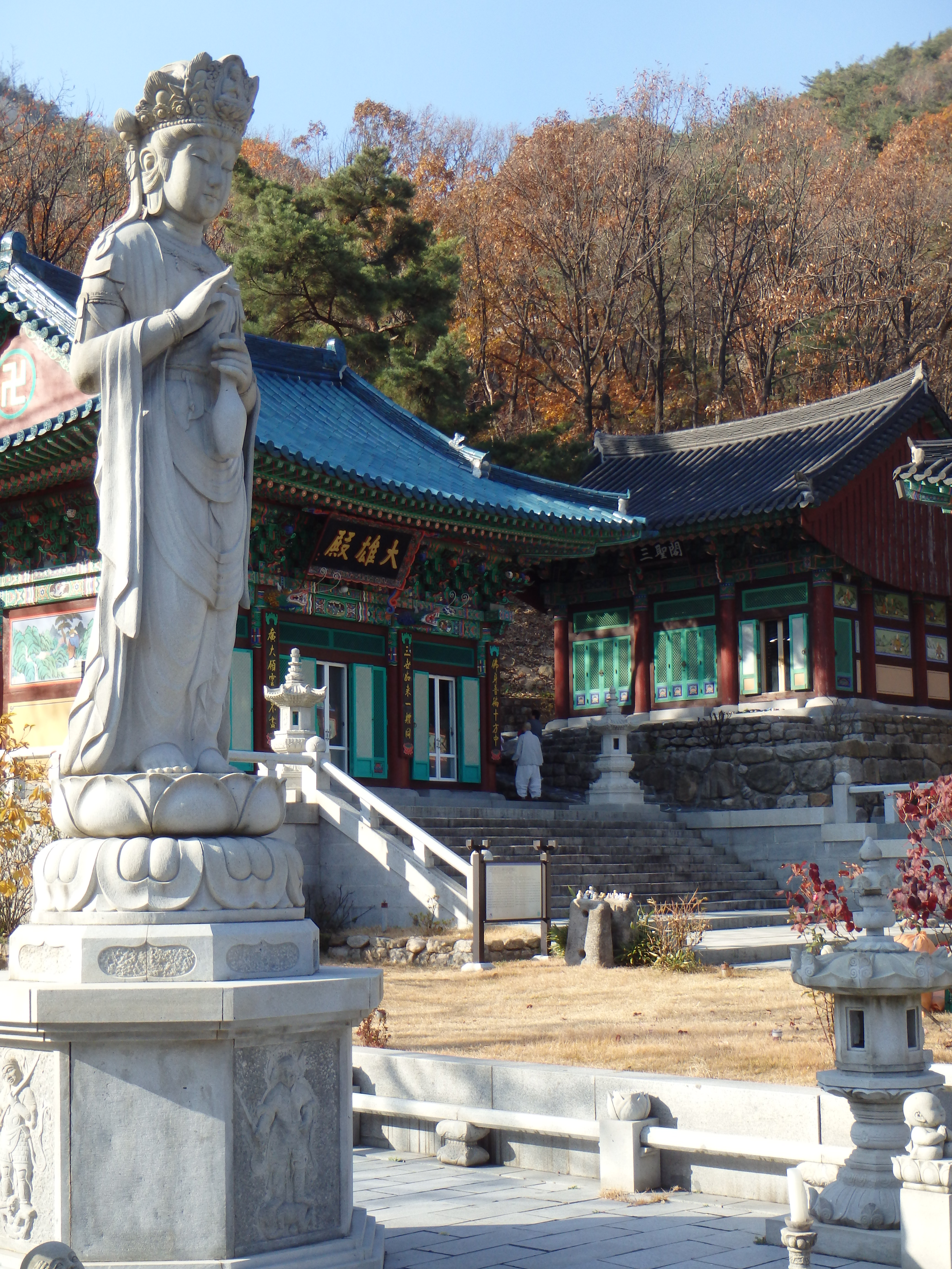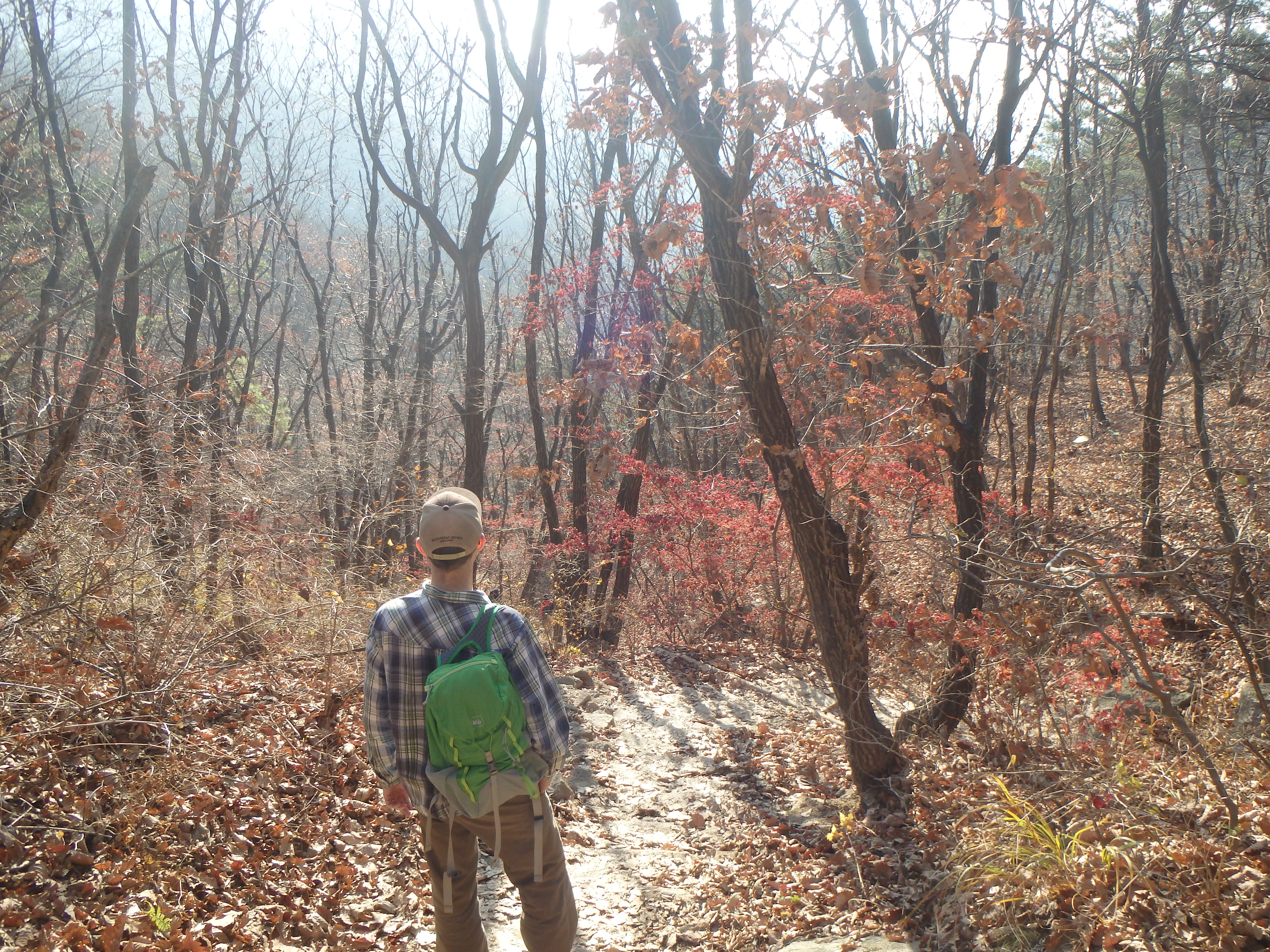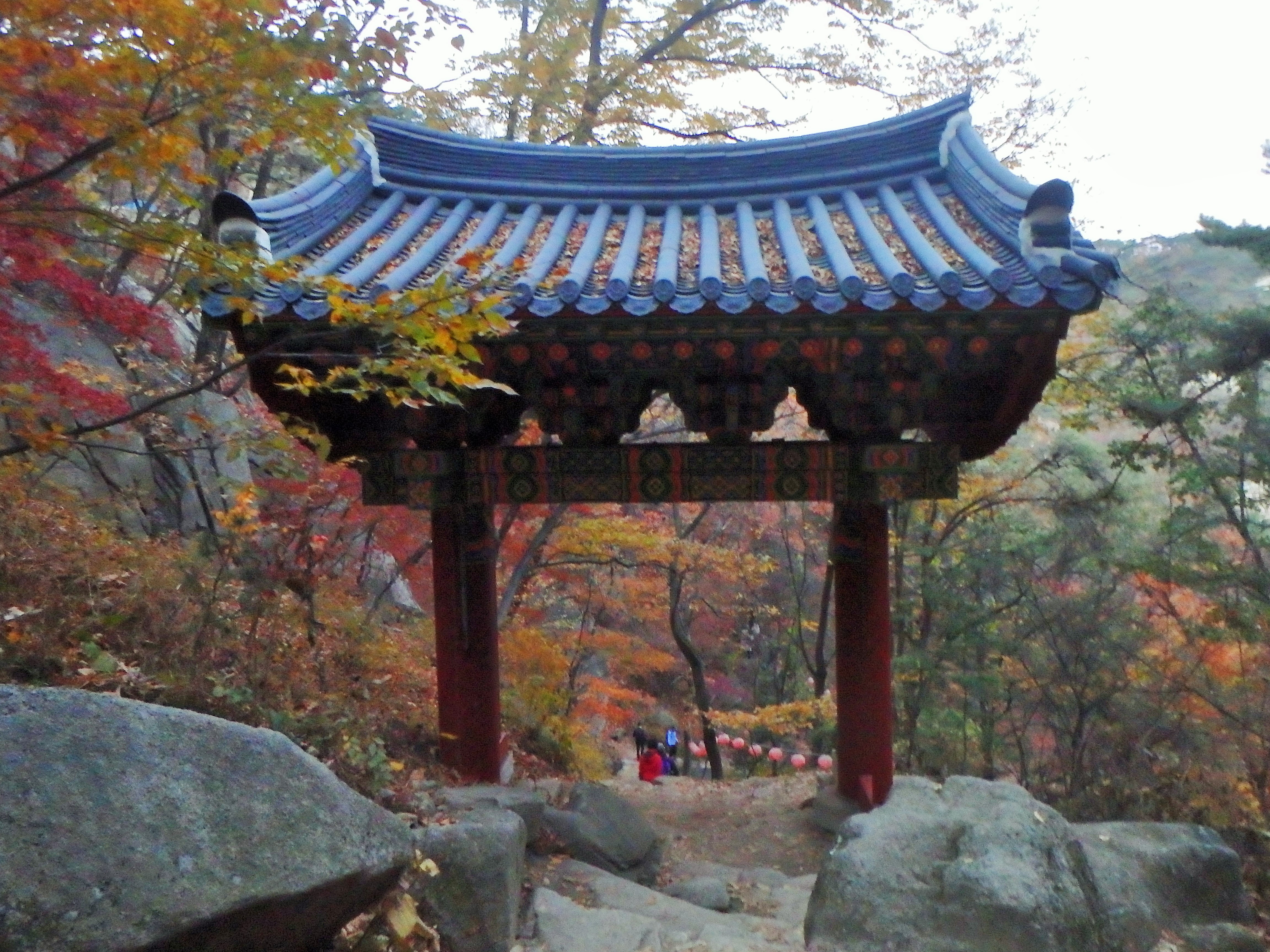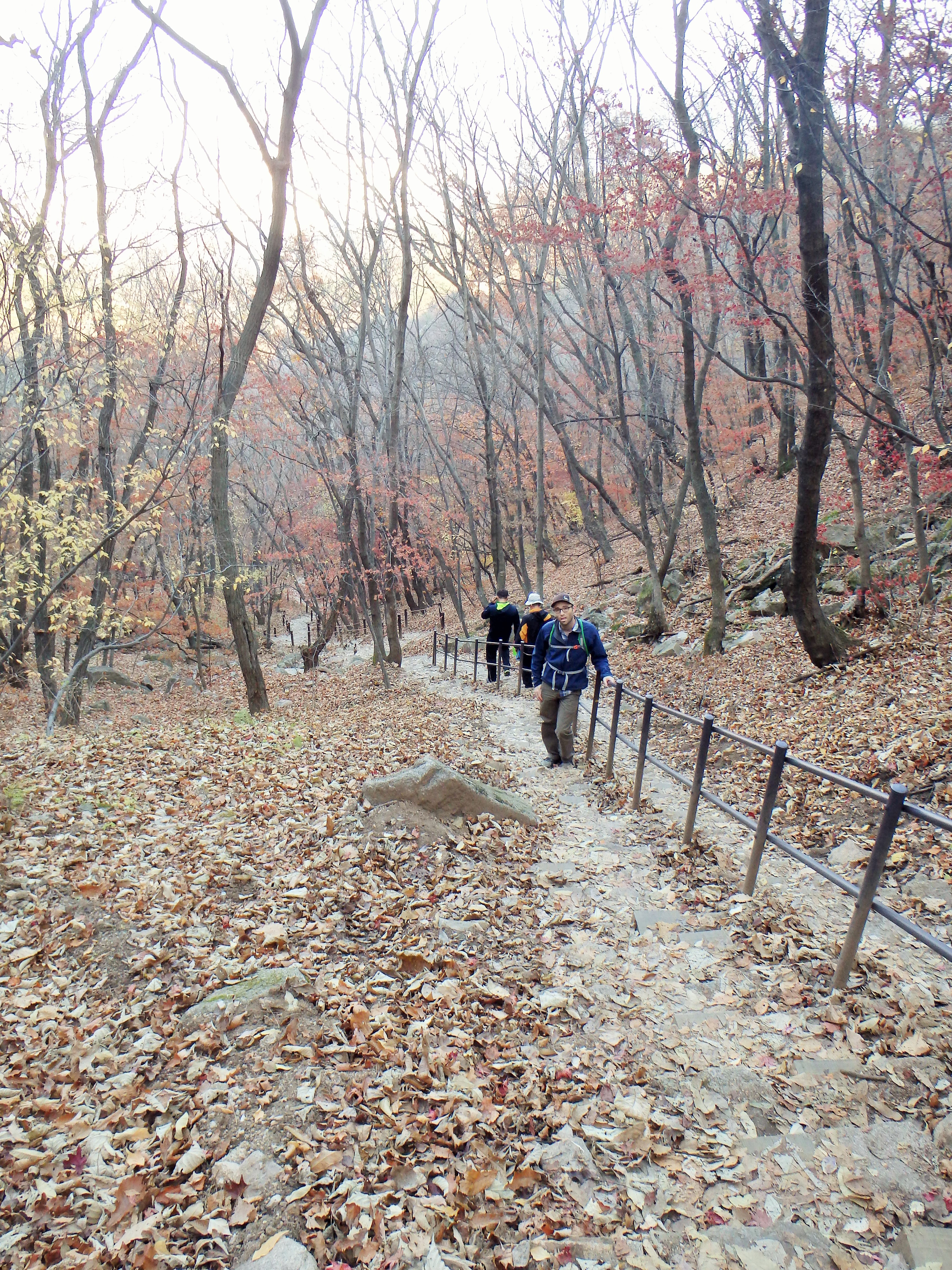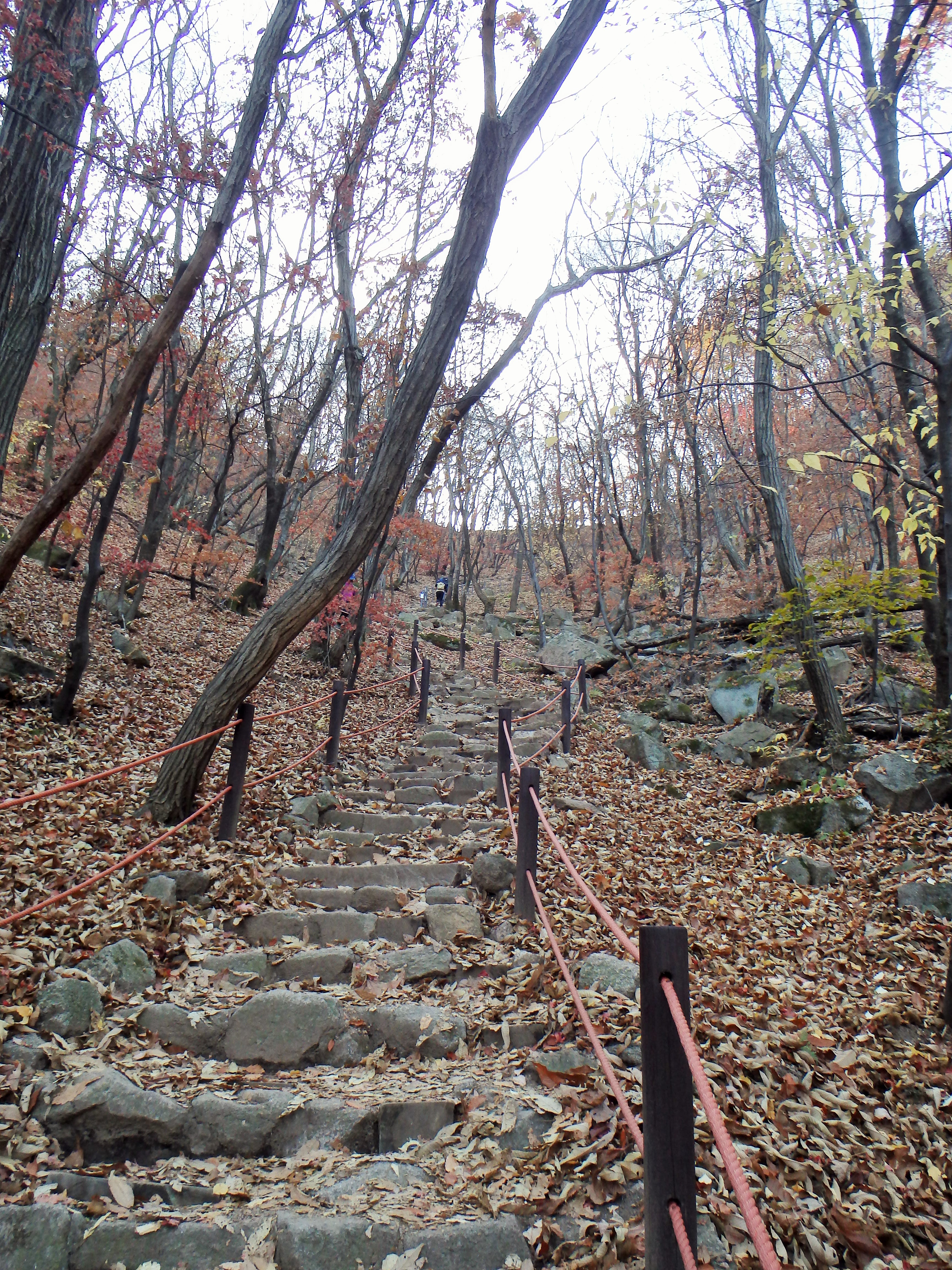 Disclaimer: While we have experienced a lot of Korea’s natural beauty in our short time here it has been difficult for us to overcome the very recent memory of our time surrounded by the surreal beauty of Grand Teton, Yellowstone, and Glacier National Parks in the US. Our hikes in Korea have really paled in comparison. One main complaint we have is the trail construction. As you’ll see in the photos below, at various times there are staircases plopped down in the trails and we would simply be climbing straight up a steep set of stairs rather than winding our way through the forest on switchbacks groomed into the natural landscape. The trails here go straight up and straight down – it’s pretty rough on the knees.