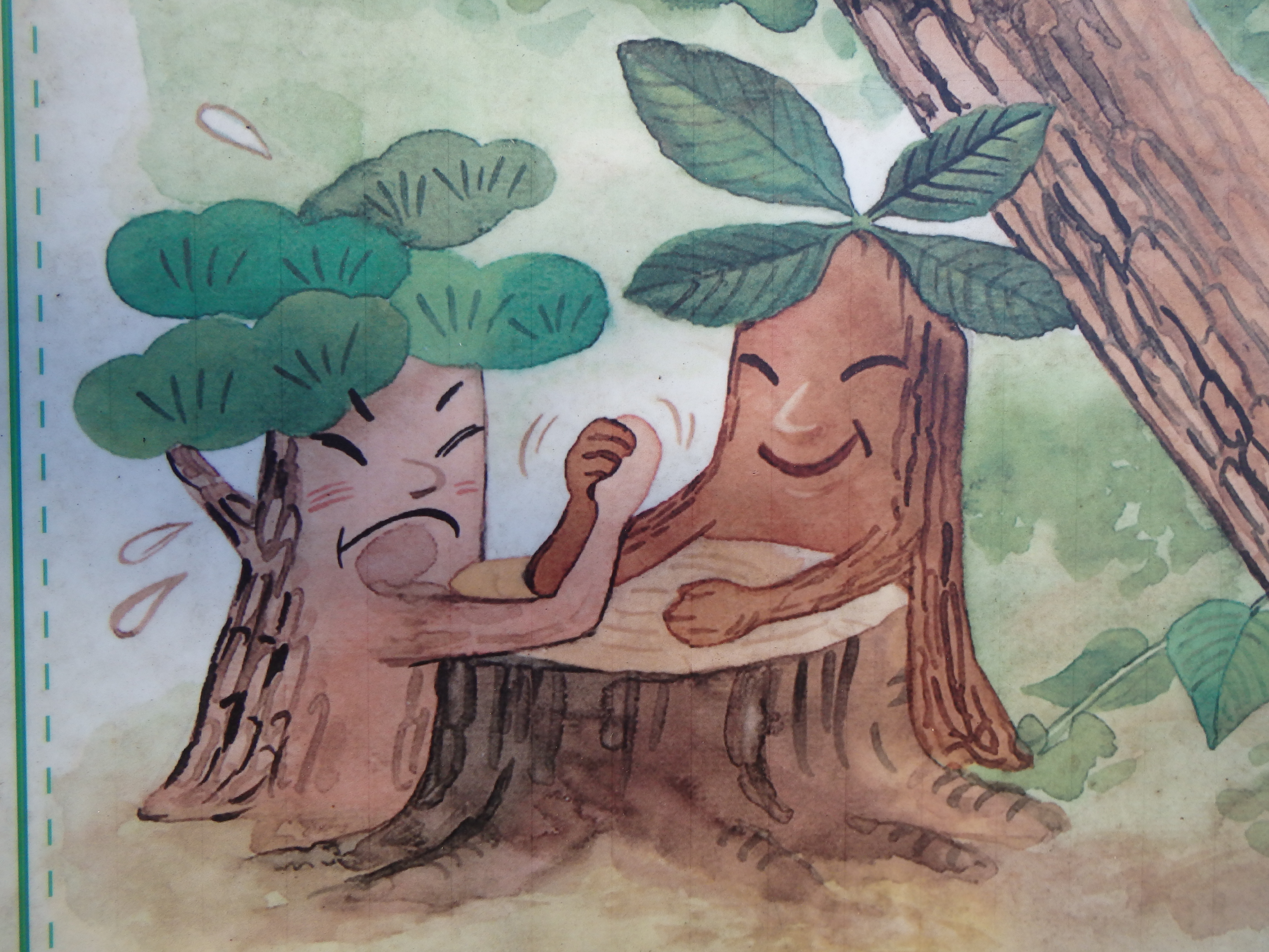 After we finished our snack we began our hike up to the ridgeline. It was a kilometer and a half to the ridgeline but it was very steep. We essentially hiked straight up! Bleh. There were various signs along the way and all of them had cute cartoons on them. We couldn’t read any of the signs so hopefully none of them were important! It was on this part of the trail that we encountered our first set of stairs…