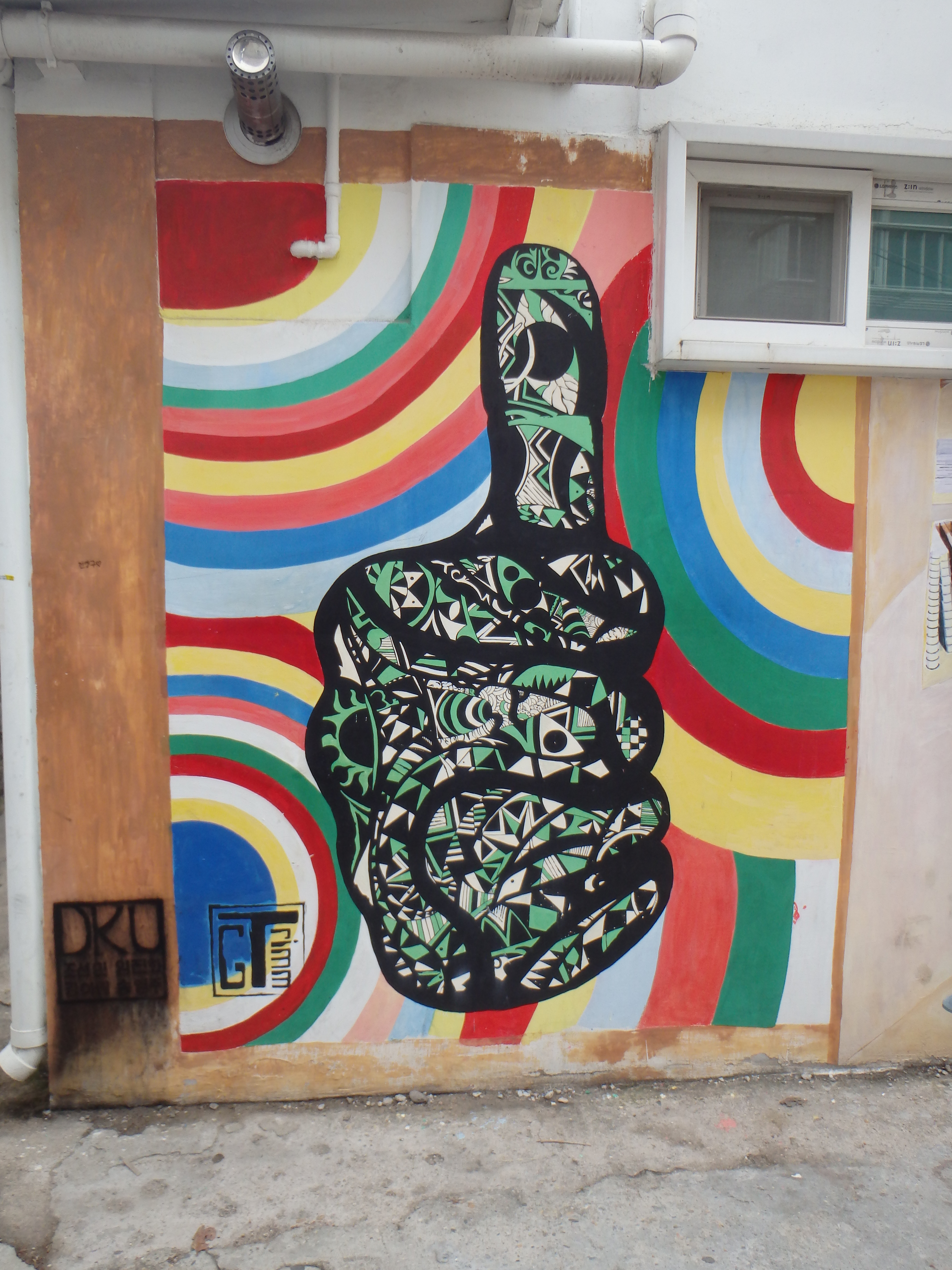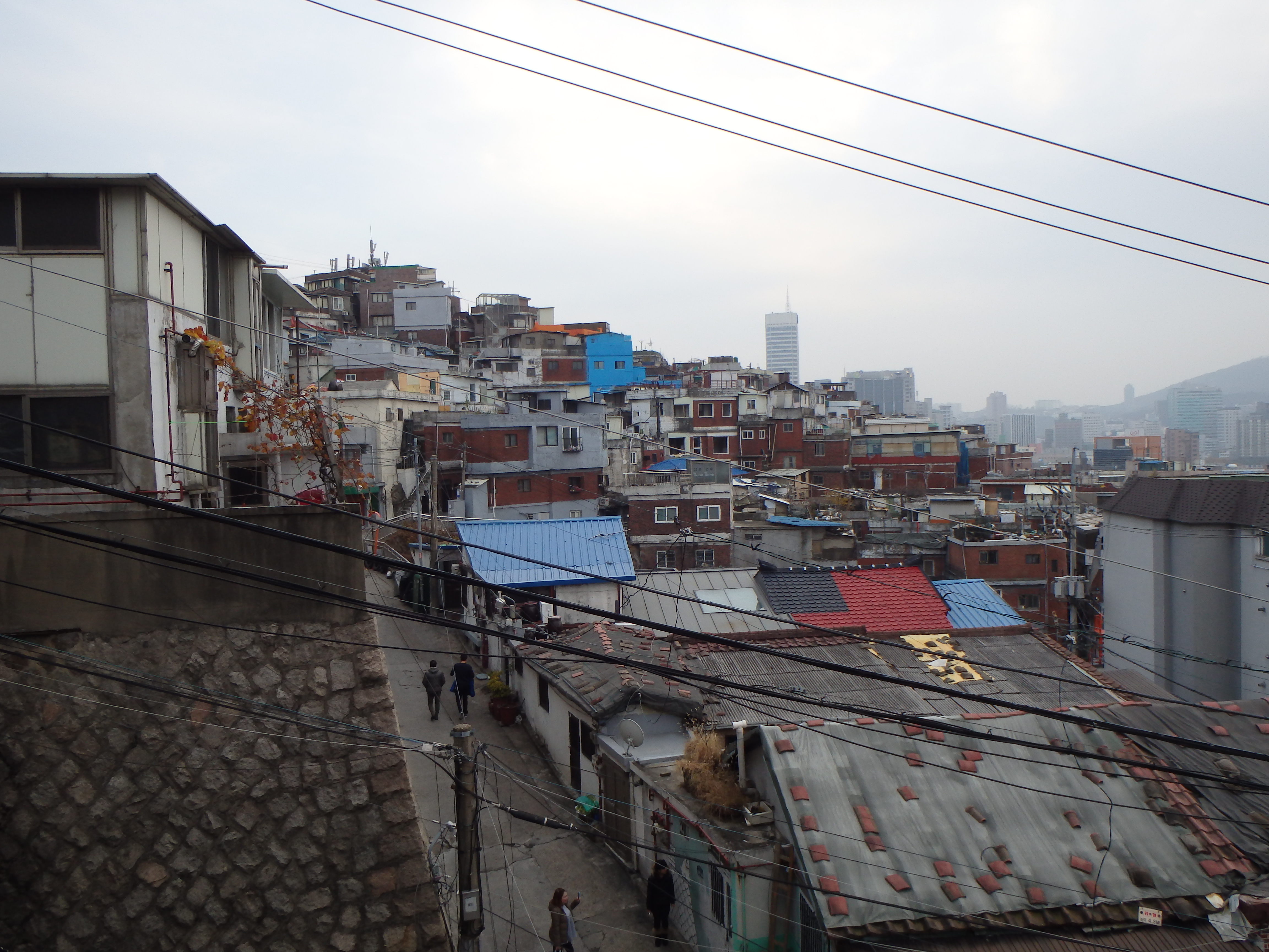 On Sunday we went to a different part of Seoul for a change and walked around the Ihwa Mural Village. The mural village is in a small area on the side of Naksan. These mountain-side villages are called moon villages since being on the side of the mountain puts them closer to the moon. The area was very hilly and still untouched by the high rises that dominate the rest of Seoul. I wouldn’t say that the houses were charming but it was quite a difference from what we’re accustomed to seeing in Seoul and it gave us a glimpse of what the city must have looked like before its rapid modernization.