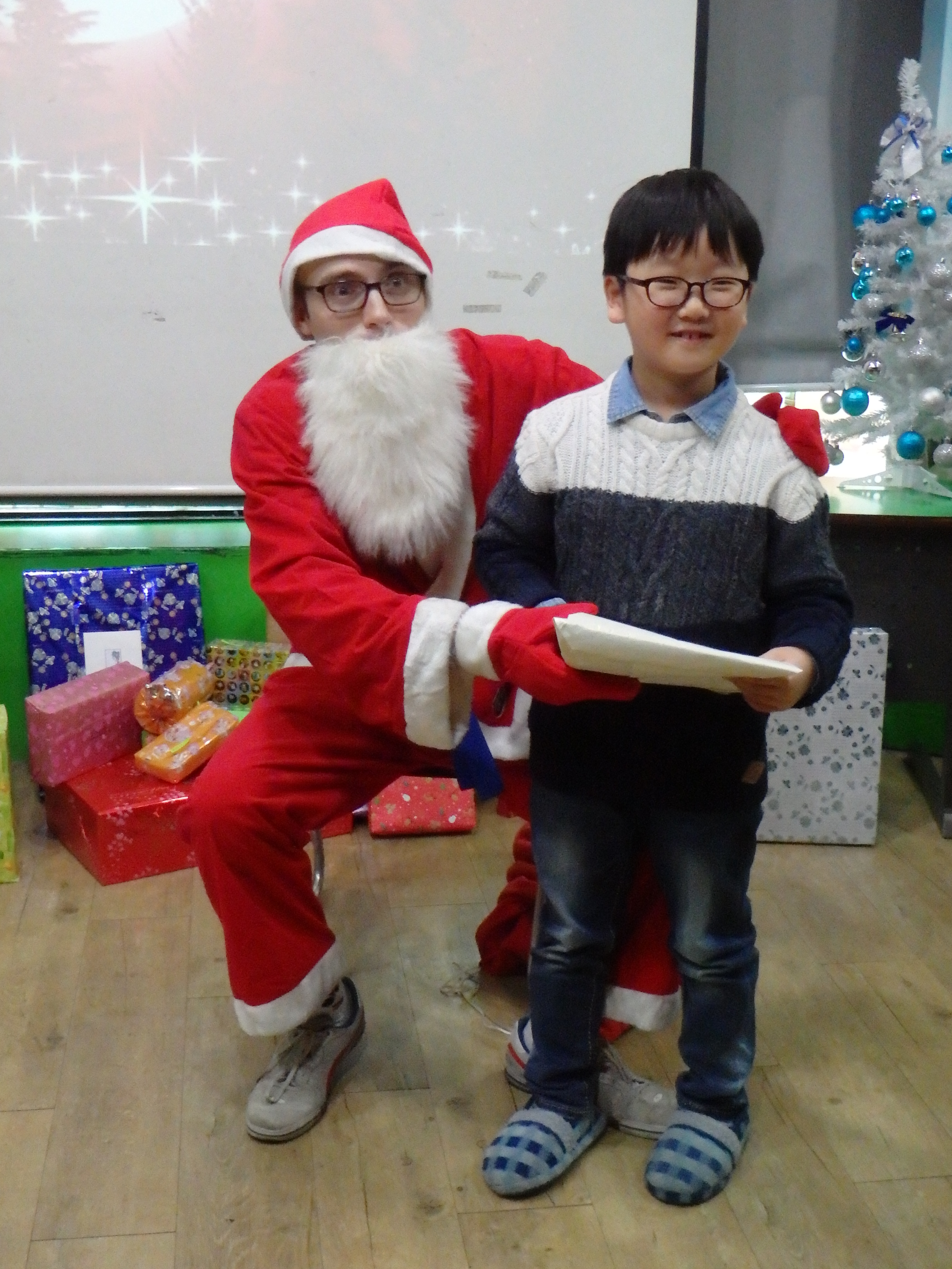 But in the end it still felt only a little like Christmas. It’s not celebrated in the same capacity here so it was difficult to fully embrace the Christmas season. Having the kindergarteners at school really helped though. On Wednesday we had a Christmas Party where we decorated stockings, “cupcakes,” had a singing competition, and Santa visited! It was exhausting but a lot of fun!