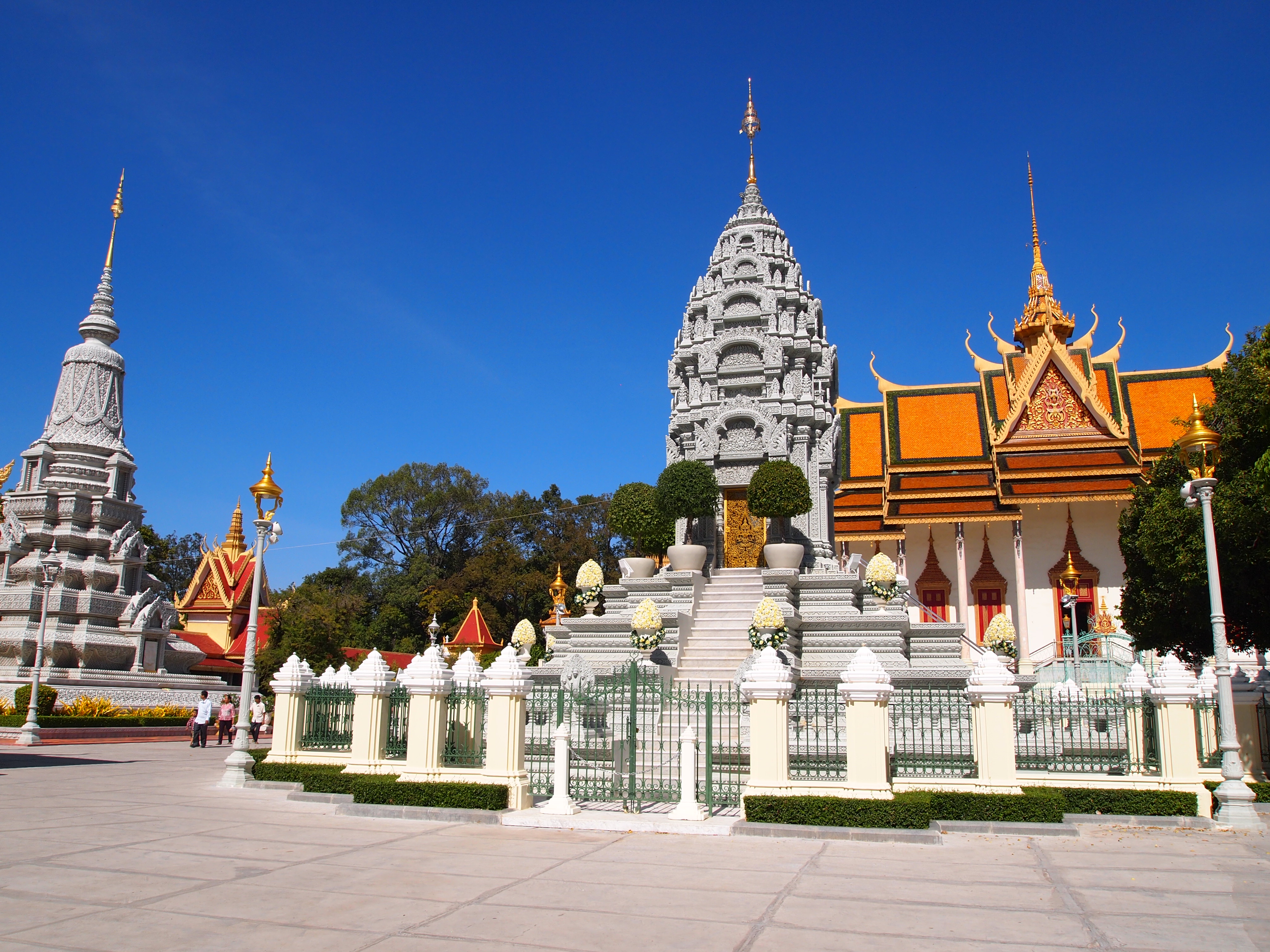 Our first stop in the morning was the Royal Palace Complex and the Silver Pagoda. The Royal Palace is home to the current monarch, King Sihamoni, so we could only visit the Throne Hall and a few of the buildings surrounding it. The buildings are stunning, especially the Throne Hall, or Preah Tineang Tevea Vinichhay. They have traditional Khmer roofs with ornate gilding and tiling. As usual, the photos just don’t do the place justice. It’s difficult to really capture the scale and grandeur of these buildings.