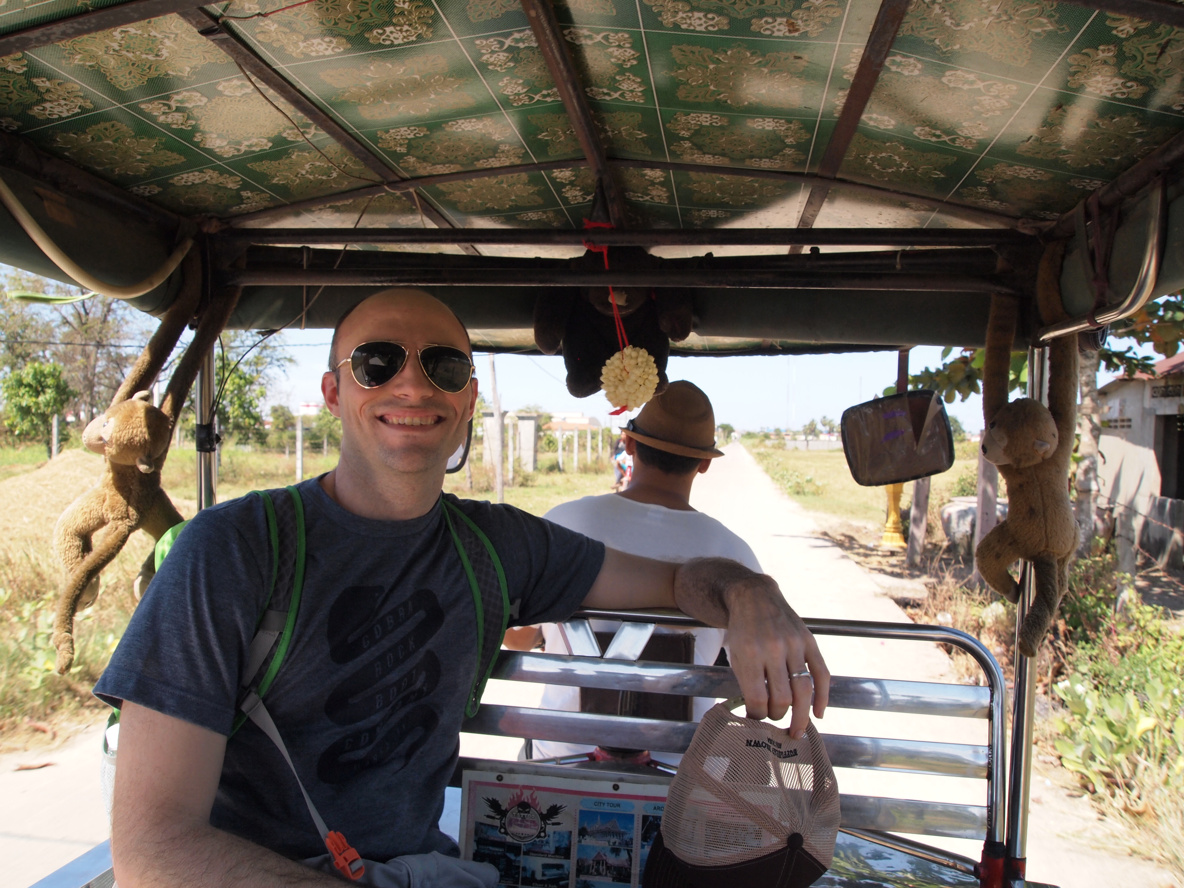 After we left the Royal Palace we walked down the street a little ways toward the Mekong and caught a tuk tuk. Our driver, Mr. Day, was younger than many of the drivers we’d seen and a genuinely happy guy. We later learned that he had been born outside the city and moved to Phnom Penh to go to college. He only finished two years before he got married and needed to support his wife. After working as a bartender at a casino for a while and not advancing, he decided to start his own business as a tuk tuk driver. He spoke English pretty well (better than most of our students!) and told us that he had only been learning it for a year! He likes to practice with his passengers any chance he gets. Mr. Day ended up taking us around the entire day for $25 (we gave him a $5 tip too which is considered quite generous). He took us over to Choeung Ek, Tuol Sleng, the Russian Market, and a Khmer restaurant. We even ran into him later, on our way back to the hotel, and he gave us a ride for free! When I tried to pay him, he refused my money. We got his phone number so that we can use him when we are back in Phnom Penh on Saturday.