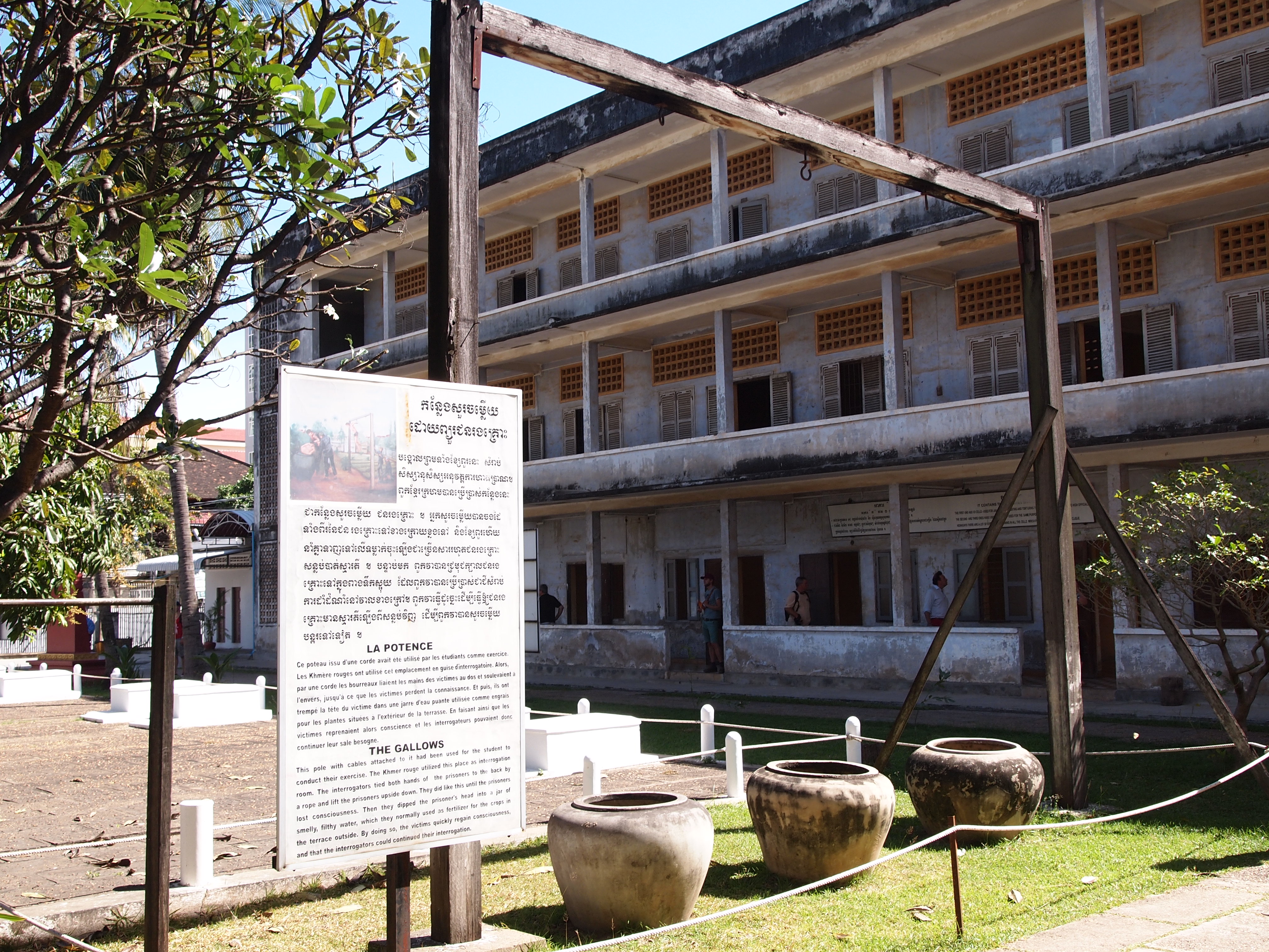 After we left Choeung Ek, Mr. Day took us to Tuol Sleng Museum which was S-21 Prison. The former high school was transformed into a prison in 1975. S-21 was the largest torture prison in Cambodia. Most of the people held at S-21 were either taken to Choeung Ek or were tortured to death. Only 7 prisoners were alive when the Vietnamese Army liberated Phnom Penh in 1979. They had used their skills – like painting or photography – to stay alive. 14 other prisoners were tortured to death as the Vietnamese closed in on the city. Their decomposing bodies were left in the rooms where they died. As the Khmer Rouge continued its reign of terror, it often killed its own. Many of the torturers and executioners at S-21 were later tortured and killed by their replacements.