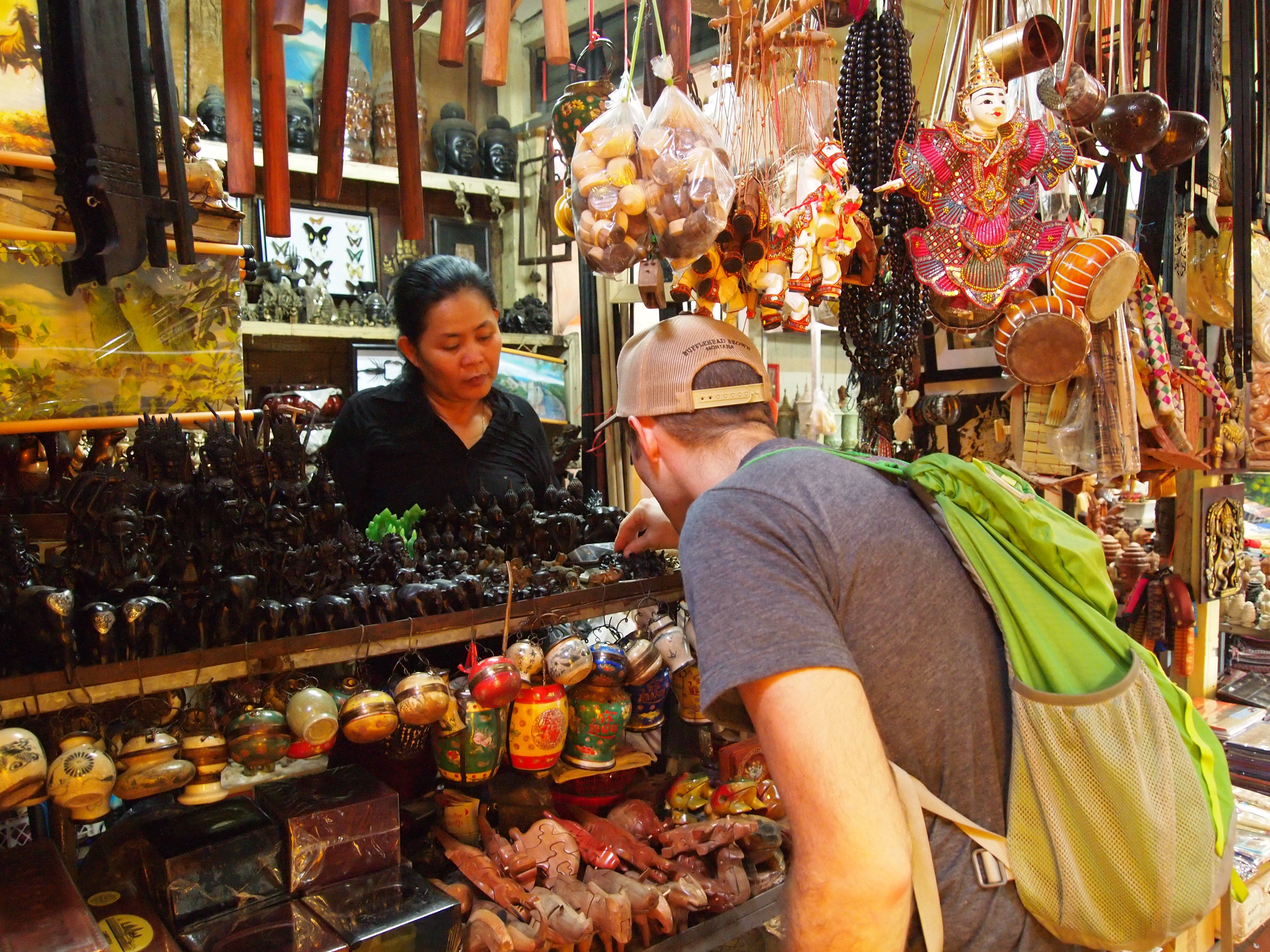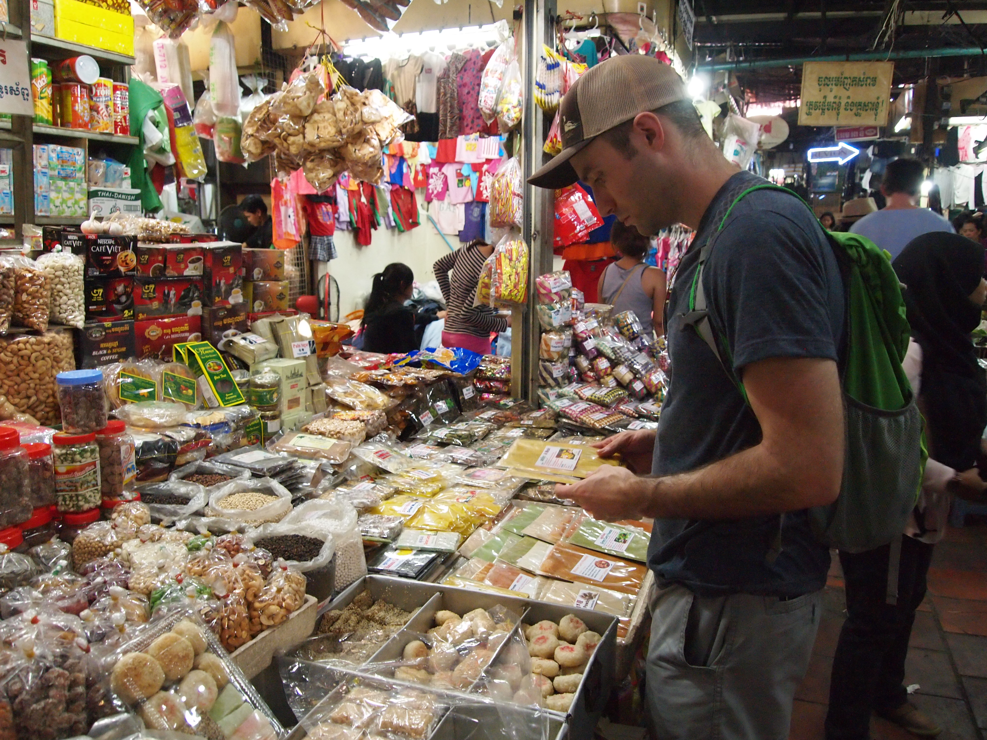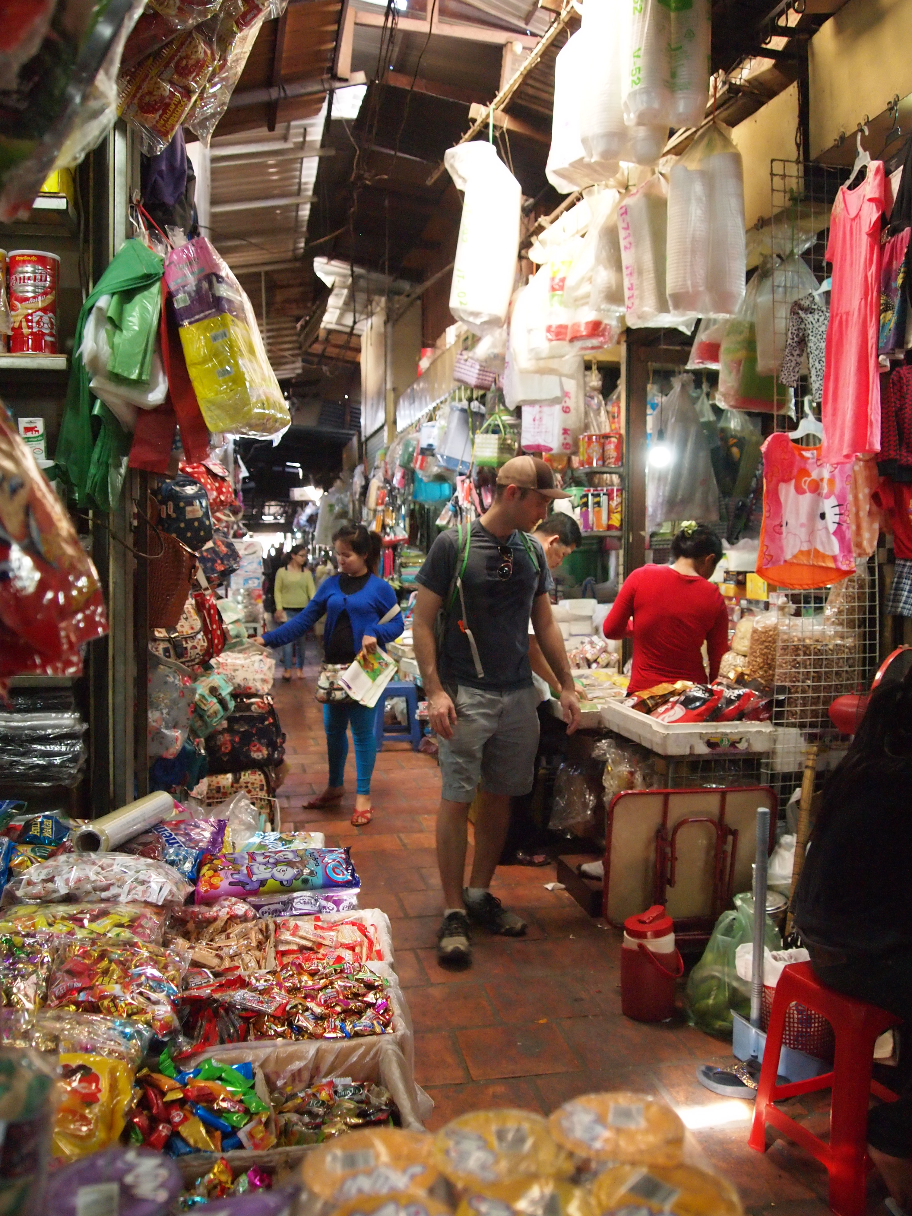 Thankfully, after two solemn visits in a row, we visited the Russian Market for some retail therapy. The Market was given its moniker by foreigners because Russian expats shopped there in the 80s. It’s a good, narrow, dirty market. It’s dimly lit and the walkways are wide enough for one person. It was much dingier than the Ben Thanh Market in Ho Chi Minh City. However, I found the sellers to be less aggressive. Generally they politely called out for you to buy something but no one tried to grab me like they did in HCMC. I know that you’re supposed to haggle but I’m a terrible haggler. I don’t like it. So while I was good at resisting add-ons, I didn’t really try to barter. We bought a few things and might possibly return before we leave.