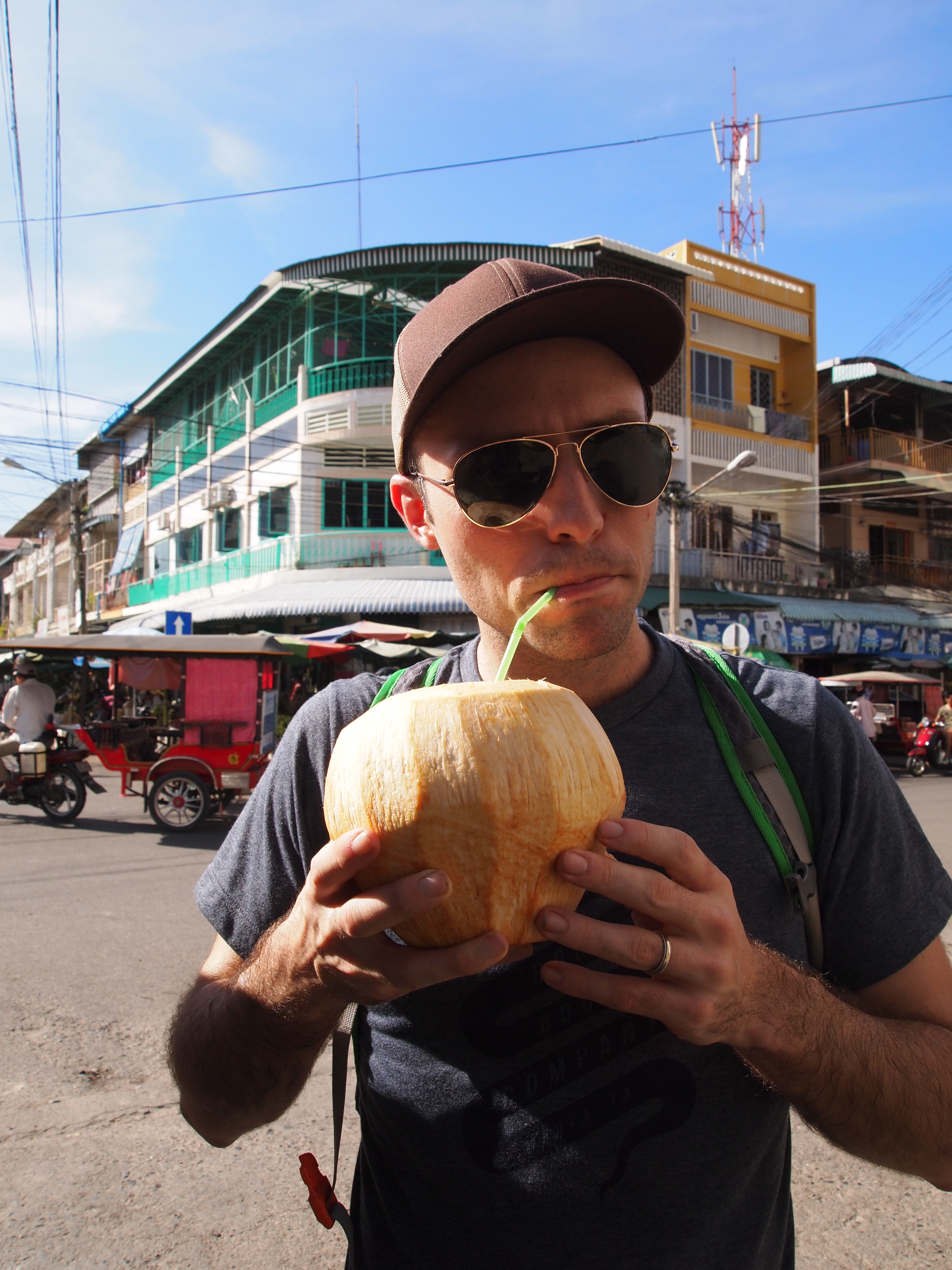 We went back to our hotel to shower and change. Then we had drinks on our hotel’s terrace before grabbing a tuk tuk over to a restaurant Zach wanted to try out. Unfortunately, we couldn’t get a table so we went over to the Raffles Hotel instead to have a drink at their Elephant Bar. Our only motivation for doing so was because one of our favorite authors, Somerset Maugham, stayed at the hotel and drank at the bar when he was in Phnom Penh in the 1920s. Thankfully, their happy hour lasts until 9 so we were able to each order a nice cocktail. After our drinks we decided to go back and have dinner at our hotel’s restaurant. Again, we ordered Khmer dishes and they were excellent! We started with some delicious shrimp rolls, then Zach had the Beef Lok Lak, and I had the Fish Amok. When I was stuffed and couldn’t finish mine the waiter asked me why I didn’t finish! I was so embarrassed! Hopefully he believed that I really did enjoy the food and just couldn’t eat all of it…
