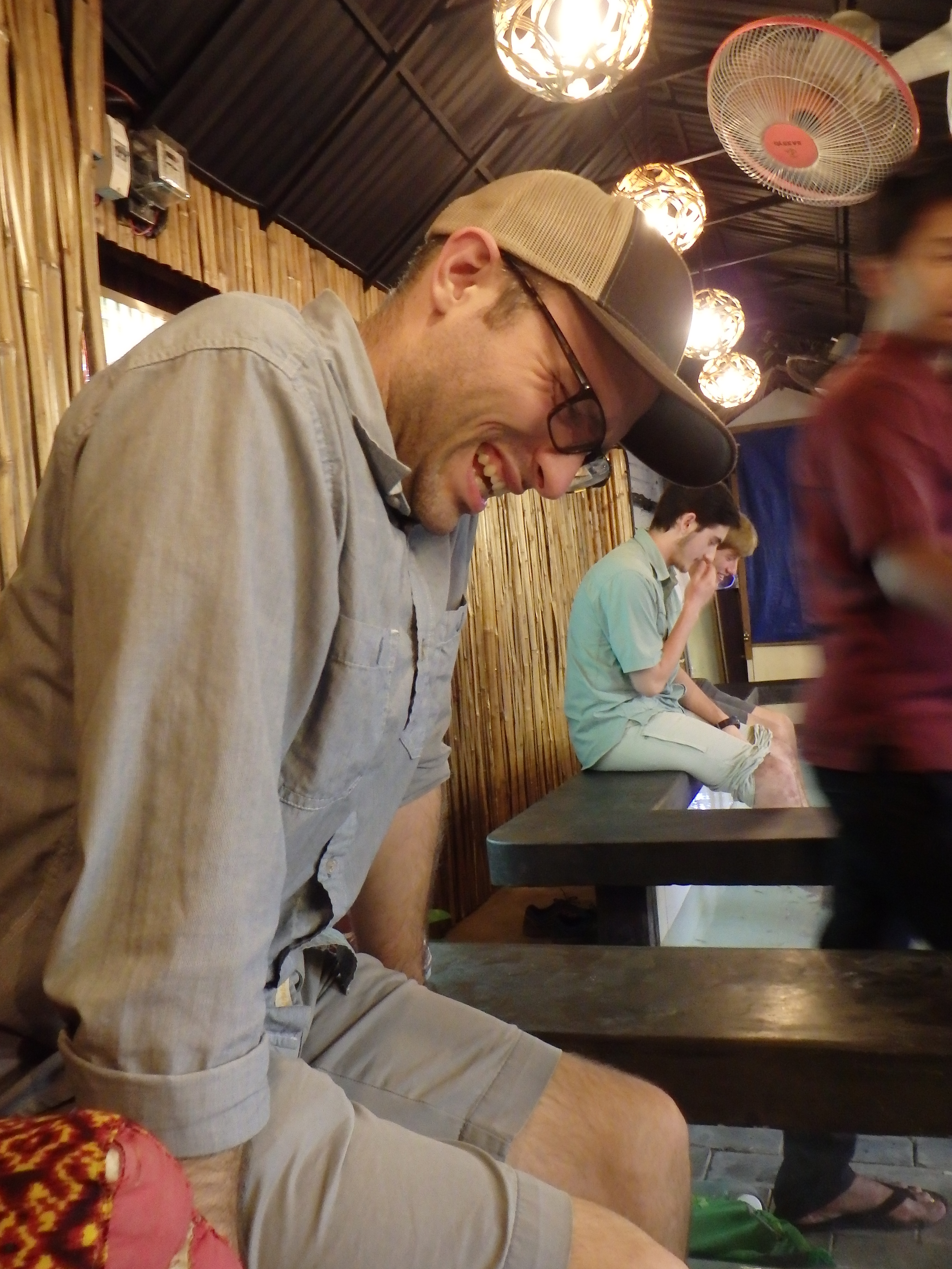 OLYMPUS DIGITAL CAMERA OLYMPUS DIGITAL CAMERAAfter we left the Angkor complex we had our driver take us to the center of Siem Reap so we could eat dinner and walk around. Siem Reap is definitely a town that was built up expressly for the tourists visiting Angkor. There are several night markets, lots of shops and eateries line the streets, and there are several food carts selling mostly the same thing – smoothies, crepes, and occasionally insects and tarantulas! We walked around for a while and eventually ate some food, did some shopping at the market stalls, and got a fish pedicure. We went back to our hostel and sat on the patio with some Angkor beers and a pizza! Gosh, I’ve missed good pizza. Then we hit the hay to get a little sleep before our early start the next morning.