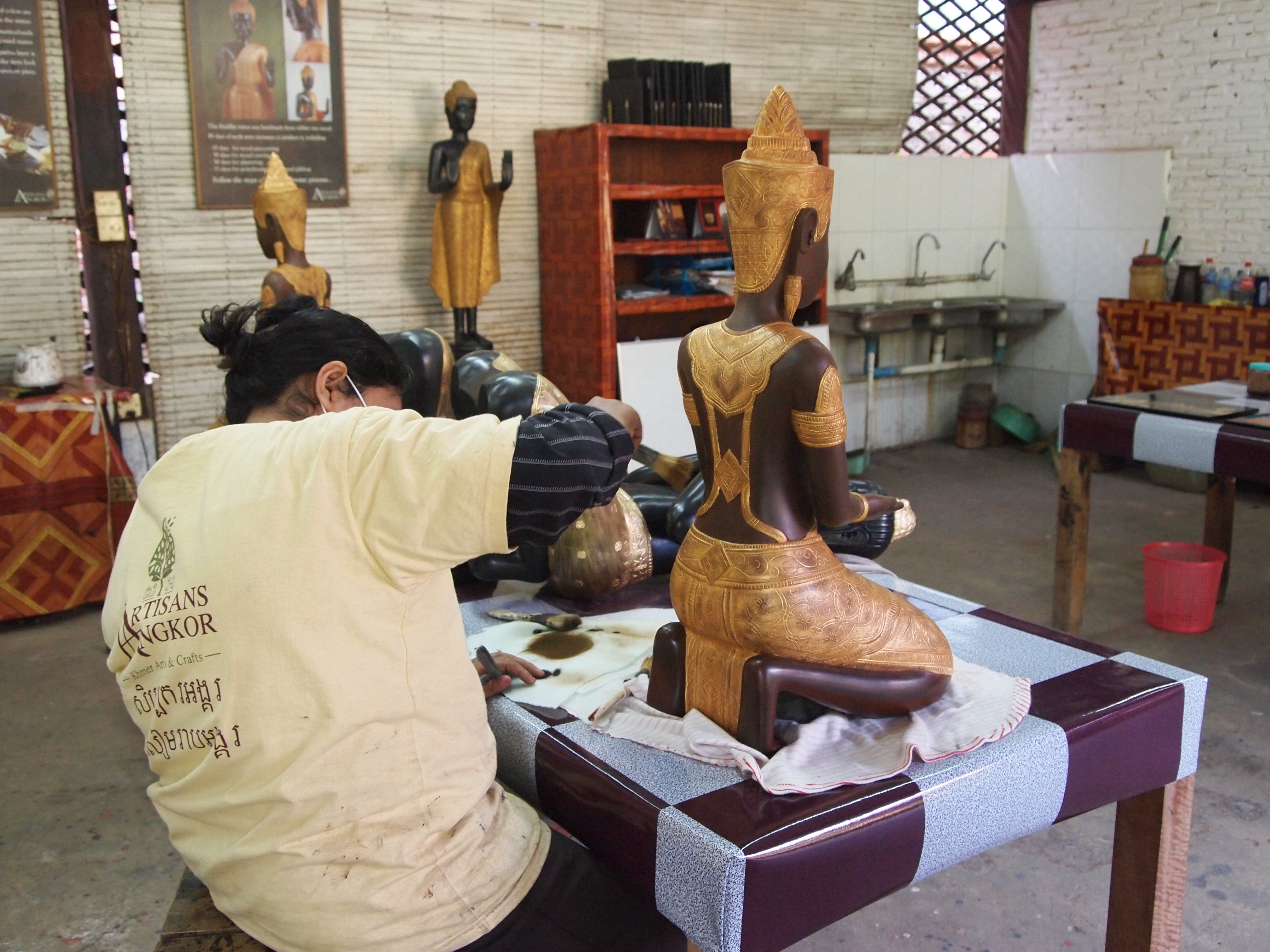 We spent 7 hours wondering around 3 of the temples at Angkor. When our tuk tuk driver dropped us off at our hostel we weren’t very tired so we decided to go visit a silk farm in the area. Artisans d’Angkor is a company that has several workshops in the area and they produce fine, handmade products and they still use traditional Khmer techniques. They provide training and jobs to under-privileged youth in the area who haven’t had much opportunity for education. We visited one of their workshops where they do woodworking, masonry, painting, and much more.