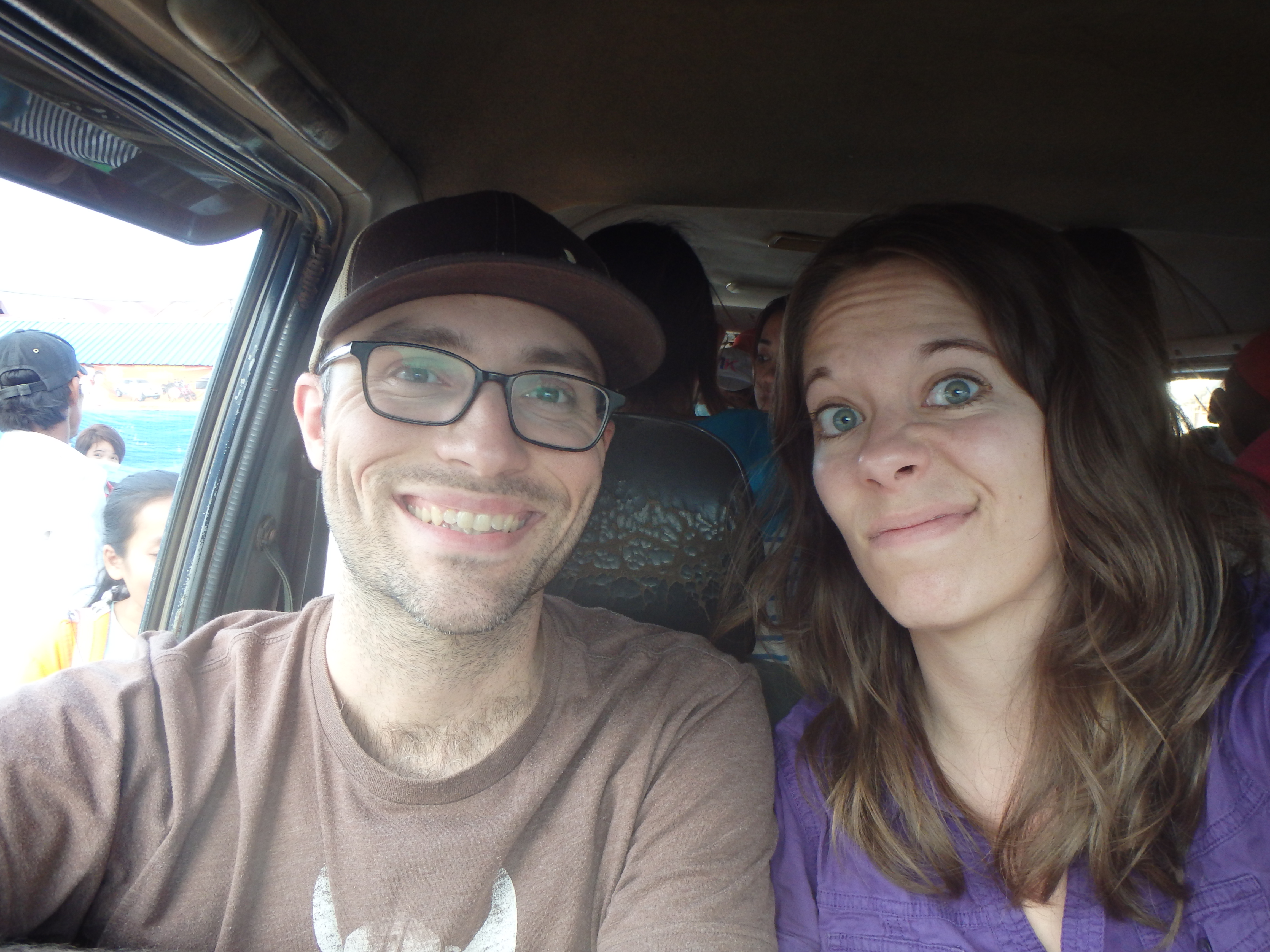 Yesterday we left Siem Reap fairly early and got back on a Giant Ibis bus to return to Phnom Penh. We needed to get to Kampot for the night which is another 2.5 hour drive south toward the coast. However, the Giant Ibis bus for Kampot would leave before we arrived in Phnom Penh, so we initially thought we would just grin and bear a $50 cab fare. However, since it was New Year’s Eve, taxis were trying to charge us $75 or $80! (We really should have flown from Siem Reap but Zach didn’t want to spend the money at the time; hindsight is always 20/20.) So we asked the attendant on the bus how we should get to Kampot and she suggested a shared taxi. We definitely didn’t understand the full meaning of this but it sounded reasonable so we agreed. She offered to help us as well, so we stayed on the bus after reaching Phnom Penh and eventually she found a driver going to Kampot. We paid $15/person and got in the front seat of a very old mini van.