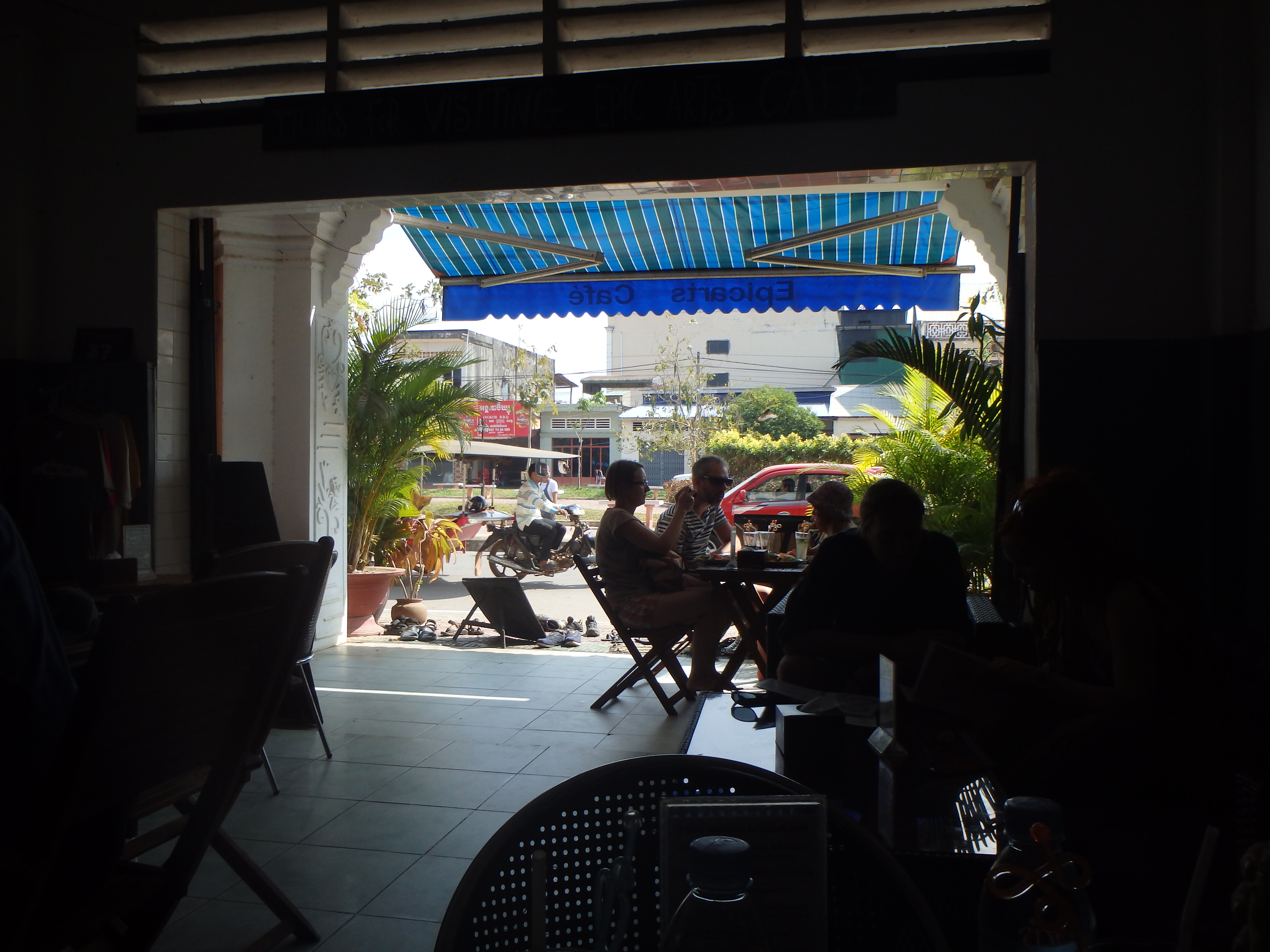We looked at a shop or two and then settled on having lunch at Epicarts Café. Epicarts is a UK-based company that promotes the inclusion for all people. Their slogan – Every Person Counts – perfectly sums up their mission. In Kampot, their cafe employs deaf and disabled Cambodians, and they have an arts center where they provide art classes and other programs for the disabled. It’s a really cool company! You can check out their website for more info: http://www.epicarts.org.uk/cambodia/social-enterprise/epic-arts-cafe
