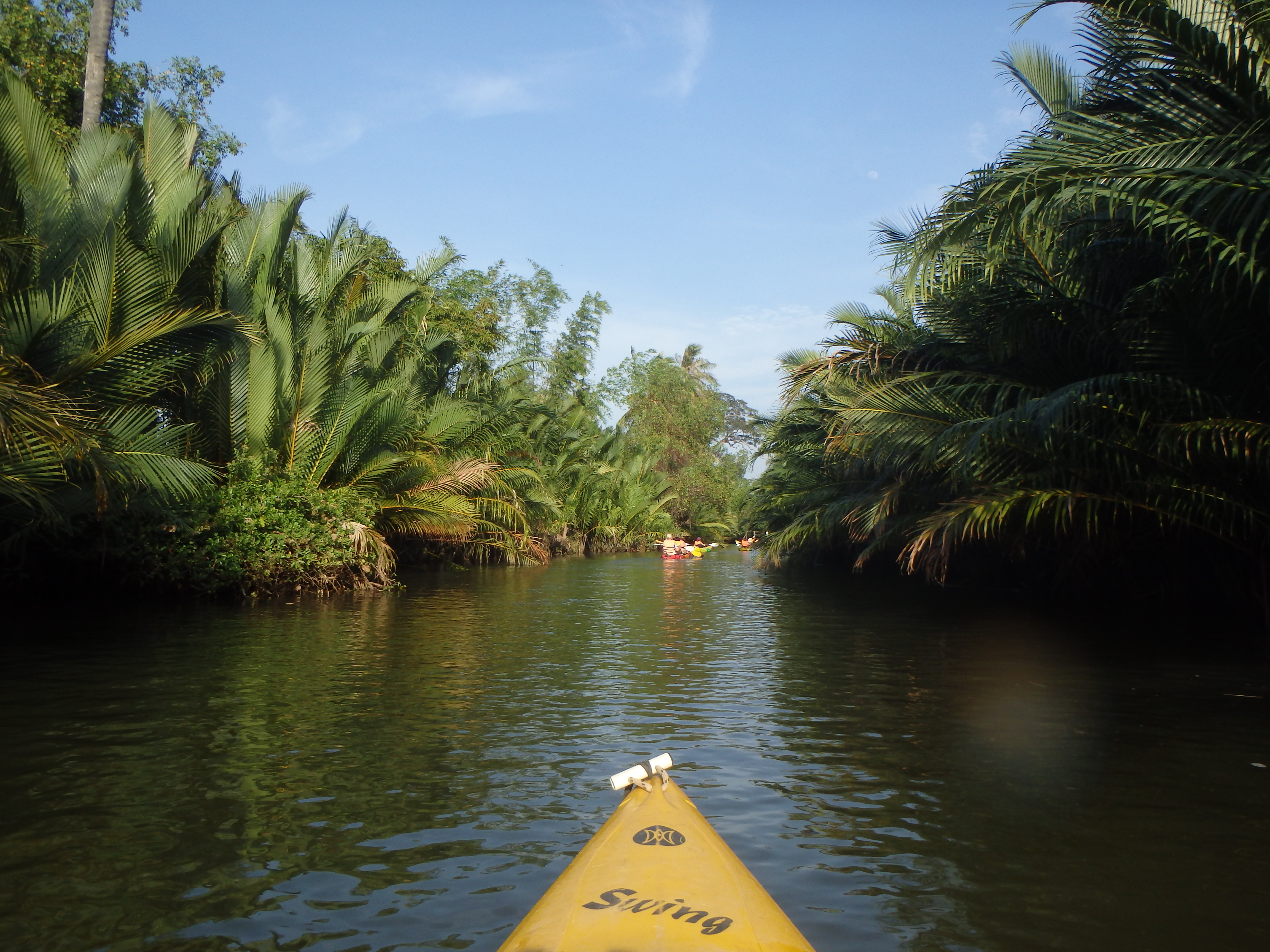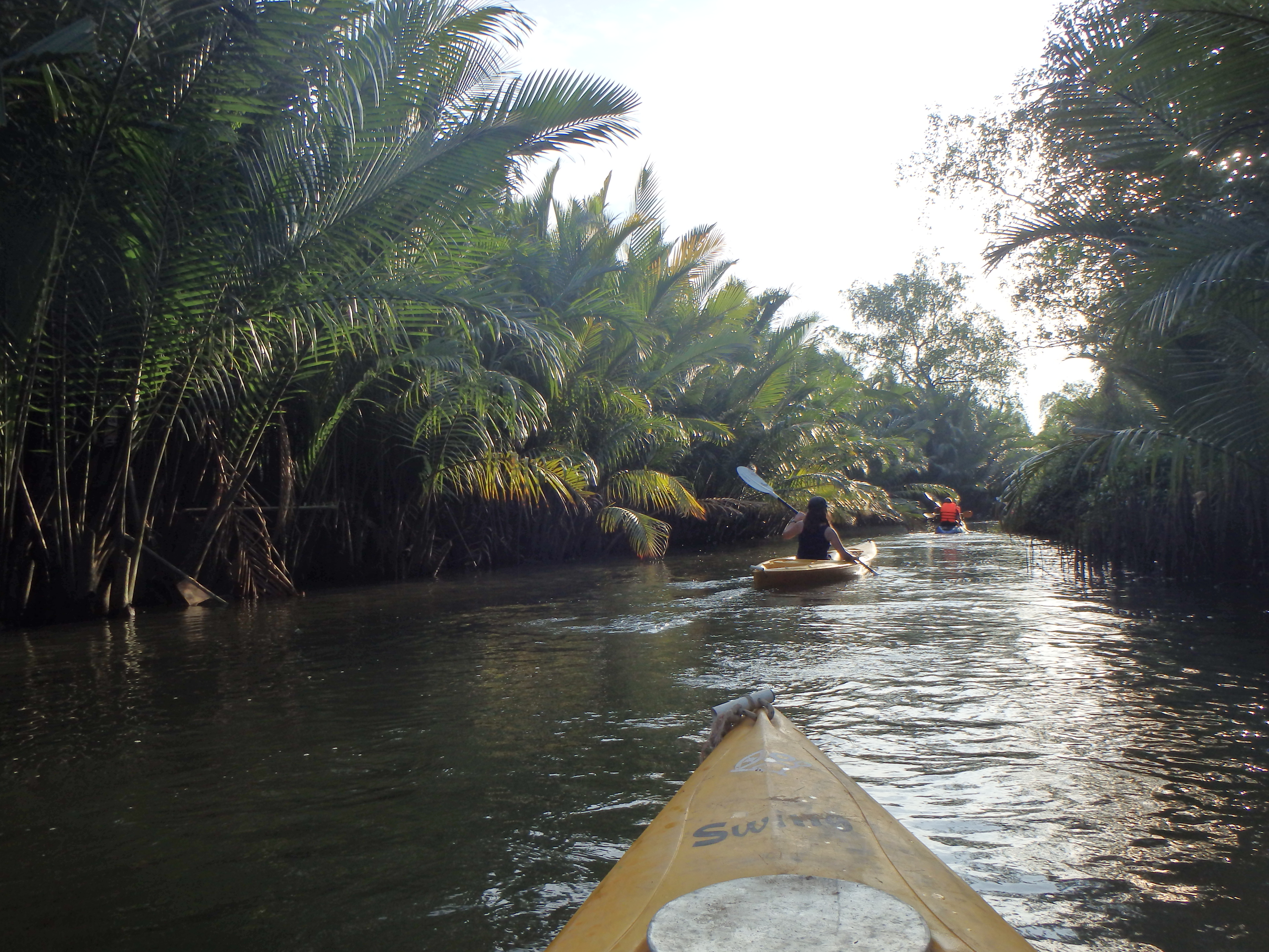 In the afternoon we took a boat from Les Manguiers to a spot up river where we were dropped off to kayak. First, we paddled through the “Green Cathedral” so named for the green palm fronds that dominate the bank and sometimes form an arch over the water. It was a beautiful place to kayak. It was a very tranquil trip since we were surrounded by greenery in every direction. When we finished the loop we chose to paddle back down the river to the guest house where we indulged in an excellent dinner and then leisurely wore away the evening.