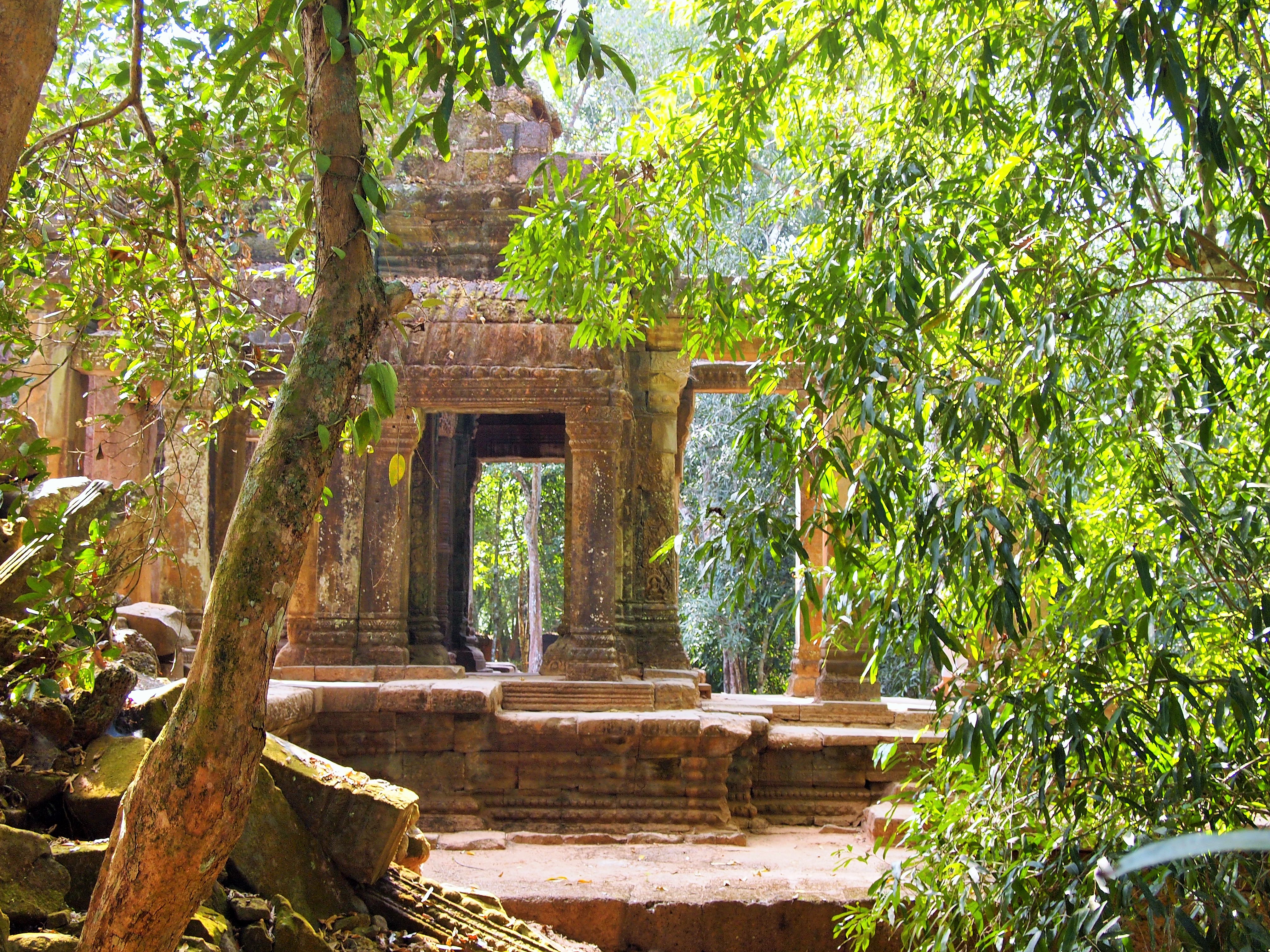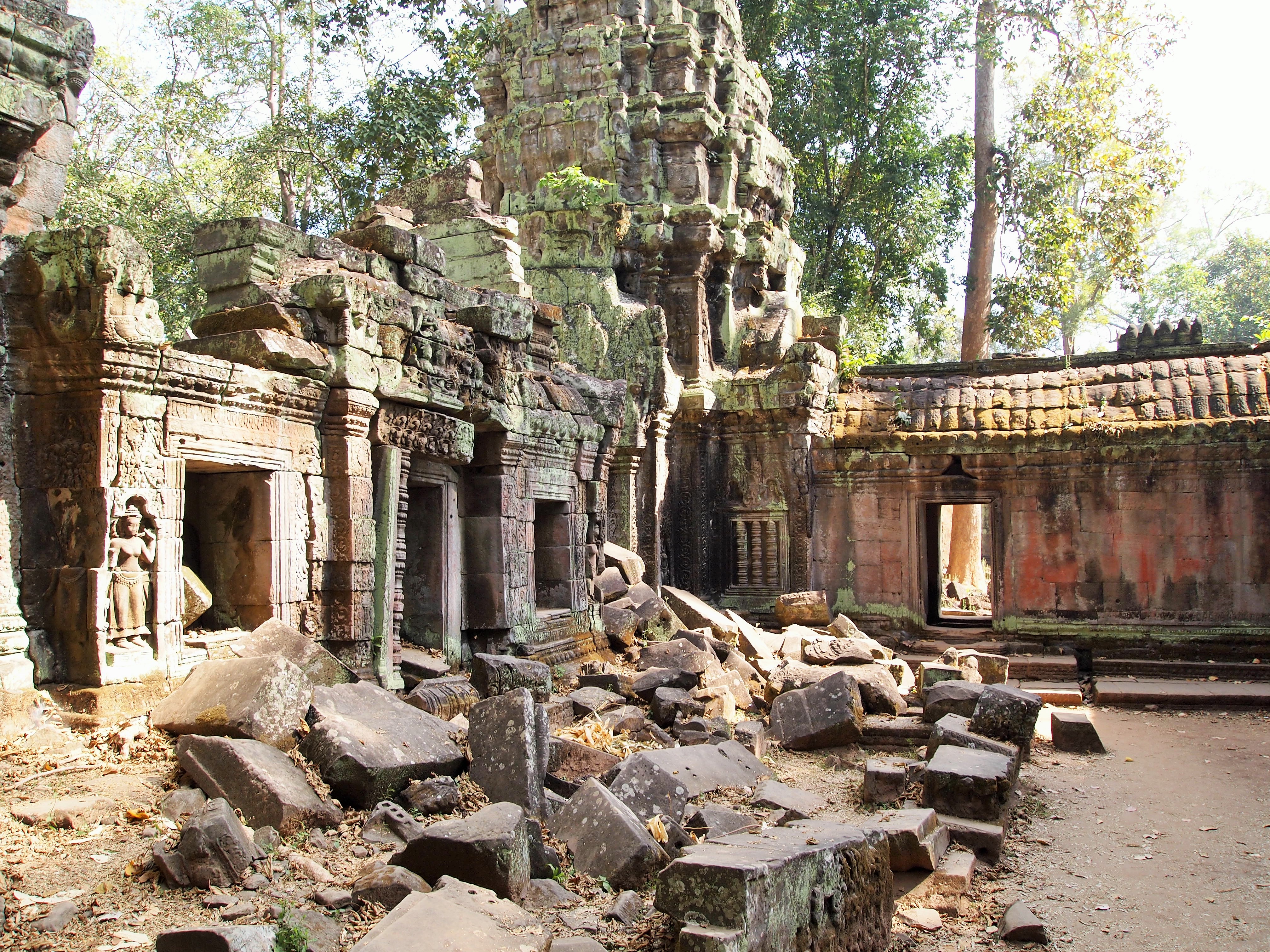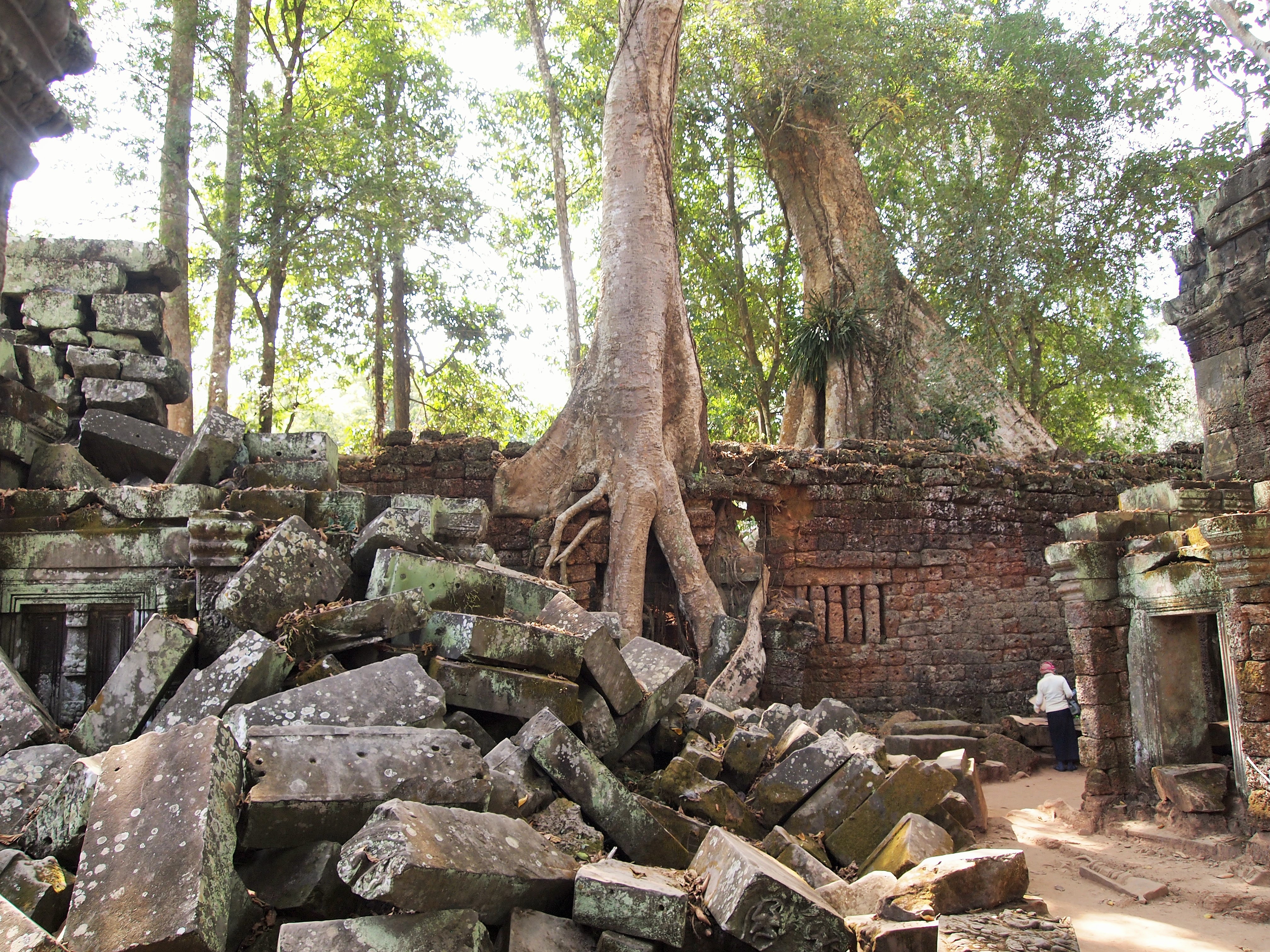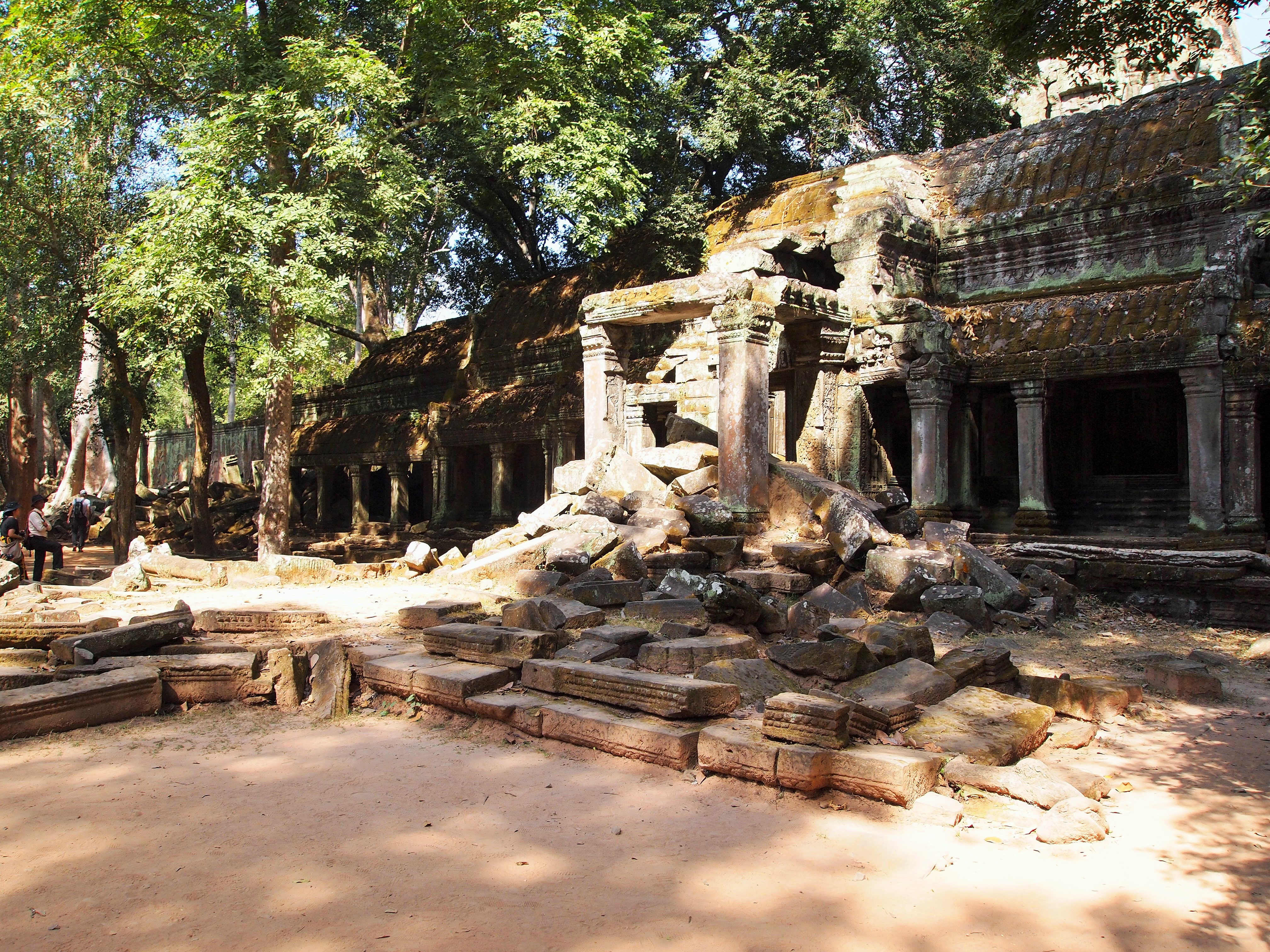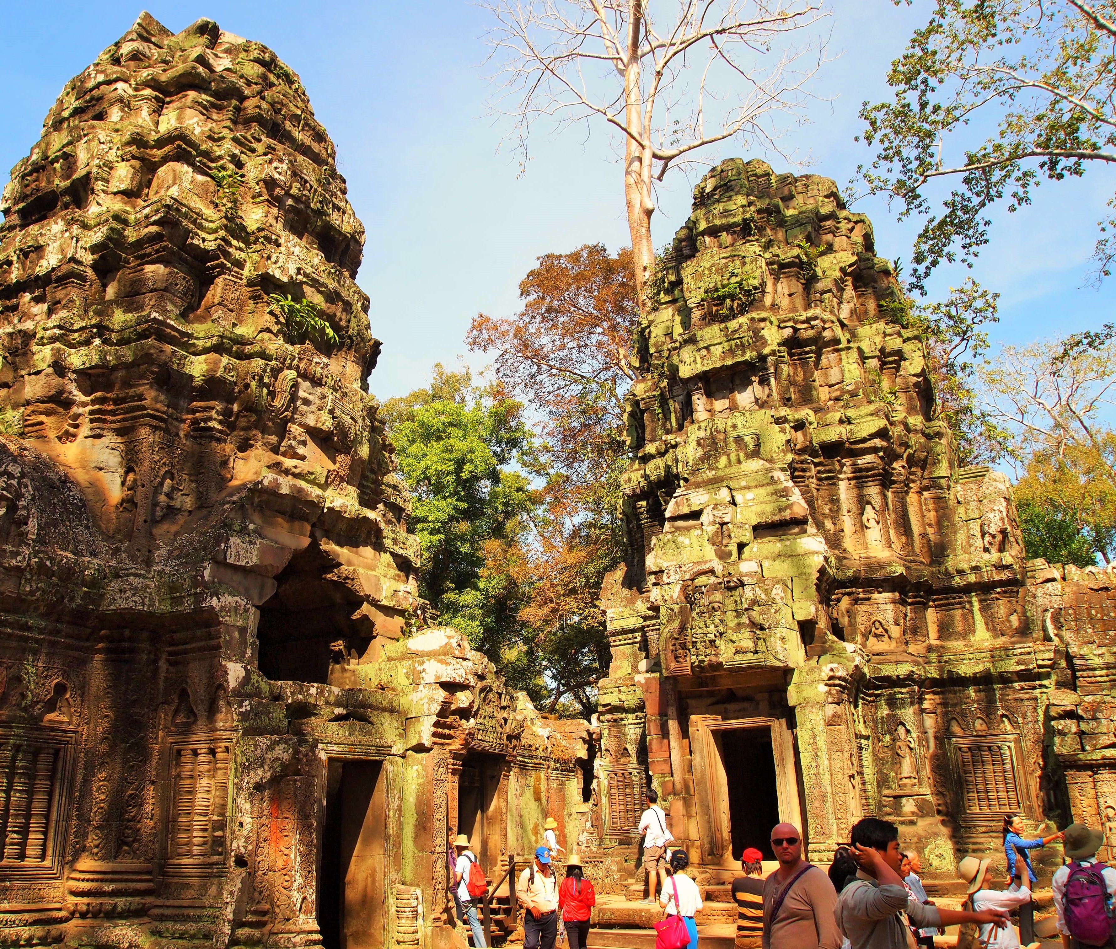 Ta Prohm was built by Jayavarman VII in the latter half of the 12th century. It was a Buddhist monastery that he dedicated to his mother and one of few places in Angkor that had an inscription which provided information about the complex. According to the inscription, Ta Prohm required almost 80,000 people to maintain the temple.