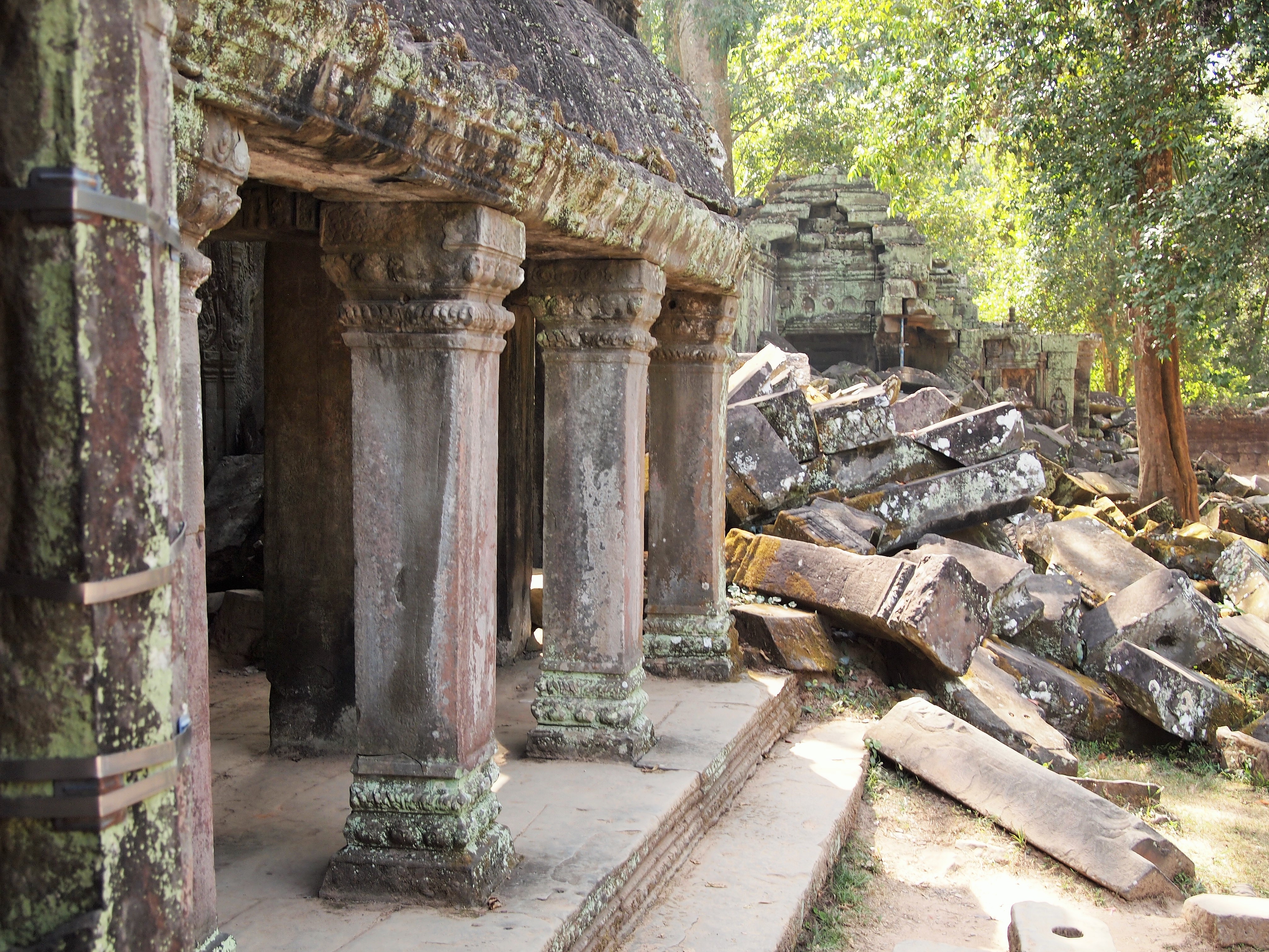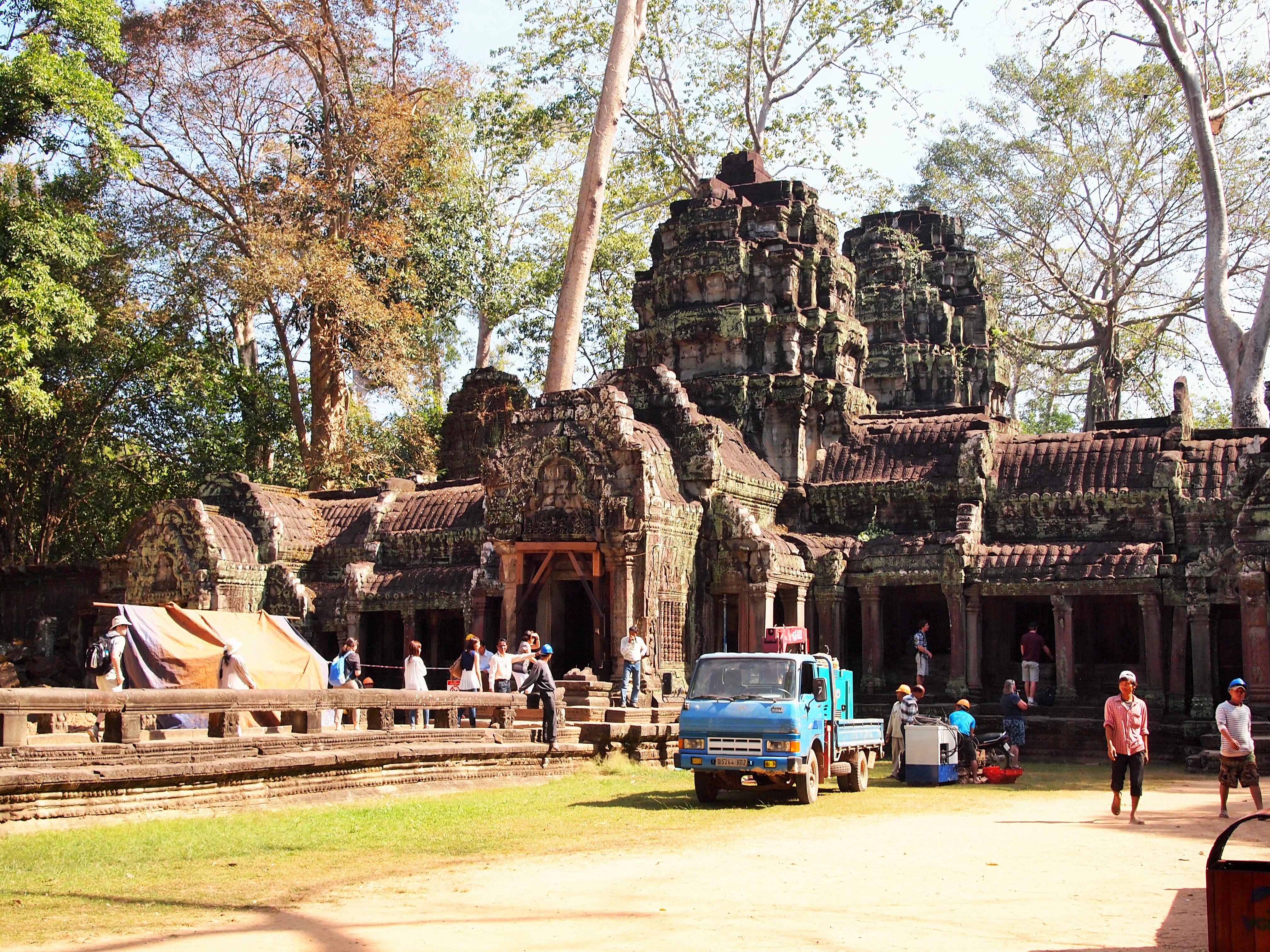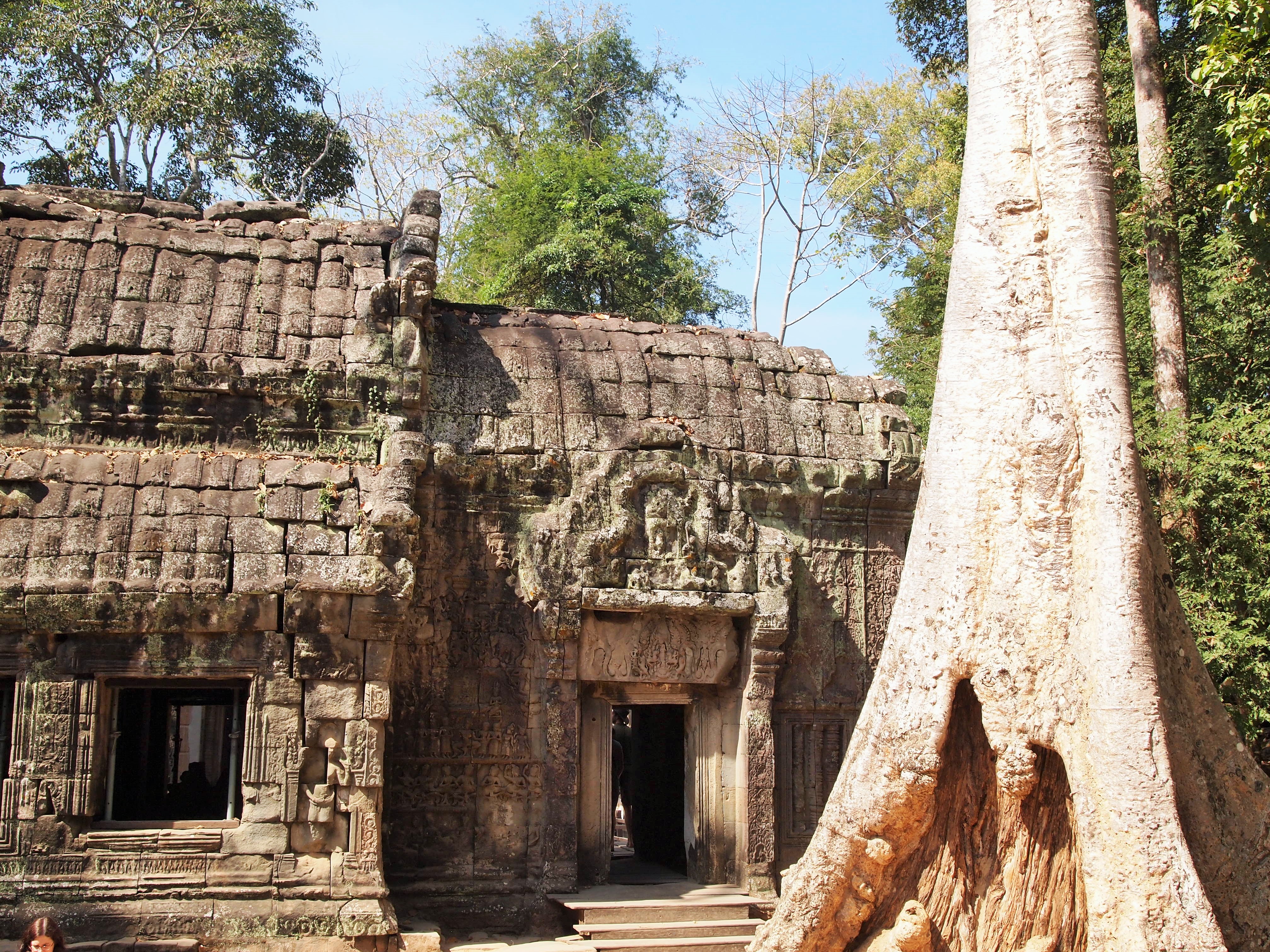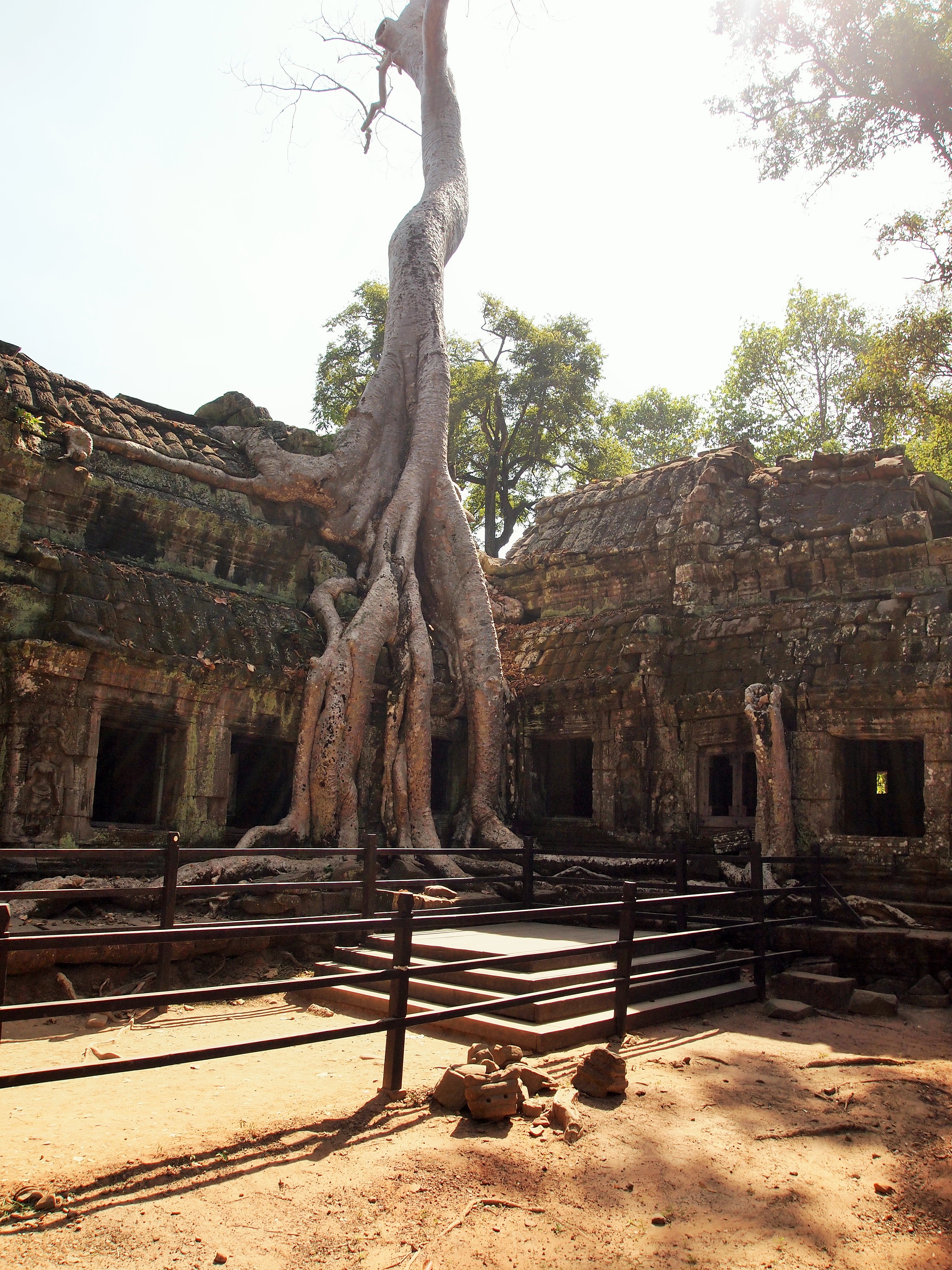 Ta Prohm is what every tourist hopes to see when they visit Angkor – a crumbling ruin still in the forest’s embrace. However, Ta Prohm isn’t quite left to the jungle anymore. Although it is still incredibly atmospheric, the jungle is kept at bay to prevent any further destruction to the temple. In front of the more popular photo ops, platforms and railings have been erected to keep visitors off of the trees, too. There was also on-going restoration work being done to parts of the temple. Even still, it was easy for us to wander in and out of the narrow corridors and escape from the more crowded areas. We found ourselves often alone in the stillness of the ruins. Ta Prohm gave us a glimpse of what the ruins would have looked like to the explorers who found them in the midst of the jungle, ravaged by nature’s slow encroachment. It was mesmerizing. A powerful reminder of nature’s dominance.