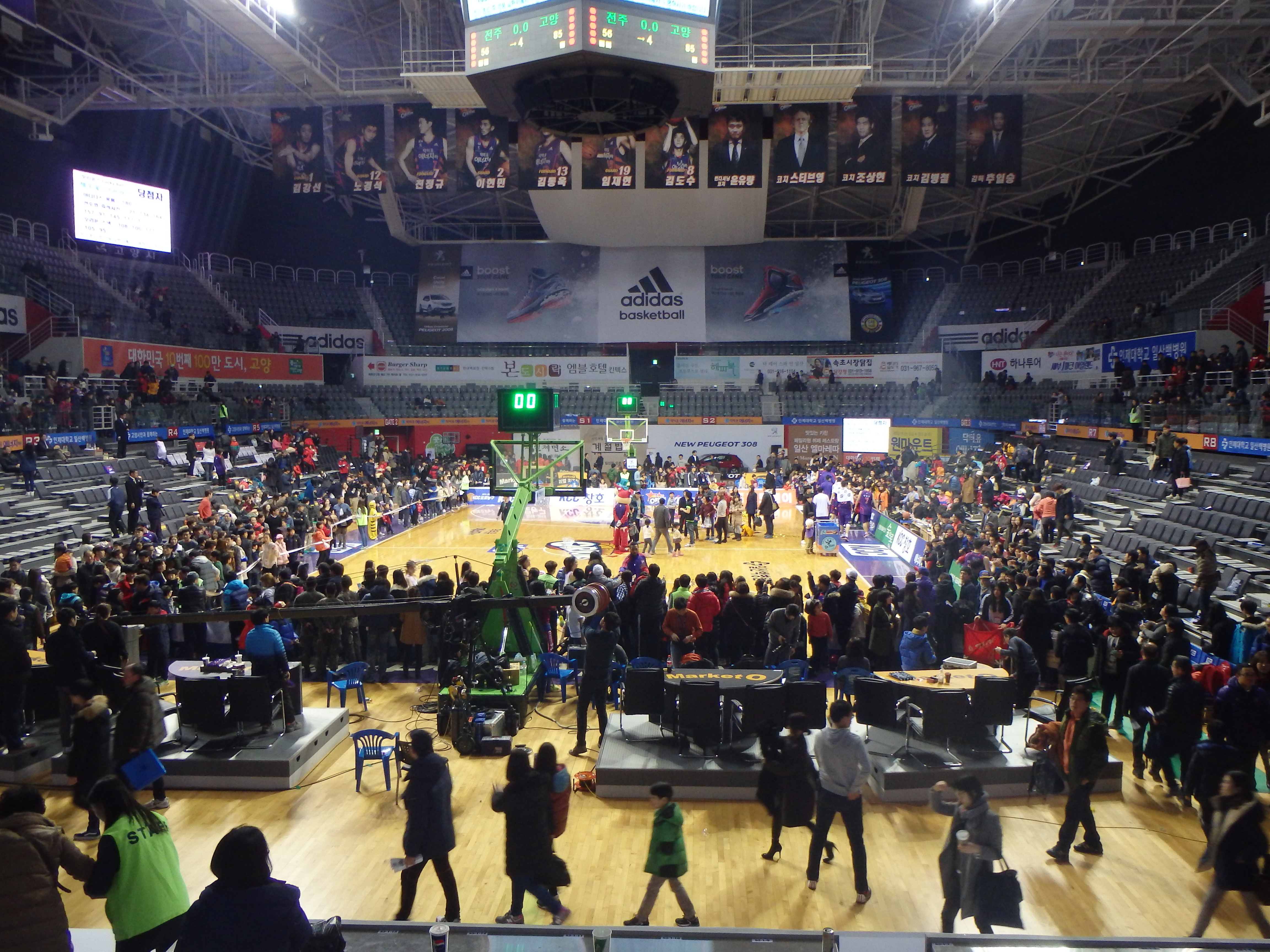 Last Sunday we decided to check out a Korean Basketball League (KBL) game. It turns out that our city has a team, the Orions (pronounced Oh-ree-on-suh). Unfortunately, like most things in Korea, we couldn’t buy tickets online so we had to hope for the best when we showed up to the game. Luckily, we ended up with pretty decent seats and it wasn’t too difficult to buy the tickets.