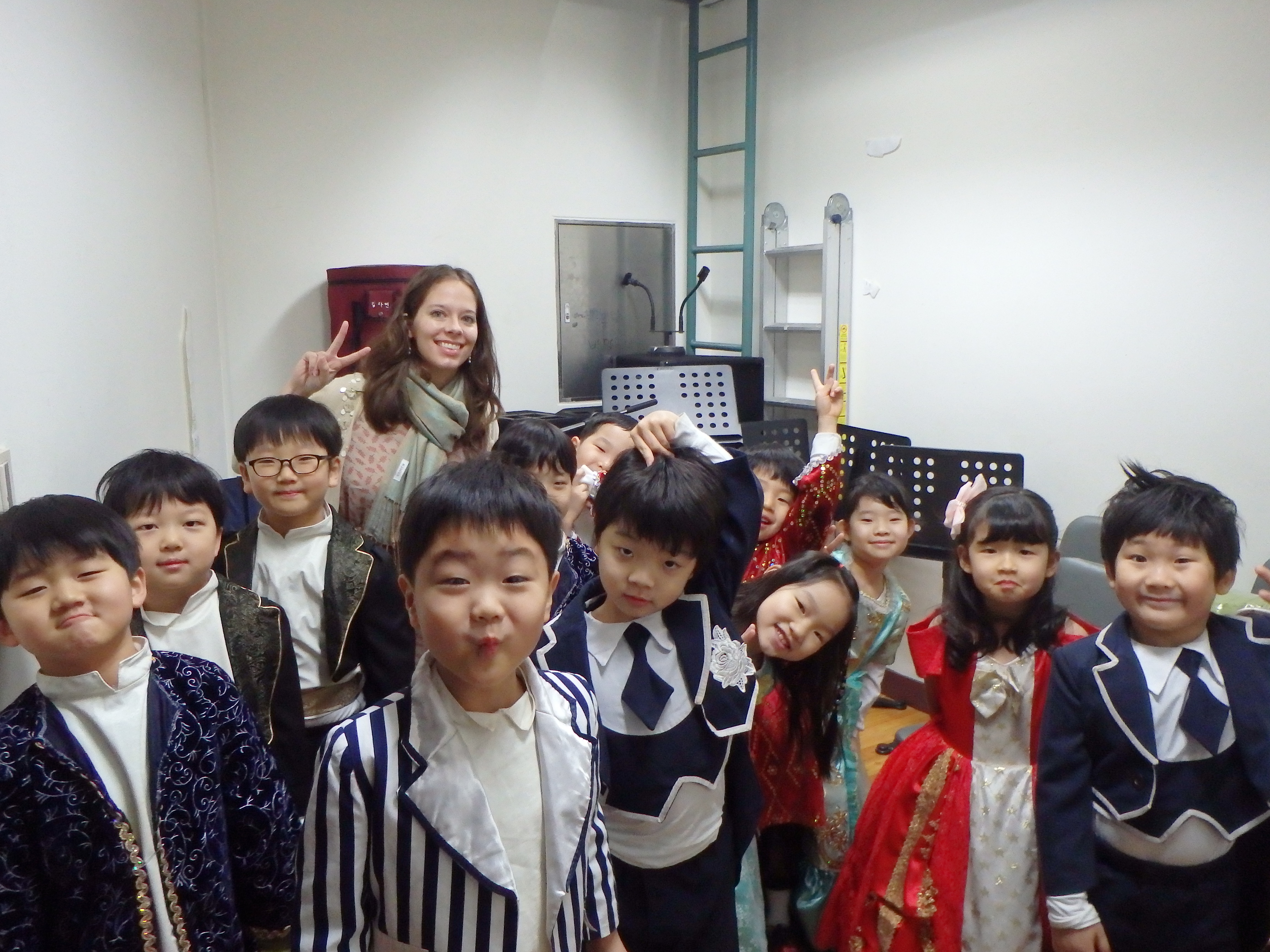 Kindergarten Graduation is a whole other animal in Korea. I expected a cute ceremony where we paraded them across the stage to accept their diplomas and then maybe they sang a song. This was an entire production, and it was exhausting! Included in the ceremony were two plays put on by the kindergarten classes: Beauty and the Beast performed by Cherry and Blueberry and Pinocchio by Plum, Apple, and Melon. After the plays, superlative awards were given out for the graduating students – Super Scientist, Most Responsible, Best Artist, etc. Then each graduating class was presented with their diplomas, returning students with certificates of completion. THEN, the 3 graduating classes each gave farewell speeches. And somehow we still ended the program with 2 songs! It was a whirlwind.