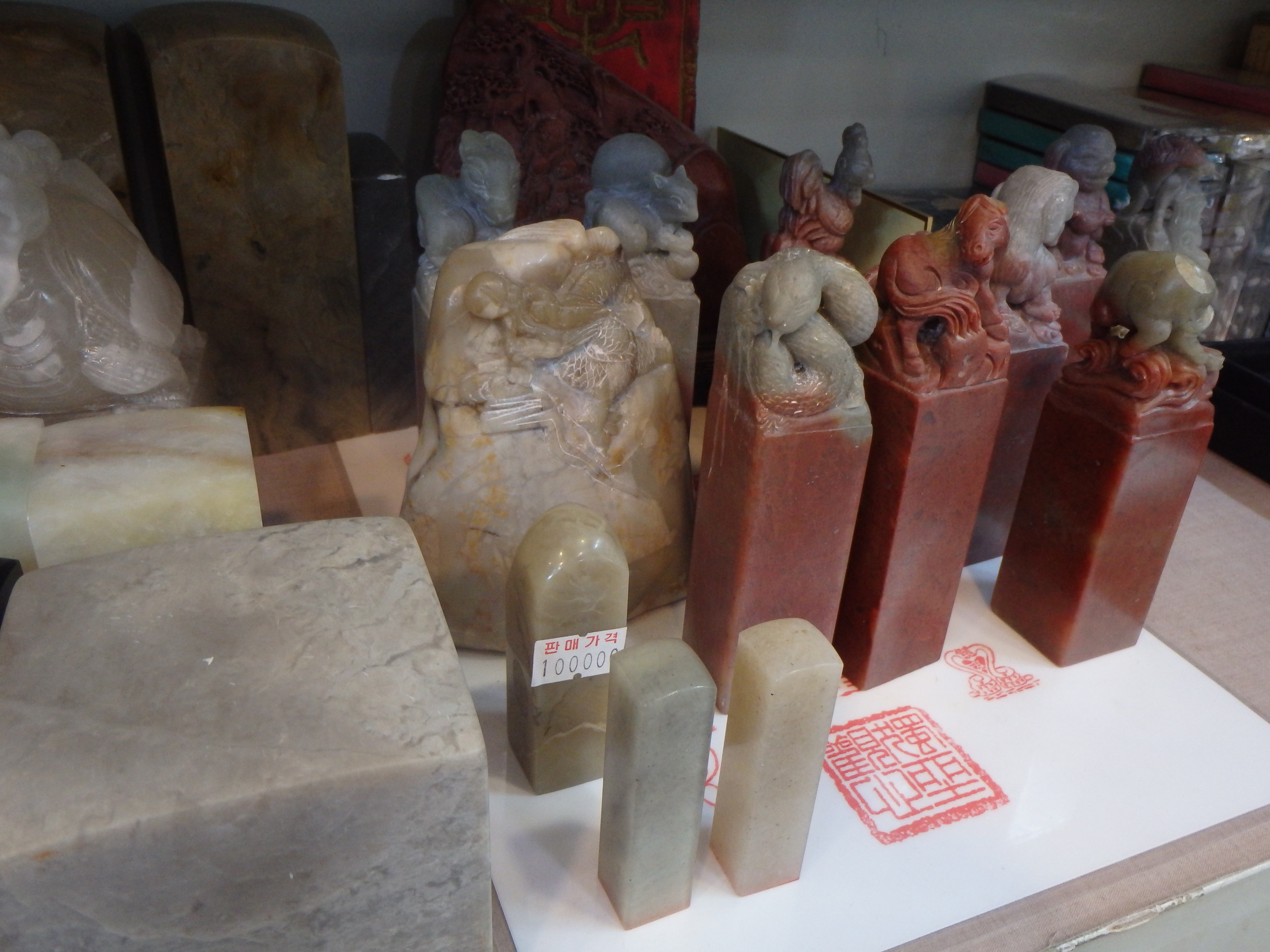 I told one of the workers that I wanted to buy a dojang so he led me to an area with various sizes of stones. There was a wide range of prices starting at 30,000₩ and going over 100,000₩. I kept it cheap and went for a jade-like stone listed at 30,000₩.