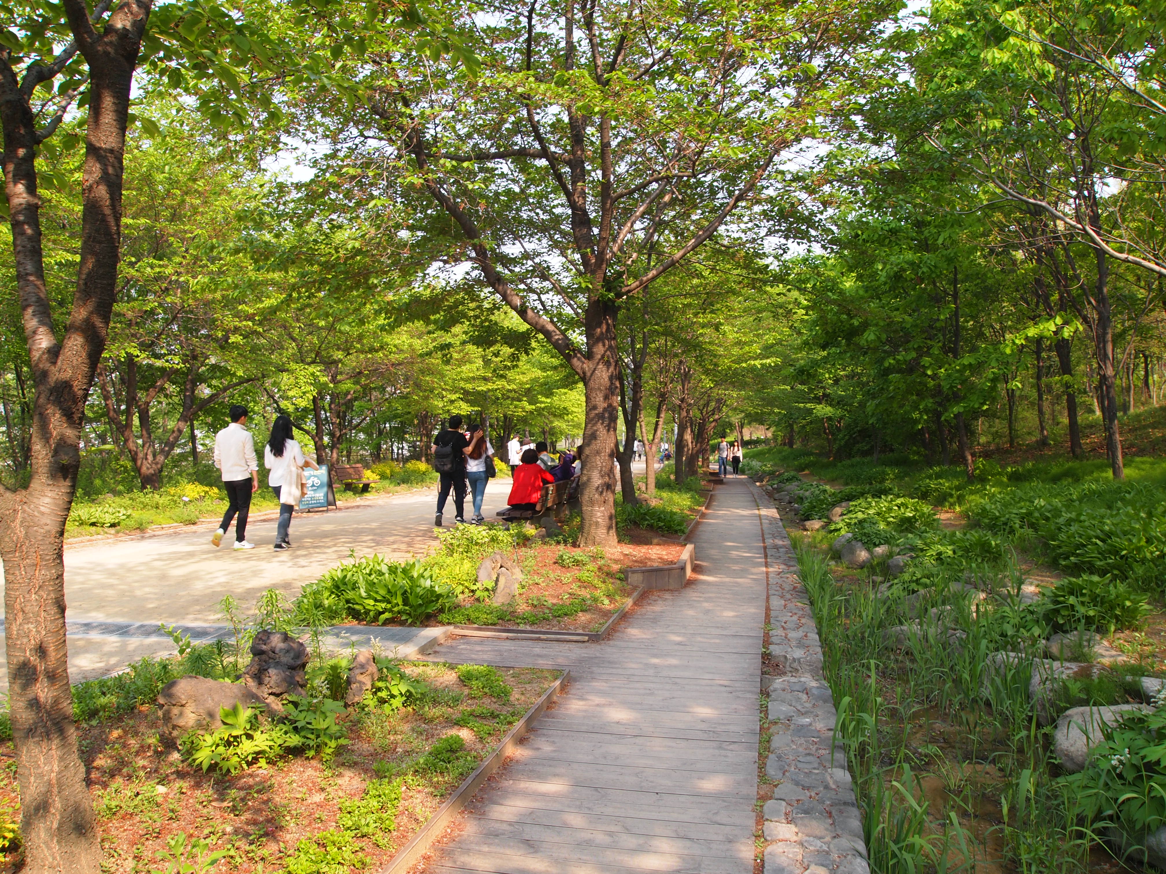 Last weekend we also decided to check out Seoul Forest. I had read that it was a large park and that we should rent bikes, but it turned out to be easier to just stroll around. I expected a large park like Central Park or Hyde Park but it felt more confined. There weren’t many large open spaces. Instead the park is really split into four park areas: an ecological forest, a cultural art park, a nature experience, and a wetlands eco field.