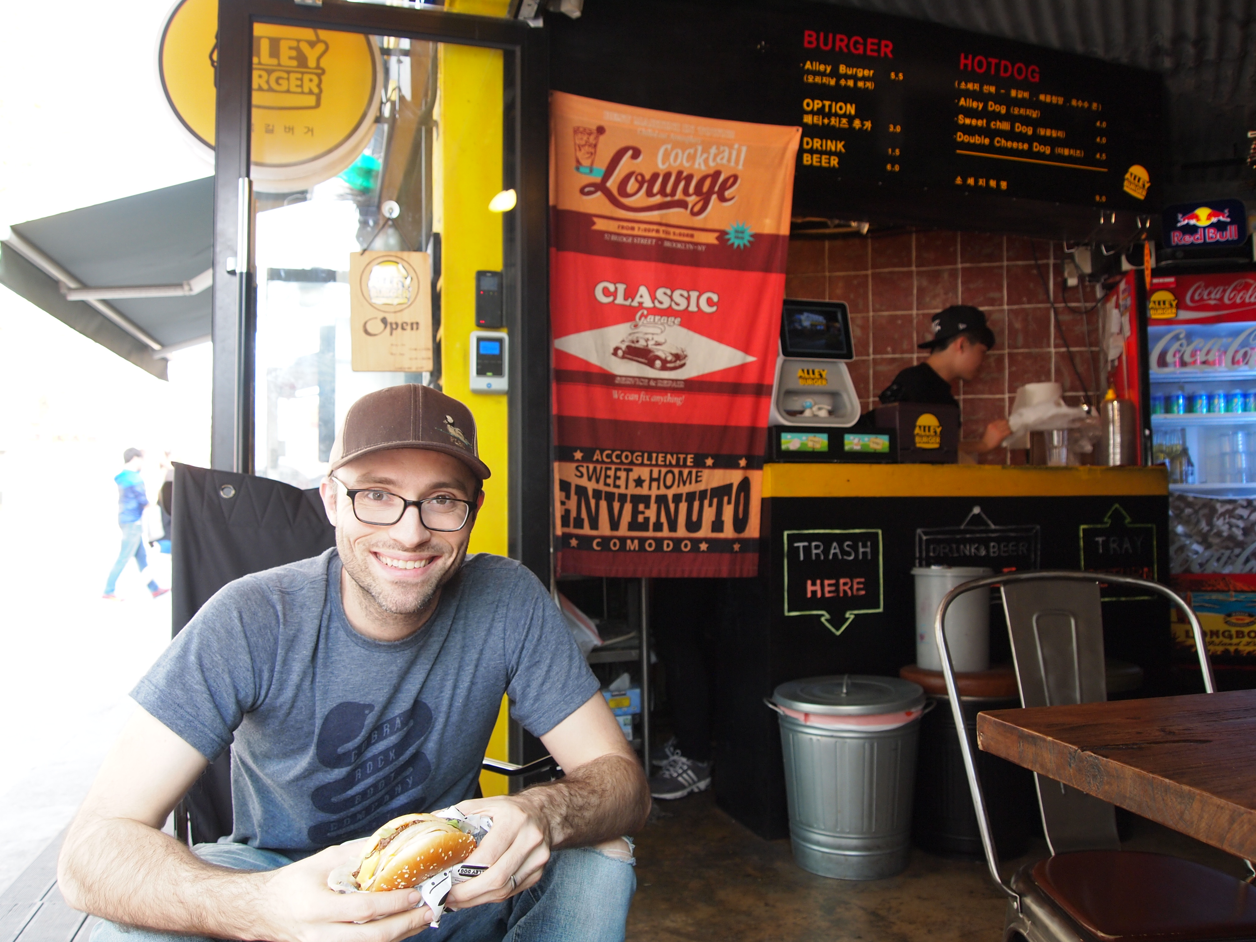After our stroll through the park, we walked back toward the station and stumbled upon a little burger place. Zach decided to get their house burger, the Alley Burger. It was pretty cool finding a local burger joint. Too bad we don’t have one in Hwajeong.