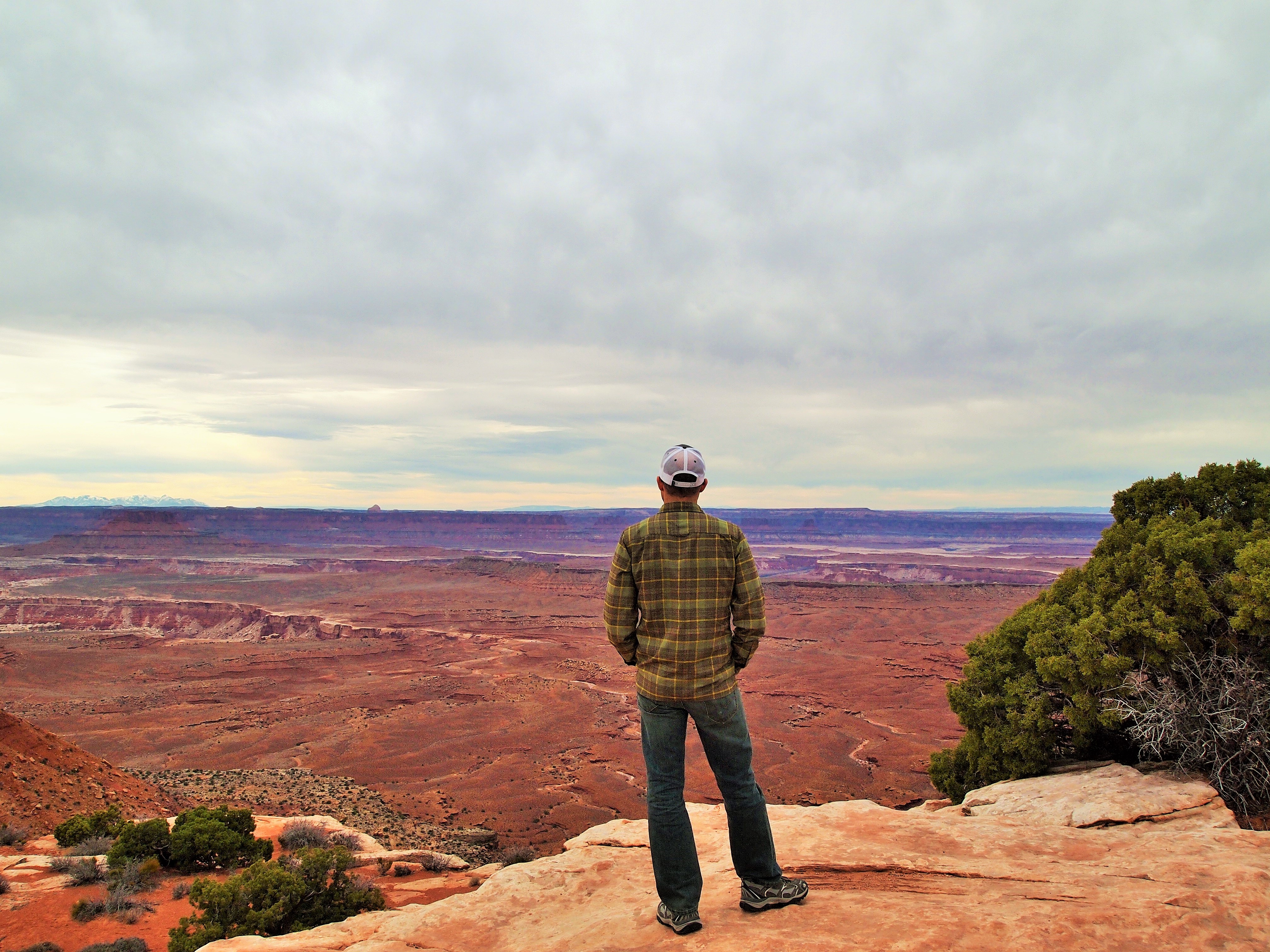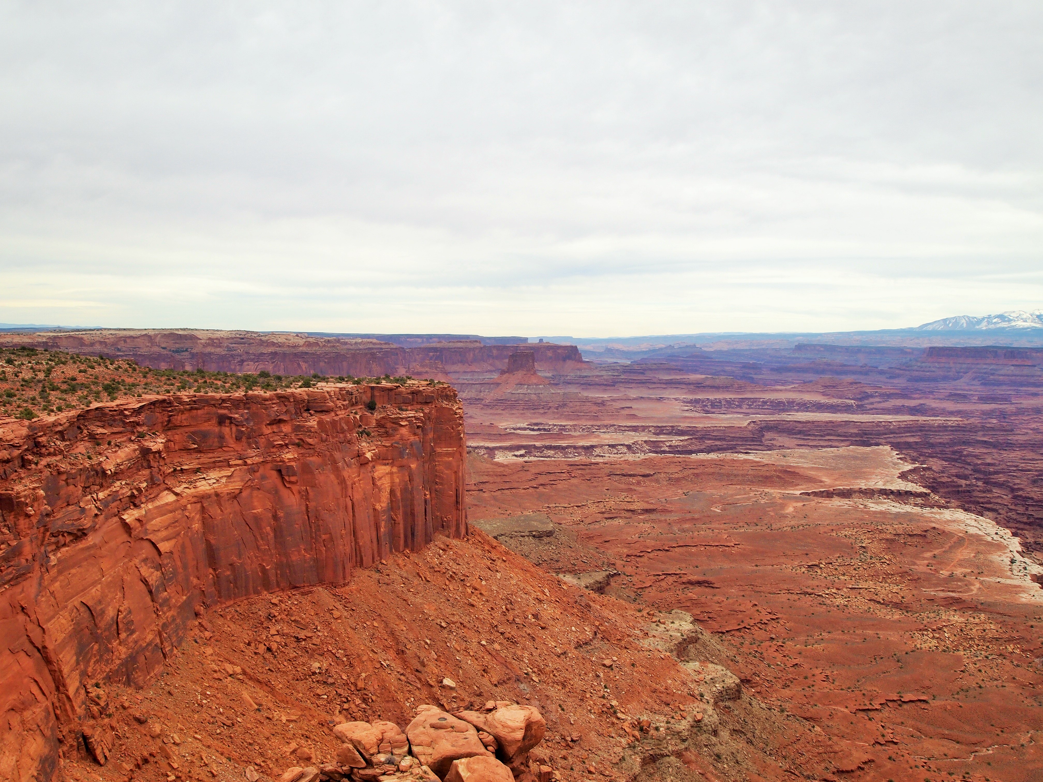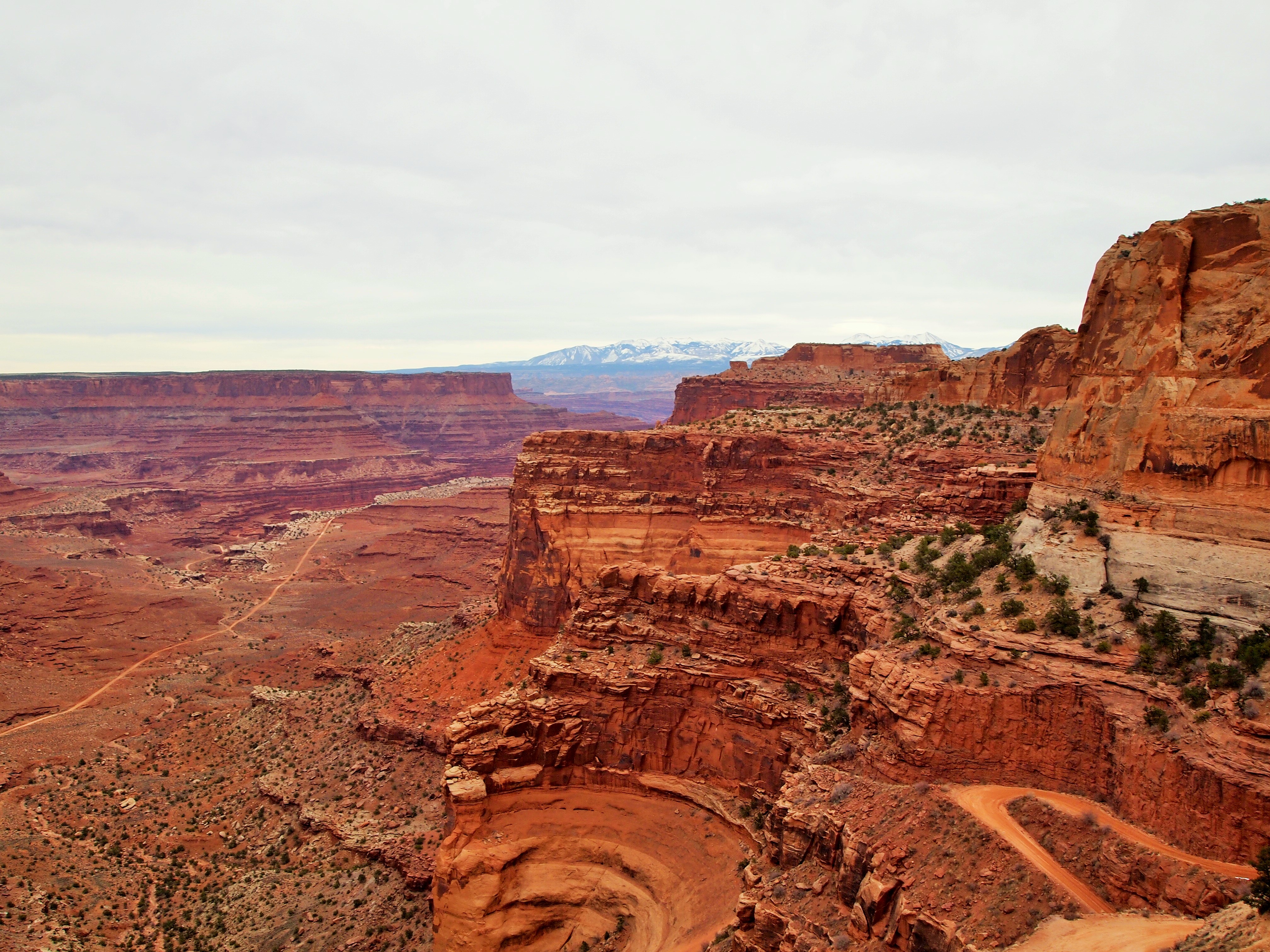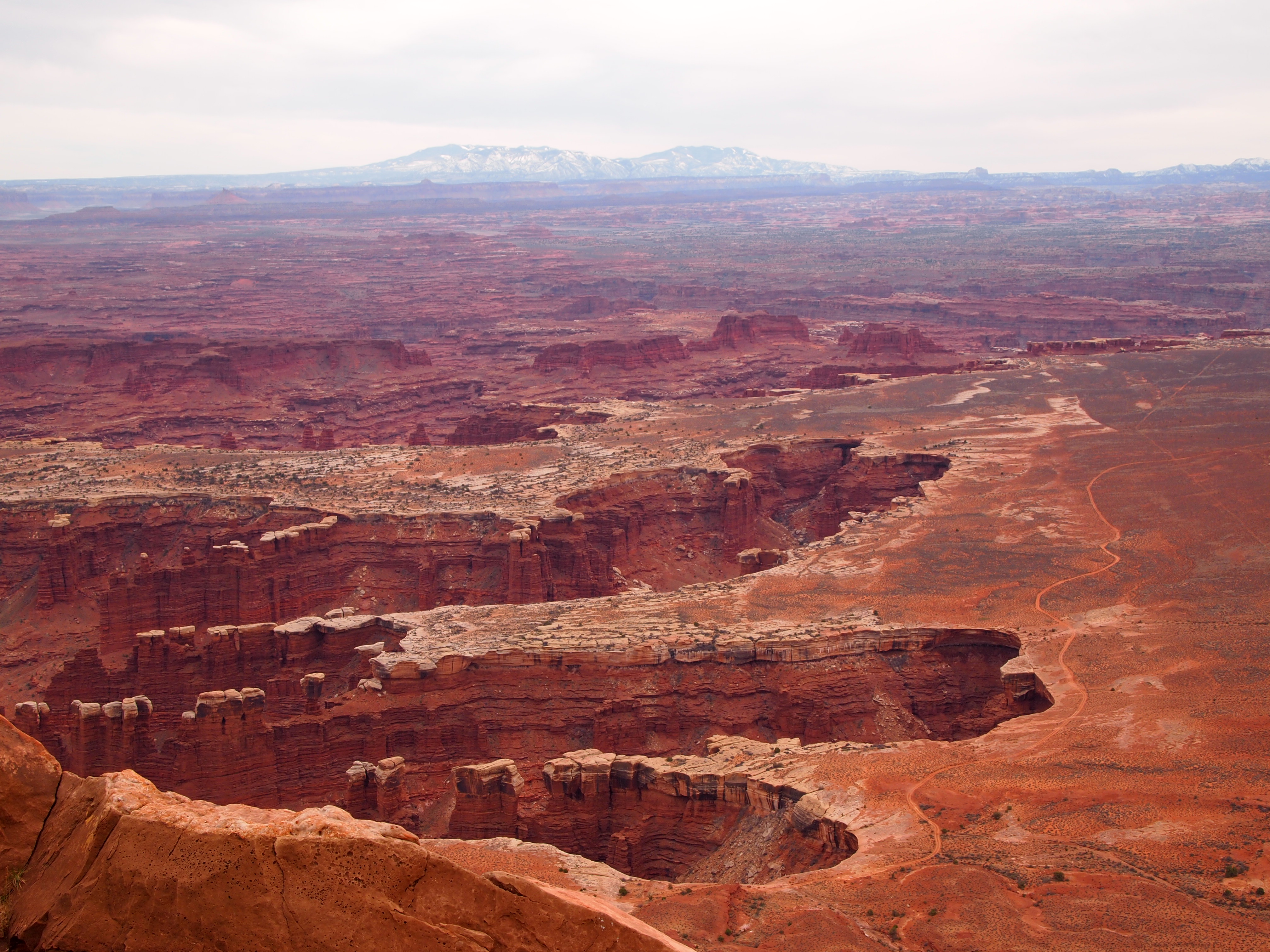 Grand View Point Overlook is at the end of the road. It’s the southern-most point on Island in the Sky and overlooks the vast Needles and Maze districts of the park. We could see White Rim Road below hugging the perimeter of the canyon, the La Sal Mountains looming in the periphery, and the seemingly delicate formations of rocks teetering hundreds of feet into the air. I could hardly grasp the magnitude.