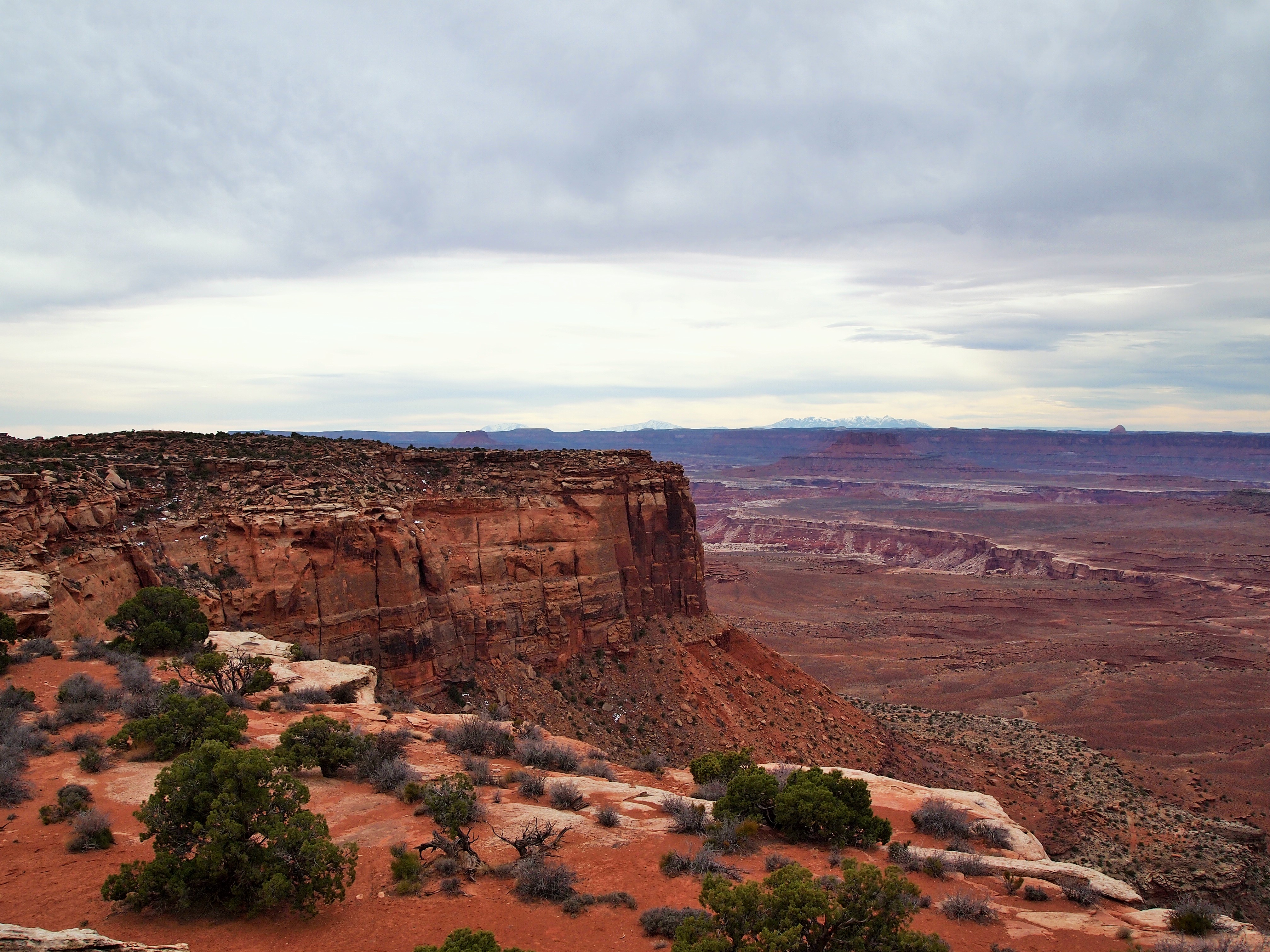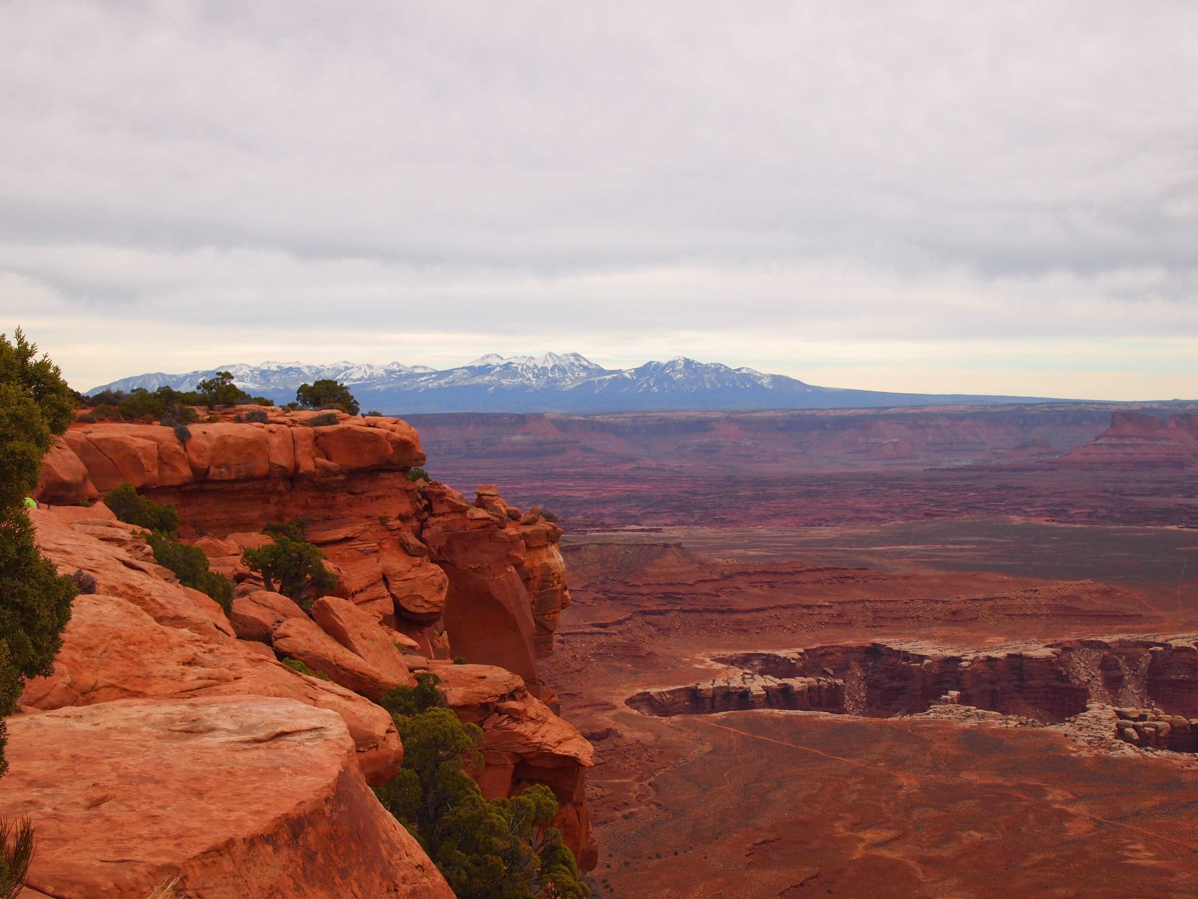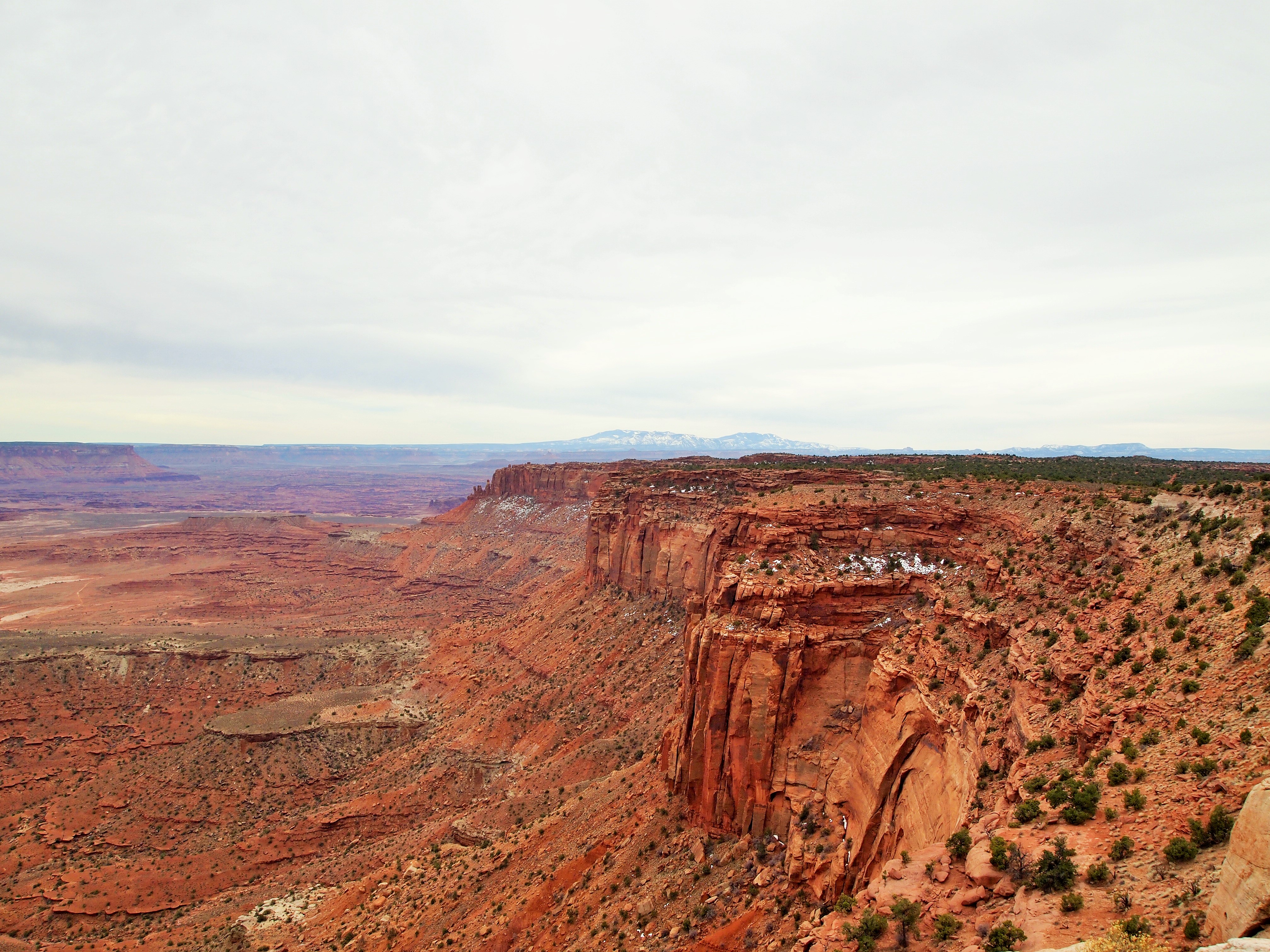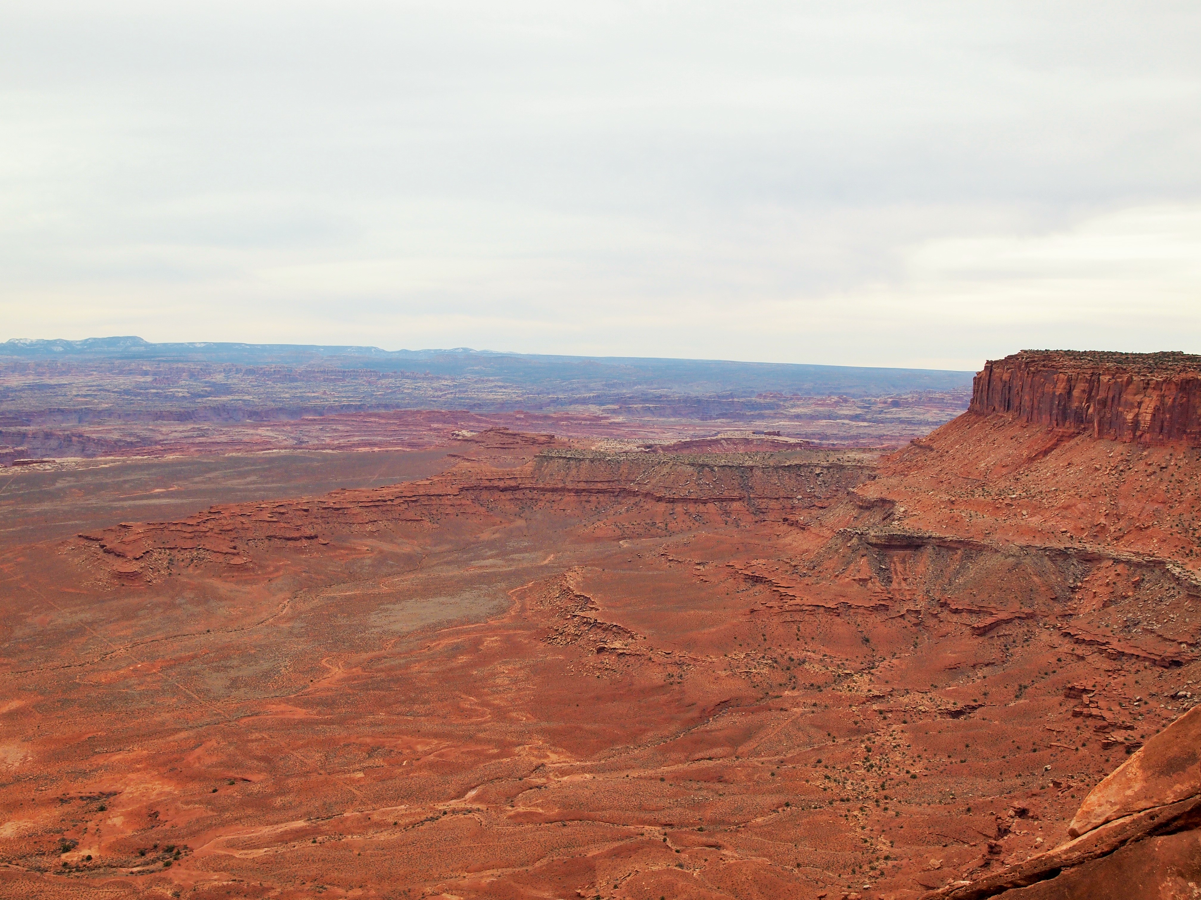 Grand View Point Overlook is at the end of the road. It’s the southern-most point on Island in the Sky and overlooks the vast Needles and Maze districts of the park. We could see White Rim Road below hugging the perimeter of the canyon, the La Sal Mountains looming in the periphery, and the seemingly delicate formations of rocks teetering hundreds of feet into the air. I could hardly grasp the magnitude.