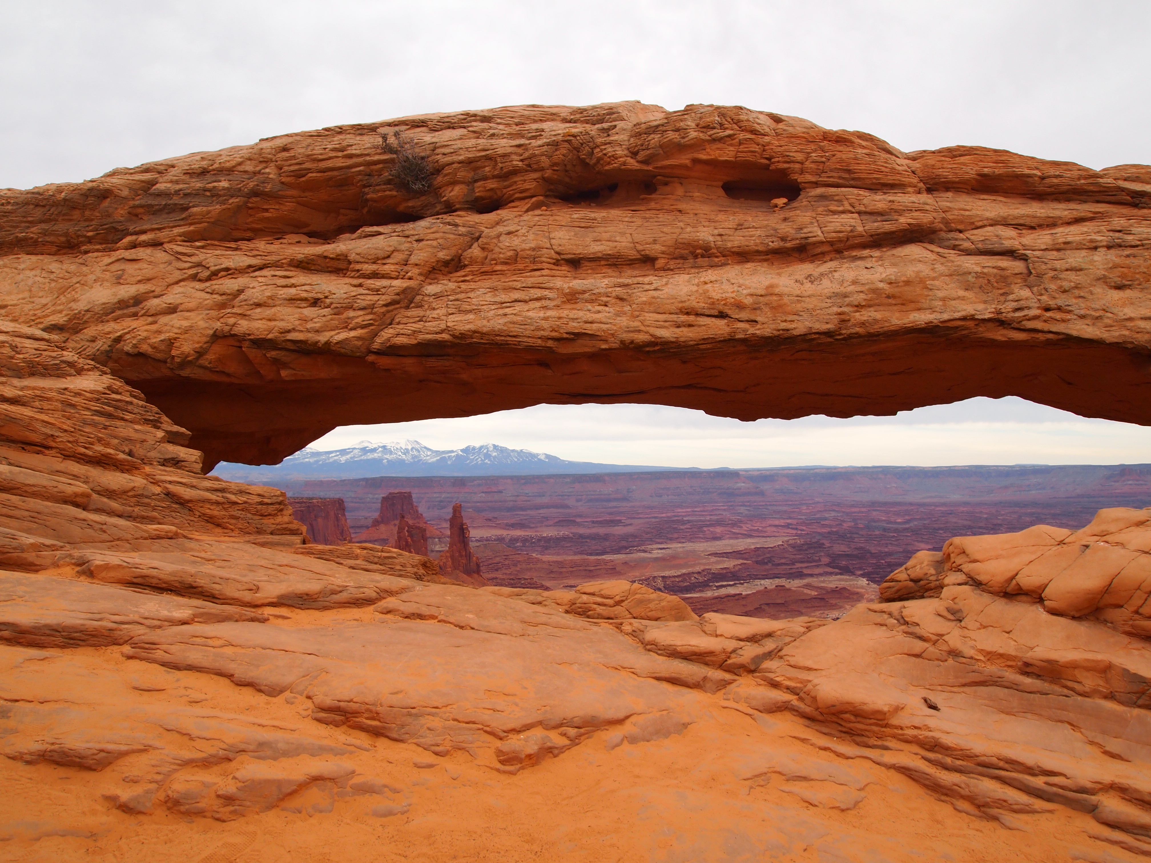 On our way back north we stopped at Mesa Arch. It’s a quick hike from the parking lot – only a half mile round trip. It’s a simple hike. There isn’t much of an incline so it’s great for families, casual hikers, and older folks. Luckily, there weren’t many people on the trail, and we were able to edge out a family with three children. The arch is low slung and perched on the edge of a cliff, offering a lovely frame for the scenery below.