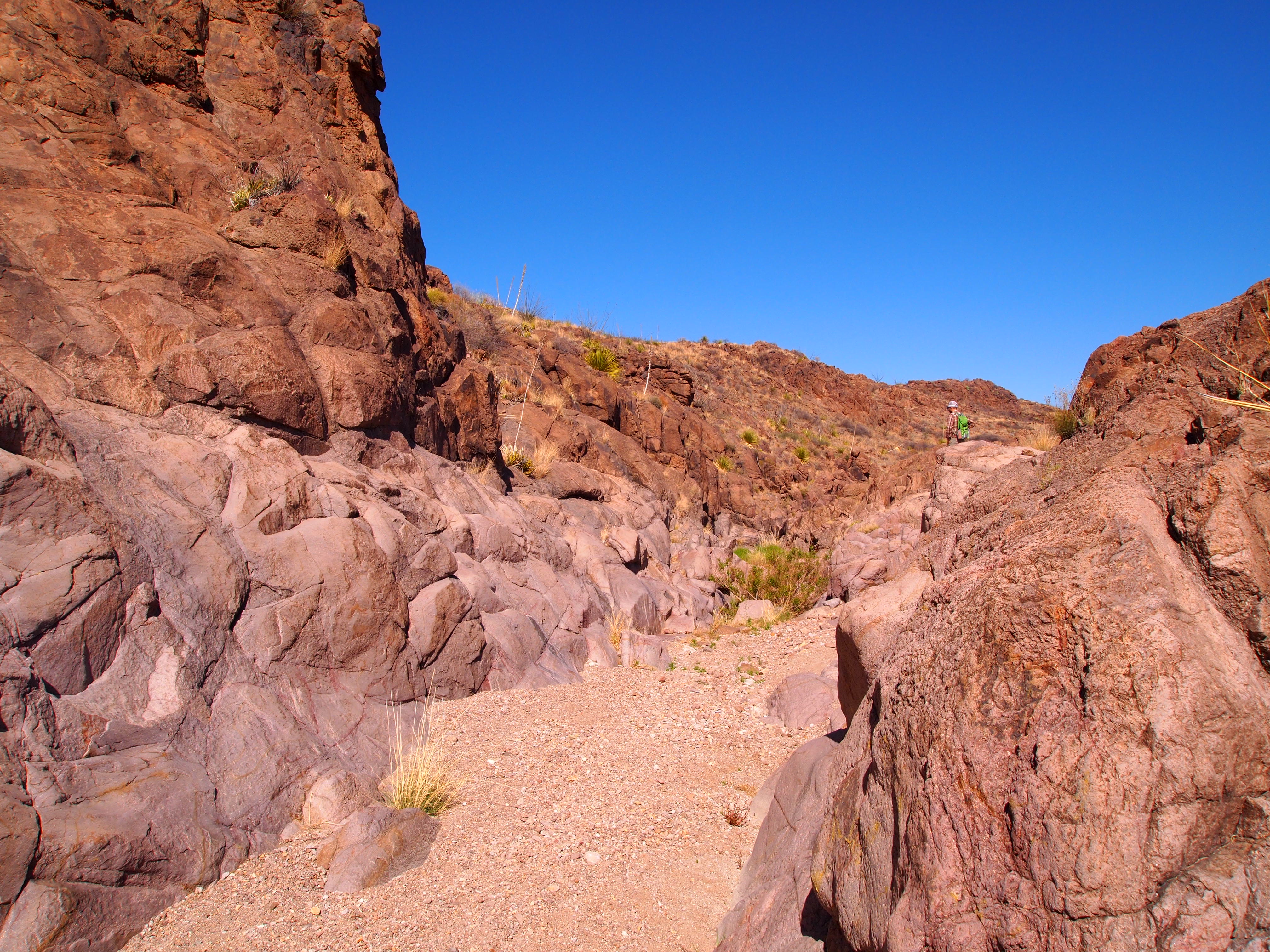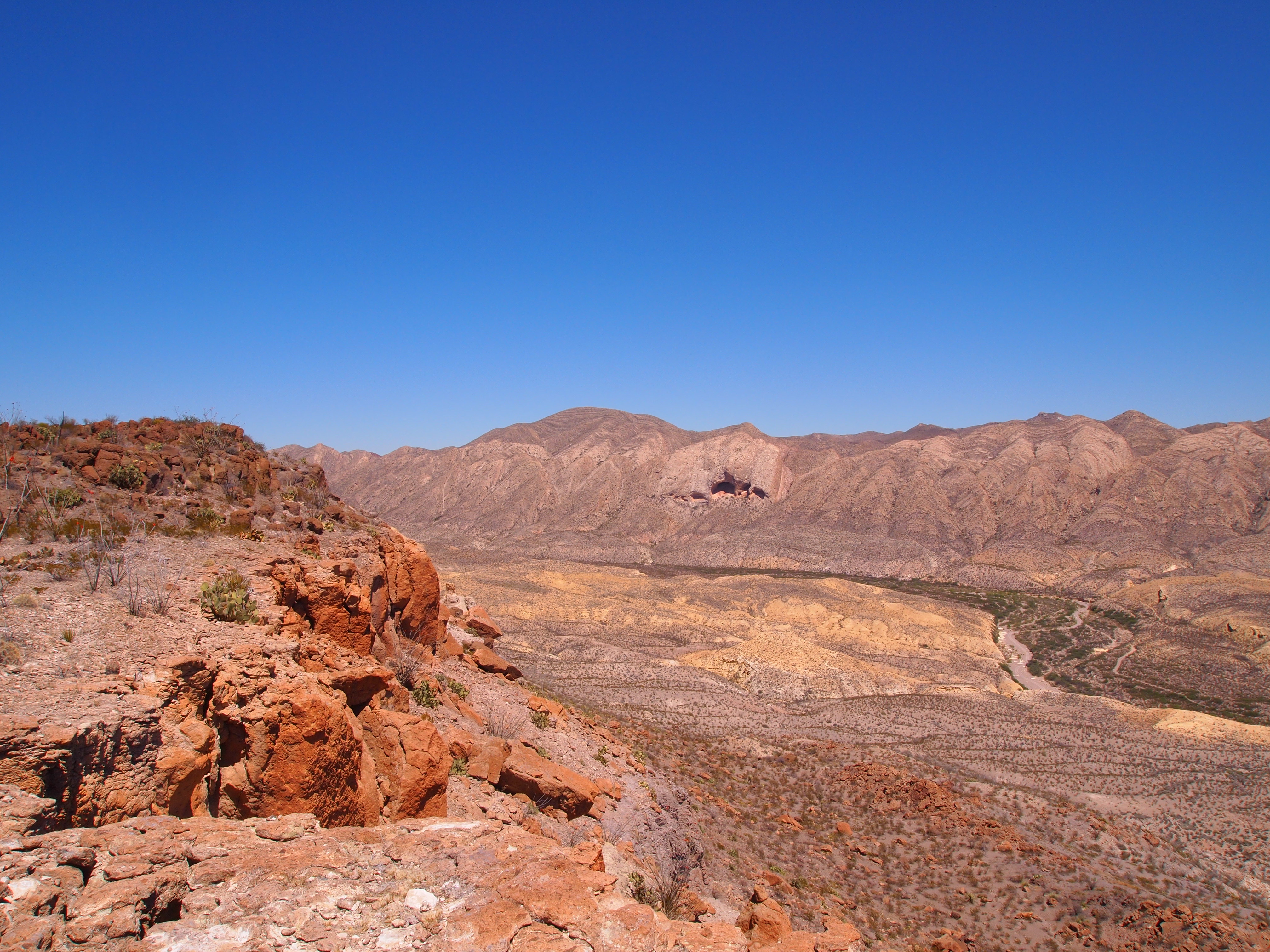 However, this intoxication did not erase the effects of the sun. The park’s peak season is November to April and after our hike I know why. Even though the temperature was relatively cool (high 60s) and there was a slight breeze, the persistent rays of the sun inevitably took their toll. We reached a nice overlook near the end of the hike, and I was tempted to call it quits and accept the view from that spot. We pressed on through one more valley and a dry creek bed, up one more ascent to finally reach the spectacular view of Fresno Canyon and El Solitario.