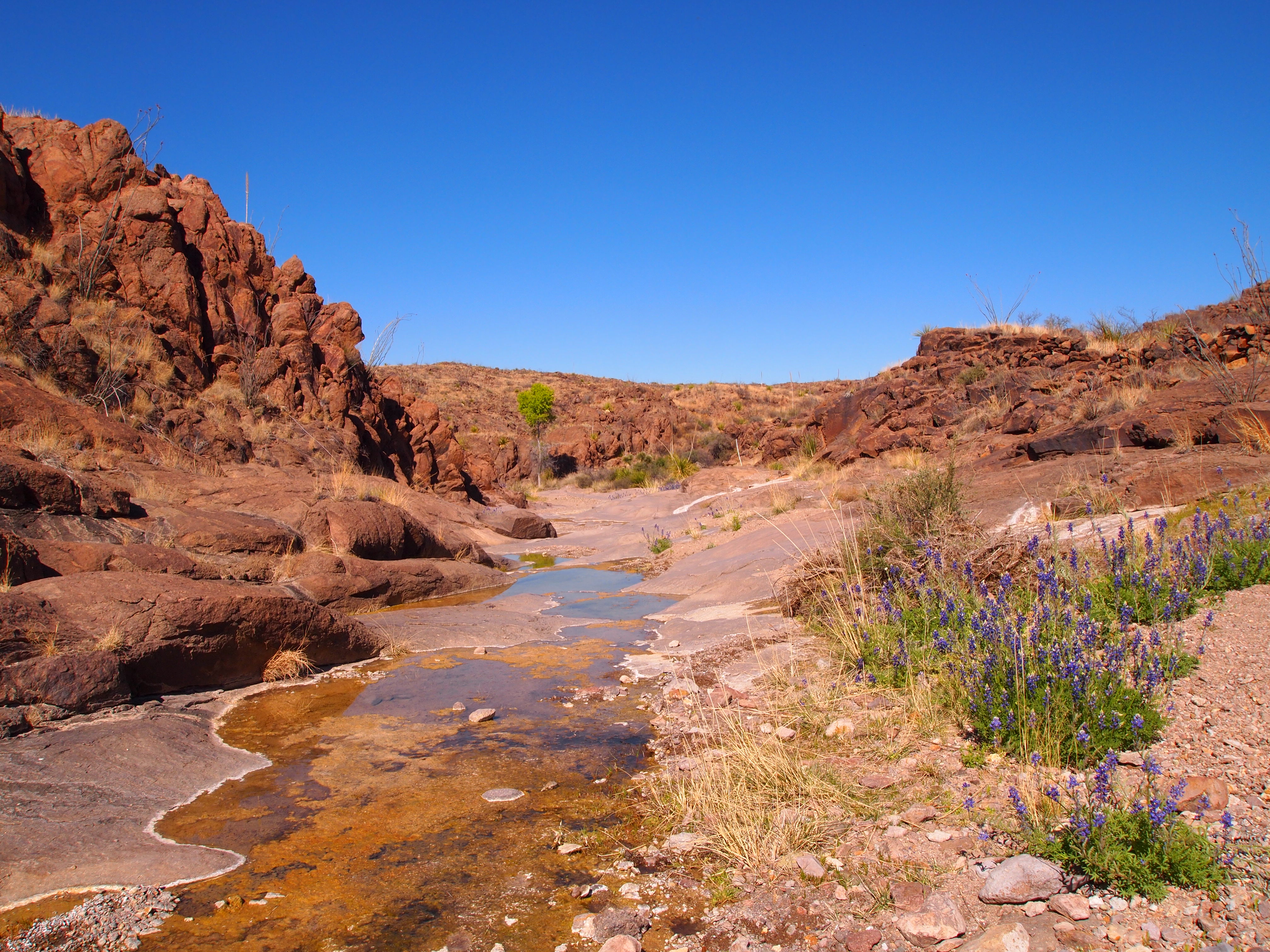 Our second hike to Cinco Tinajas was much shorter, yet I still felt completely depleted from our first journey. However, I have wanted to see the tinajas (rock basins filled with water) that appear in both the state and national park for quite some time so I decided to go through with it. We hiked the short half mile down to the tinajas and were disappointed to find that they were mostly empty. There was some water, but the basins themselves were empty at the upper level. I was so exhausted that I didn’t have the energy to climb through the slot canyon to see if the lower pools were full. The Big Bend bluebonnets which littered the banks were my only consolation. I was thrilled to see them!