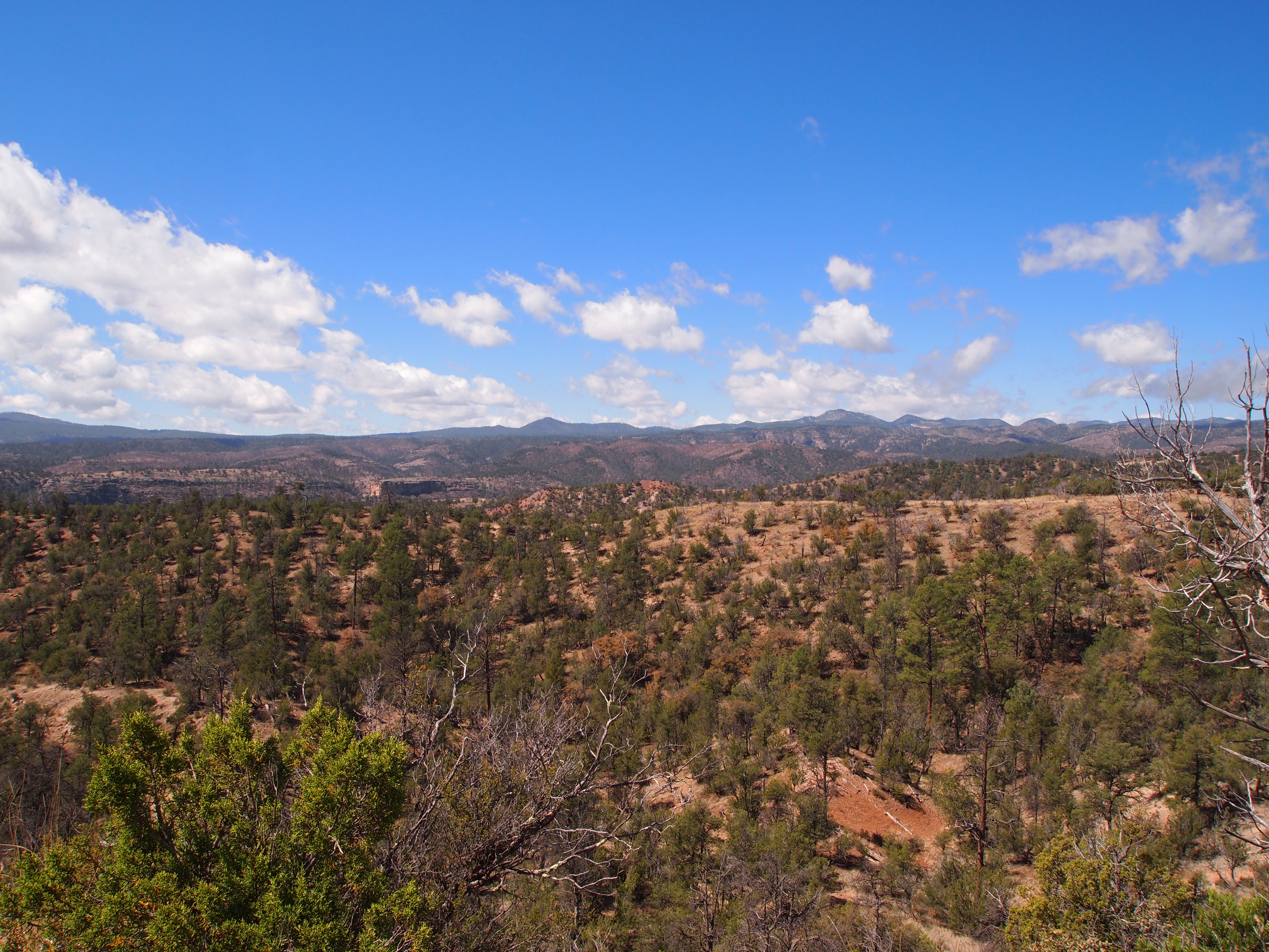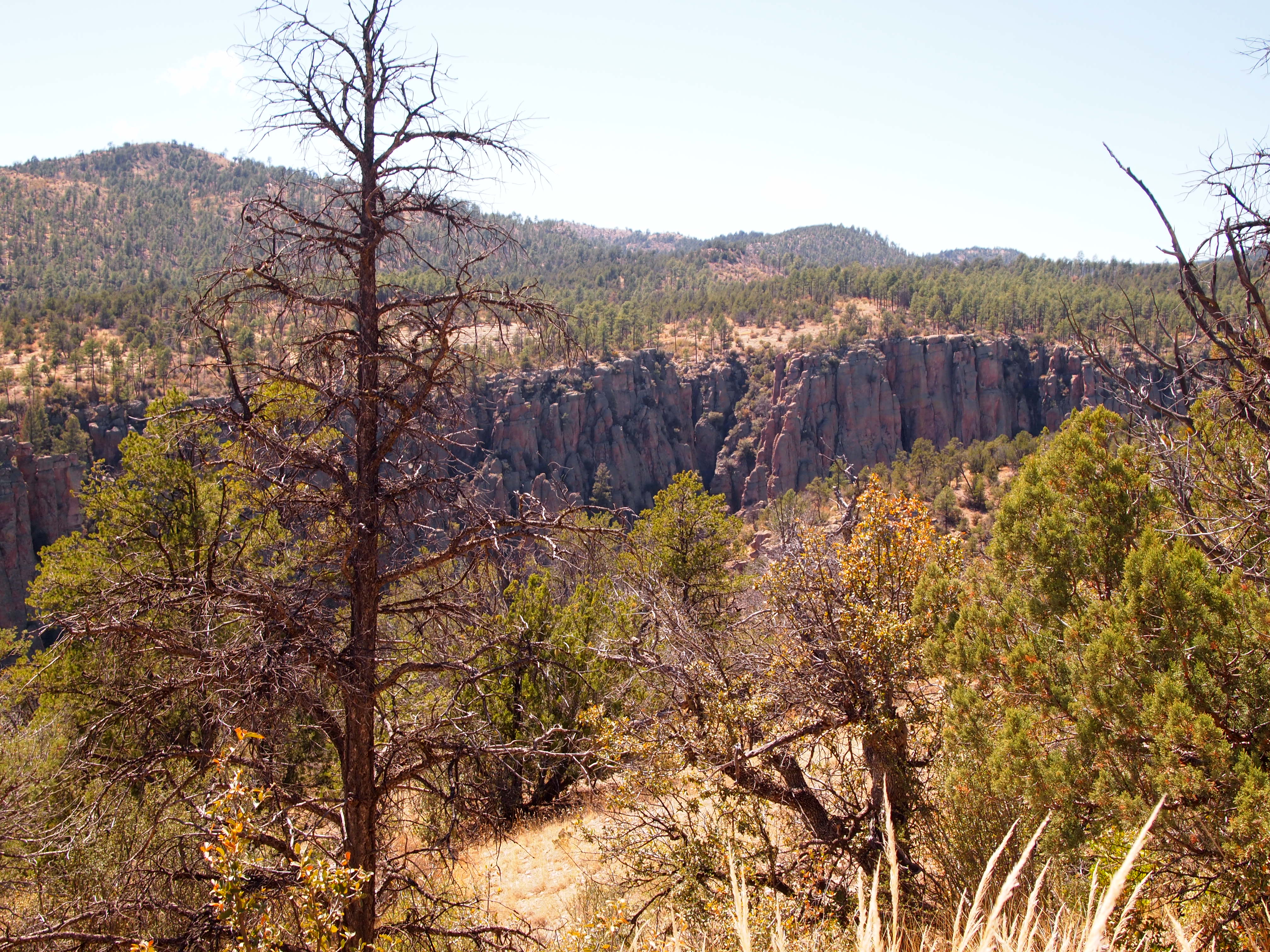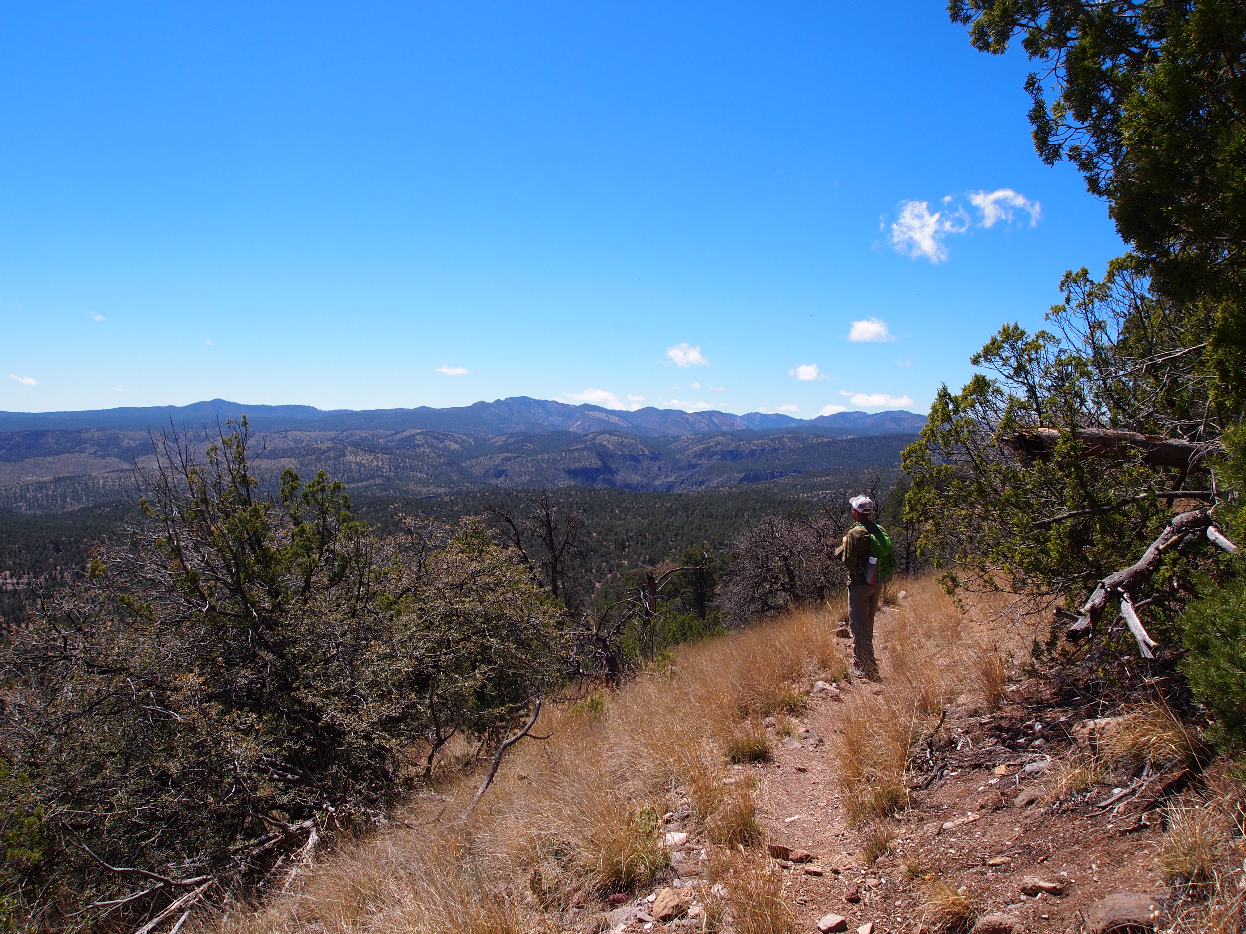 We chose an 11 mile day hike which took us up on the ridges between the Middle and West Forks of the Gila River where we had spectacular views of the wilderness area. From there we hiked down to the West Fork of the river and followed it toward the Gila Cliff Dwellings where we ended in the visitor’s parking lot. We did have a mile hike on the road back to our car which was less than exciting, but otherwise, the trail was a spectacular introduction to the Gila Wilderness.