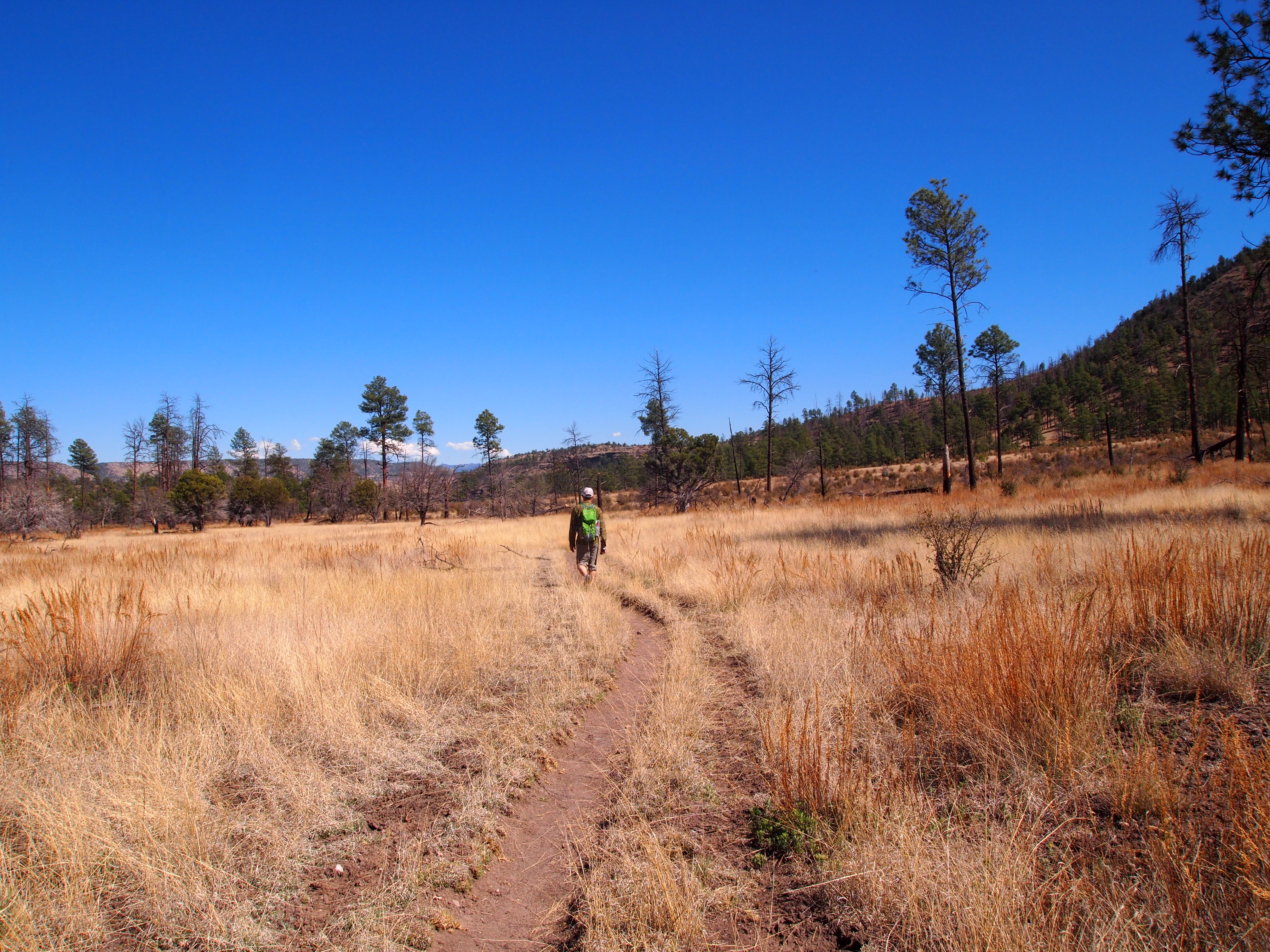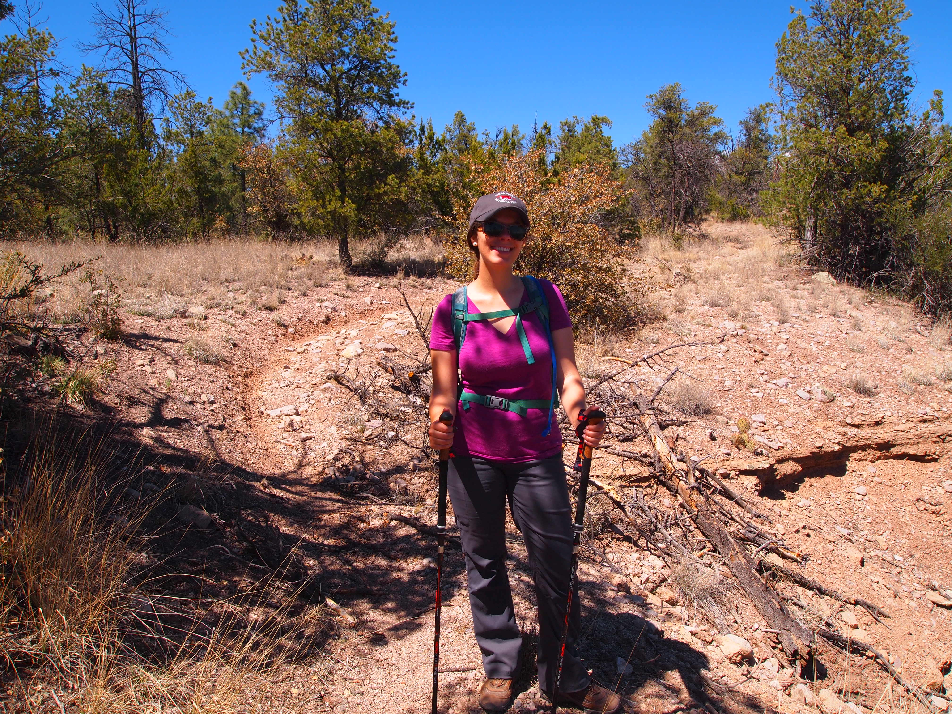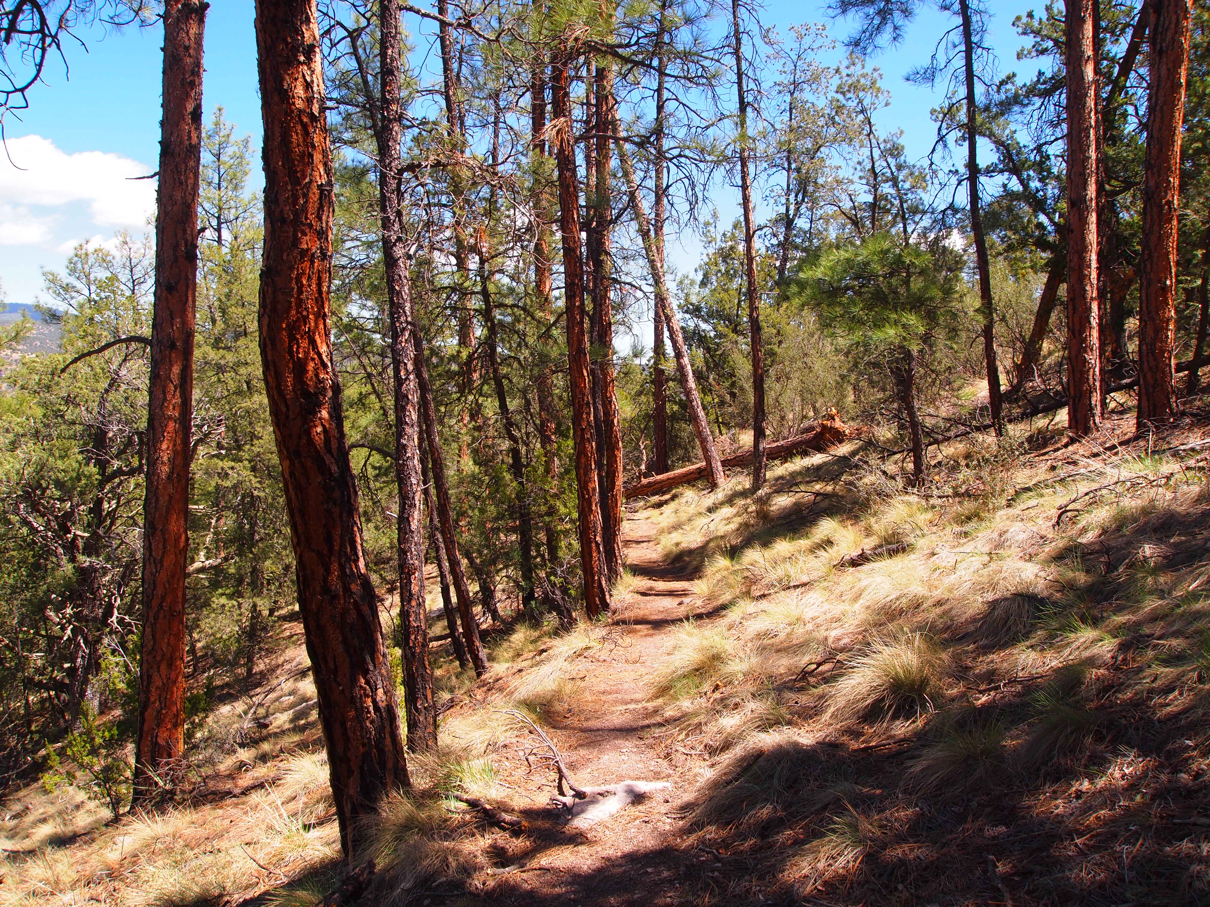 We turned at our first junction toward The Meadows, though our section was only 4 miles. This leg had the most scenic views of the valleys and mesas on either side of us and brought us into dense sections of Ponderosa pine. We also ascended to our highest elevation of the hike – 7000 ft. (a 1300 ft. gain) – before our descent into the West Fork valley.