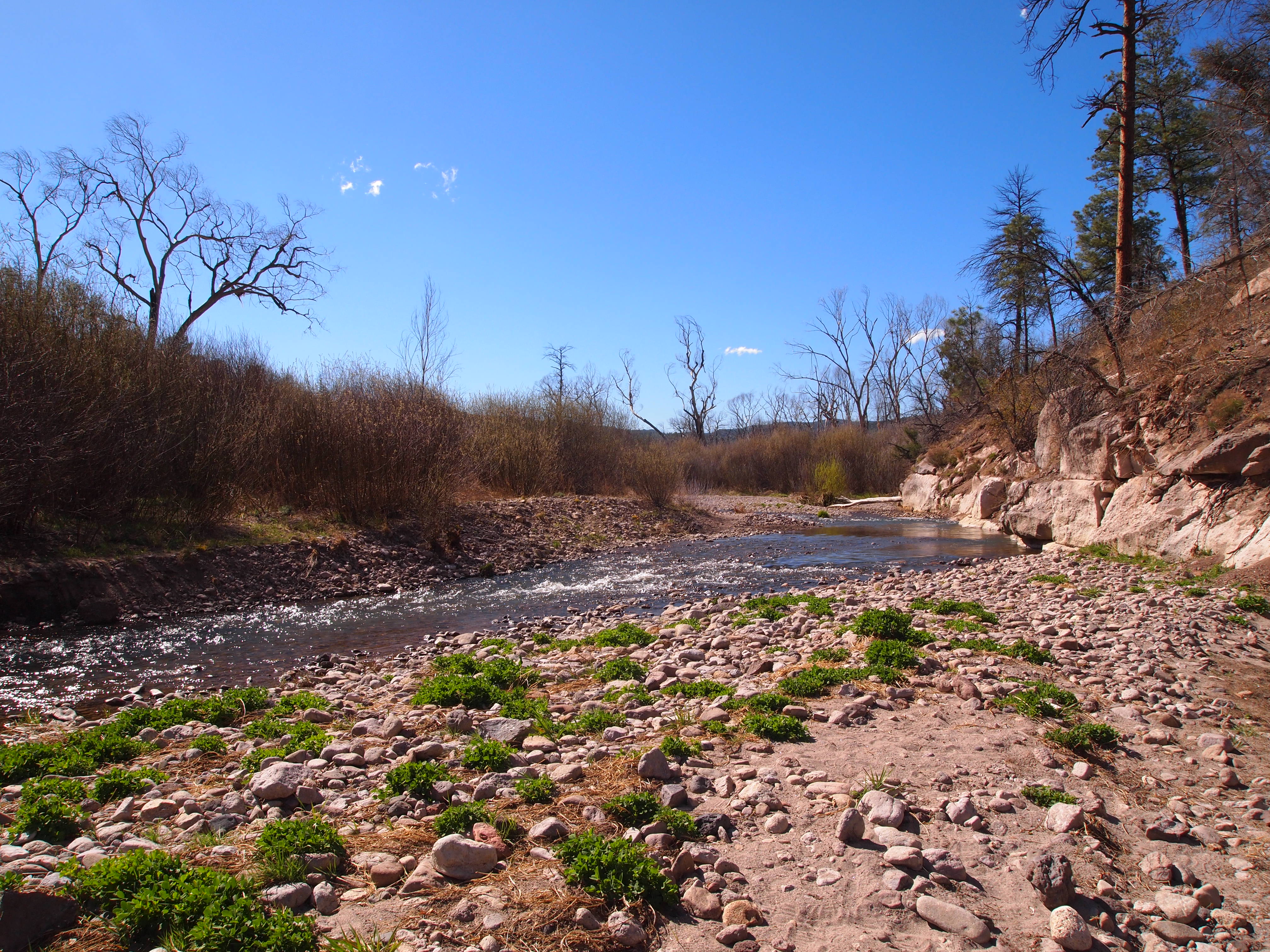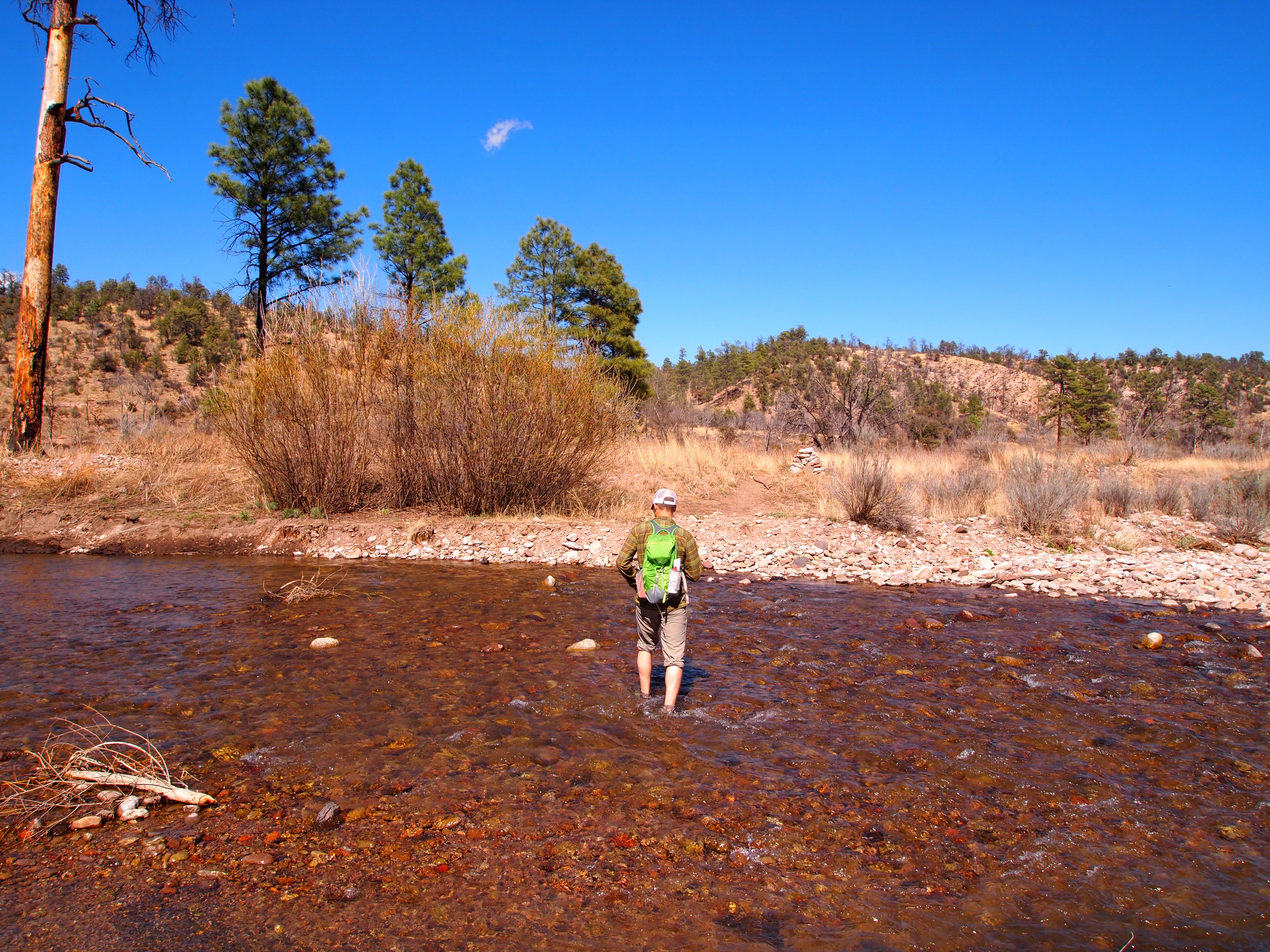 At the end of our descent we had to cross the West Fork in order to continue the final 1.75 miles. There were two more river crossings before we reached the end. I changed into my Chacos and finished the hike in them, but Zach forded in his hiking shoes. The final stretch felt much longer than a 1.75 miles, a never-ending trek to the finish. Finally, we crossed back in the National Forest and soon thereafter, into the parking lot of the cliff dwellings.