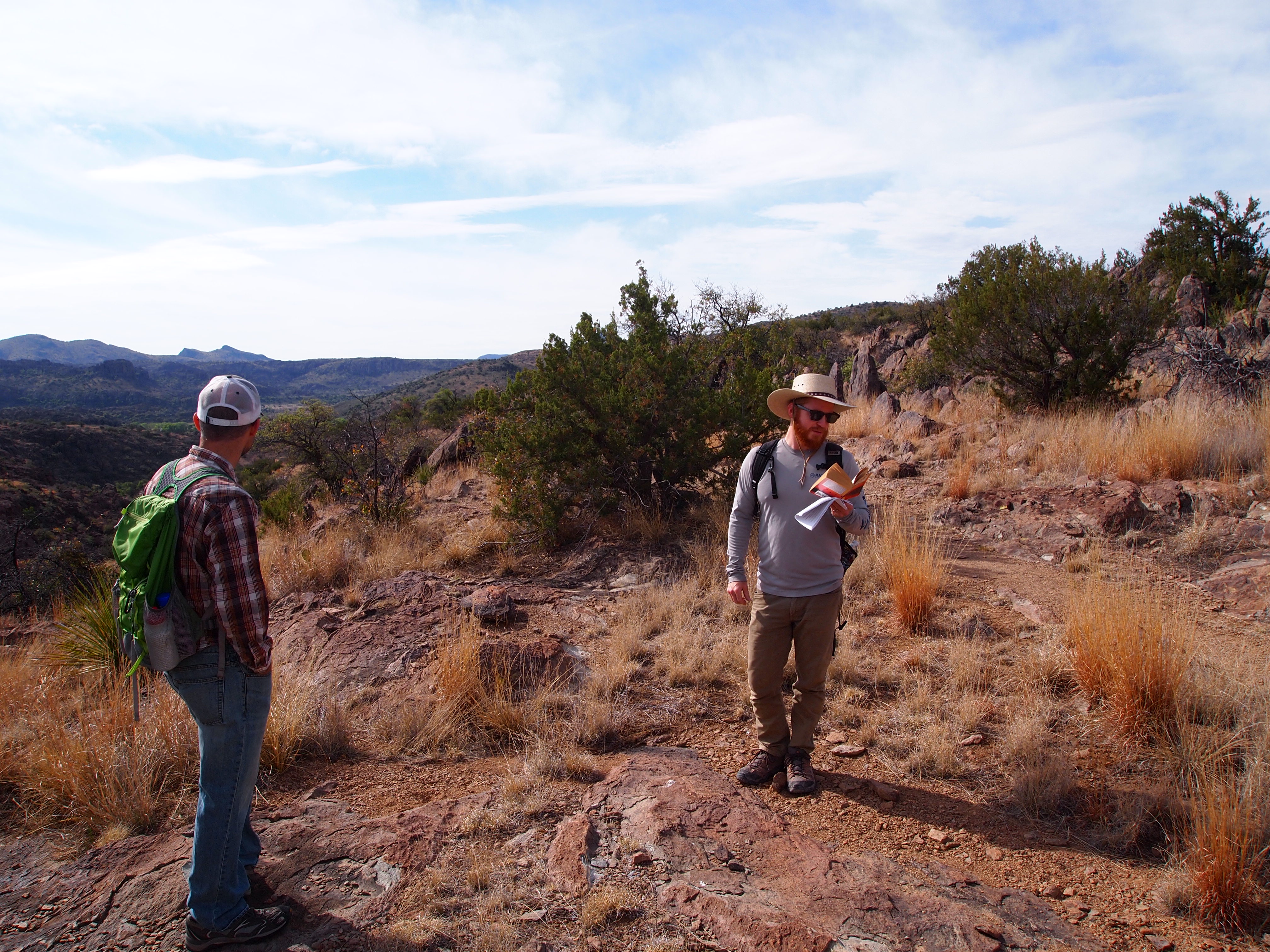 We ventured out on a Saturday morning to join our friend, Jeremiah, the priest for Marfa’s St. Paul’s Episcopal Church, for a contemplative hike. Jeremiah combined parts of the Modesta Canyon and Outside Loop trails to lead us on a 2 mile hike. Along the way we stopped to listen to Jeremiah read passages from Aldo Leopold’s A Sand County Almanac and John Muir’s Nature Writings. It was a beautiful morning, if a little windy, but made all the more complete when ruminating on beautiful ideas about nature while being amidst such gorgeous scenery.