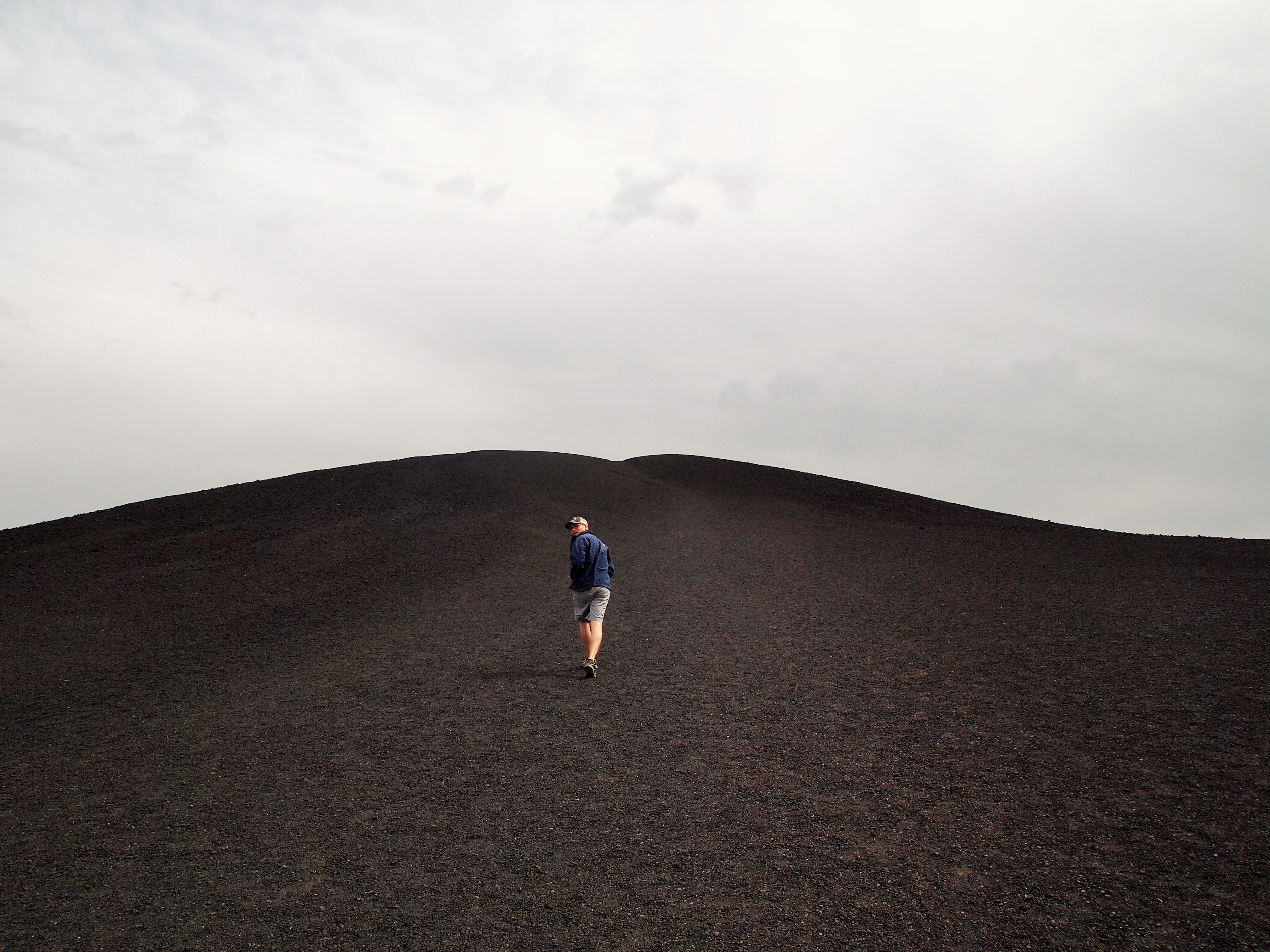 Just next to Inferno Cone were the spatter cones. We could walk up a steep path to the top of one spatter cone – which allowed us to gaze into the opening and down into the darkness over the safety of a chain-link fence. The other cone, Snow Cone, was shorter. It was aptly named as it still had snow glistening at the bottom of its shallow depths. All of the spatter cones have deteriorated from regular environmental forces but also visitors. In the early part of the 20th century, these spatter cones were hailed as excellent models of spatter cone structure. Before proper measures were taken to ensure less environmental impact, visitors could walk and climb all over the spatter cones which led to more rapid deterioration. It’s important that we, as visitors, help in the preservation of these special places by obeying park rules. Sadly, we witnessed poor behavior during our visit so not all of us feel this way.
