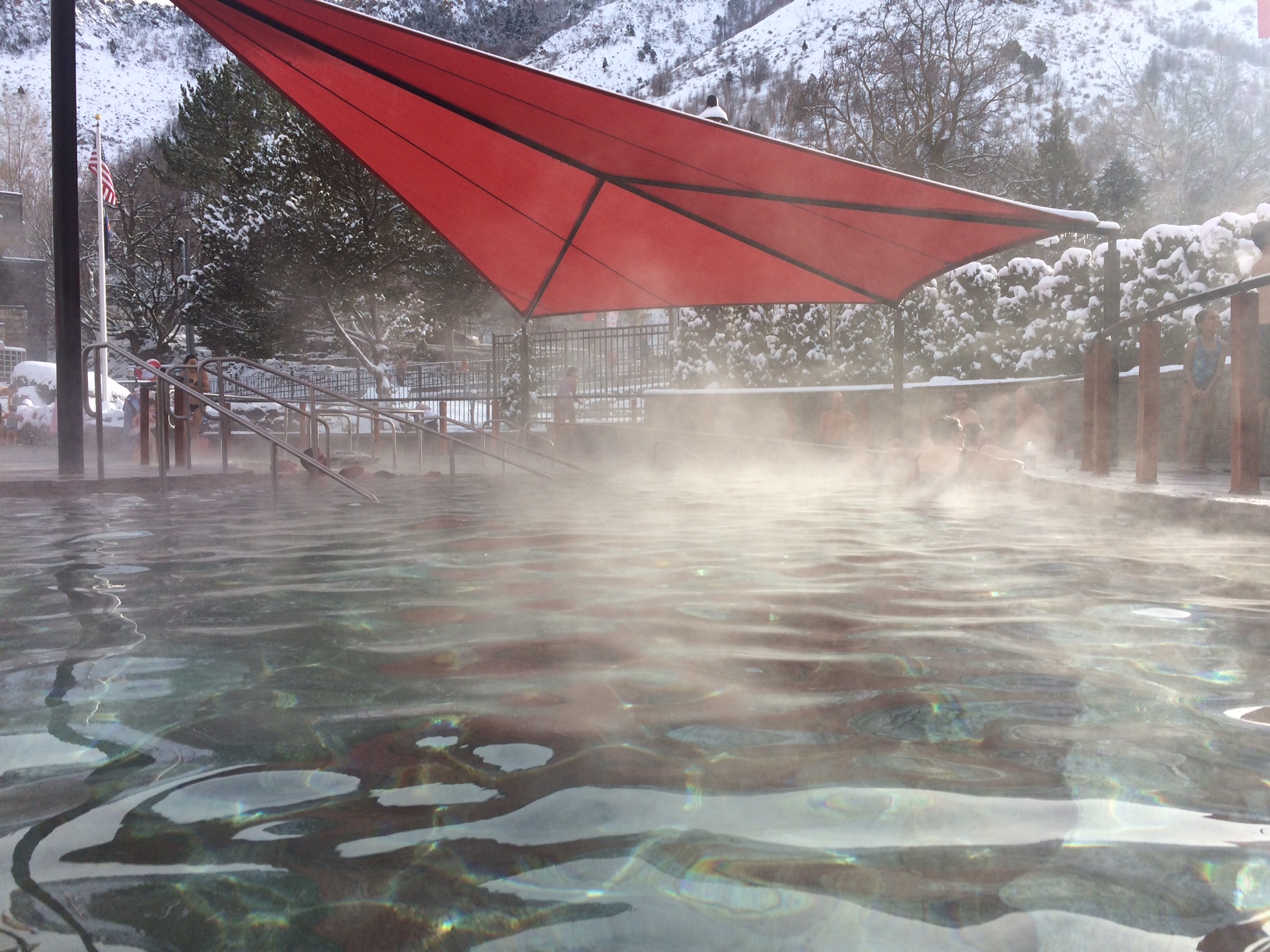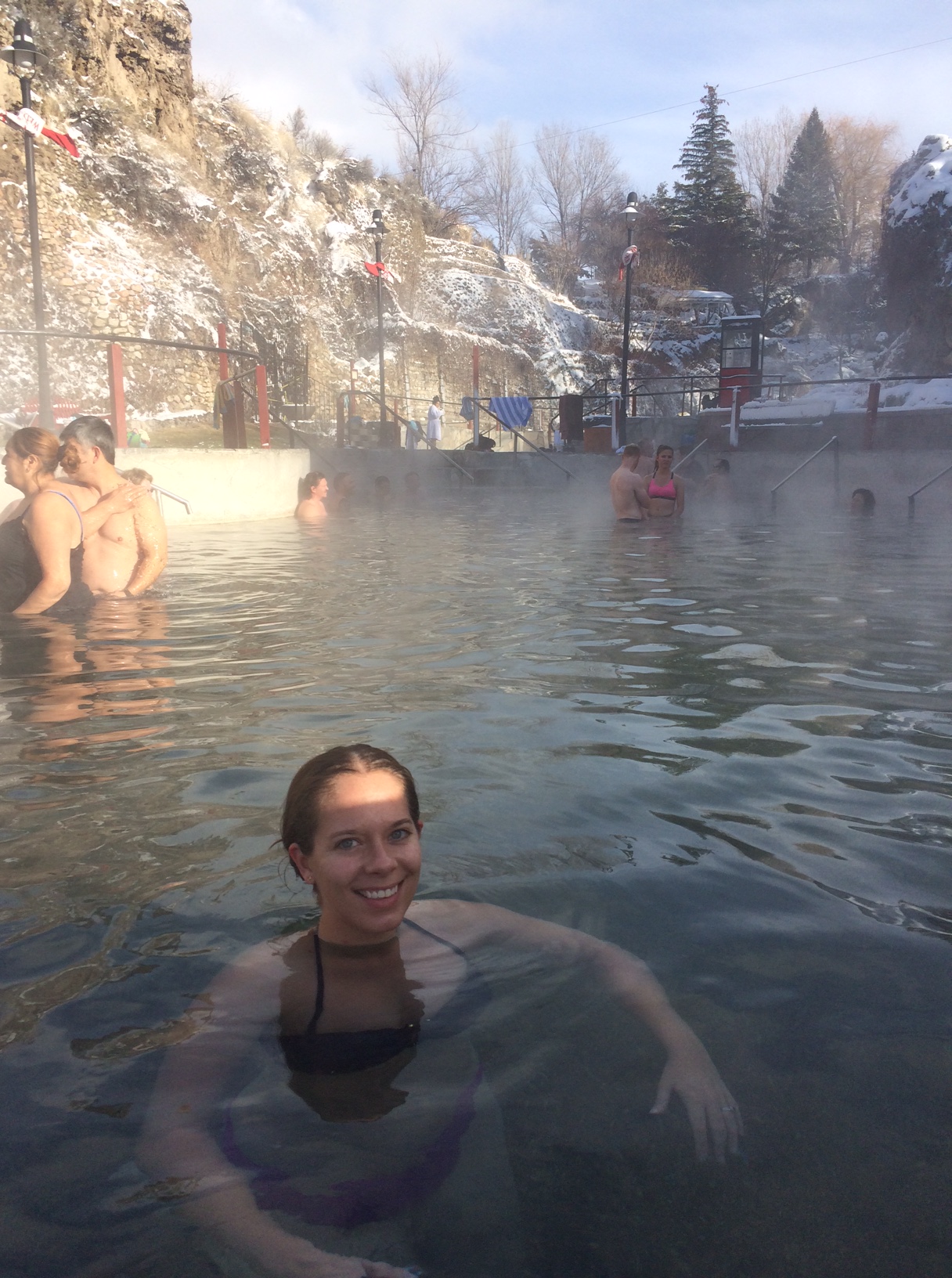 On Monday we took a short road trip to Lava Hot Springs, Idaho. Only a two hour drive from SLC, we had a little time to sleep in and still catch Chick-Fil-A breakfast hours down the road on I-15. Nothing like a chicken biscuit to start the day! The town of Lava Hot Springs, located on the banks of the Portneuf River, is book-ended by hot spring-fed pools and an aquatic center with an outdoor water park. A short distance from nearby Pocatello, it’s a small town of roughly 400 people looking to attract visitors on their way to the Tetons or other parts of Idaho. It’s the perfect day trip for folks from SLC and offers even more in the summer with camping, river activities, and a zip line (which can be done year-round but who wants to zip line in 20° weather?).