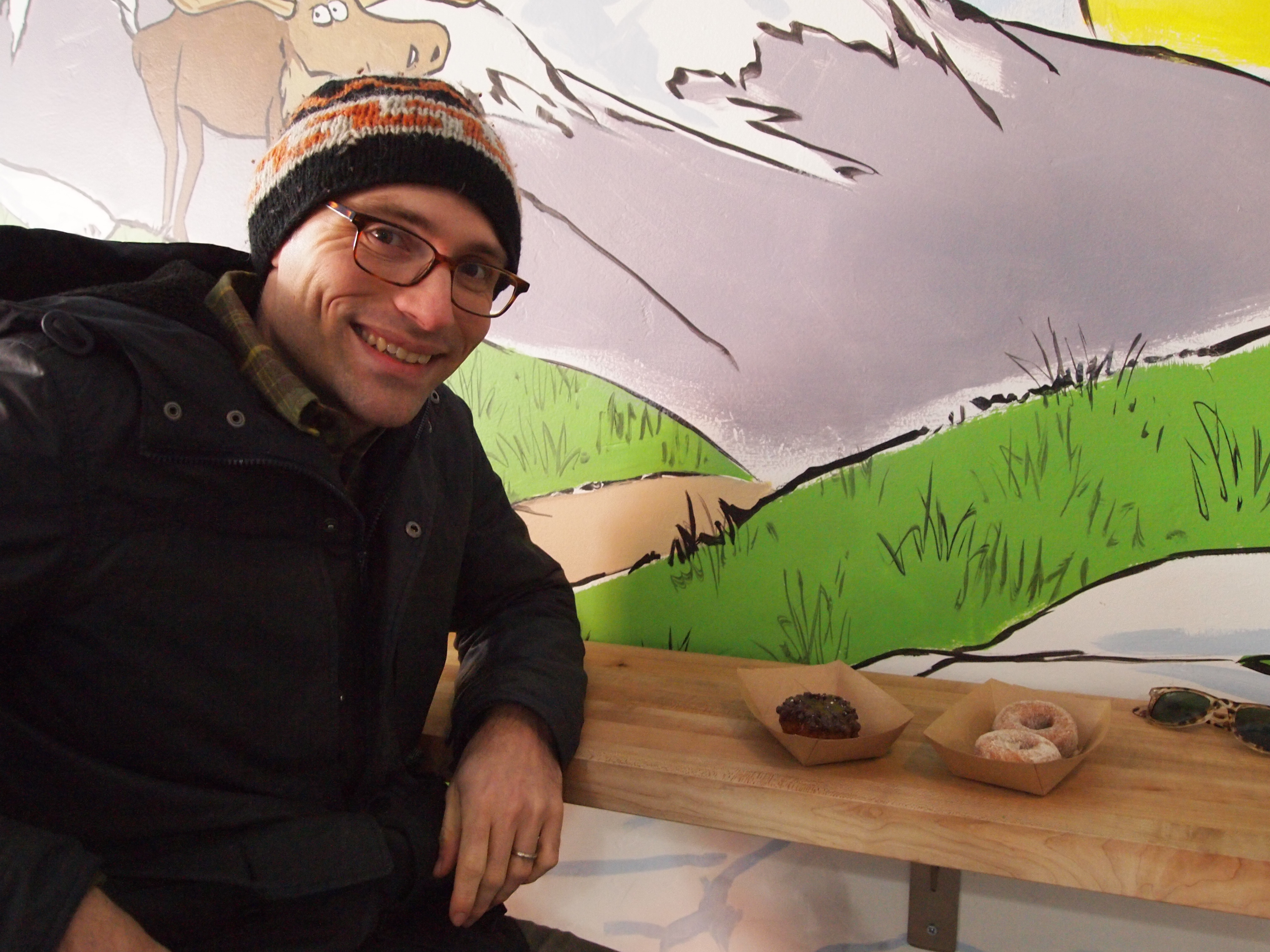 We went up on Sunday during the first weekend of the festival to do some celeb-sighting (Elijah Wood!) and generally hang out to see what all the fuss was about. I had a couple movies picked out so we could try out the waitlist. I quickly learned that the popular films’ waitlists fill up within seconds! I tried to get us on the waitlist for Wind River (a movie we will definitely see when it hits theaters) and, even though I joined the list as soon as it opened, we ended up as numbers 259 and 260. Yikes. So I changed my tactic. I picked out a foreign film from Georgia, My Happy Family, joined the waitlist as soon as it opened and BAM! numbers 16 and 17!! We had a very high chance of getting in so we gobbled some donuts and left Main Street to get to the theater.