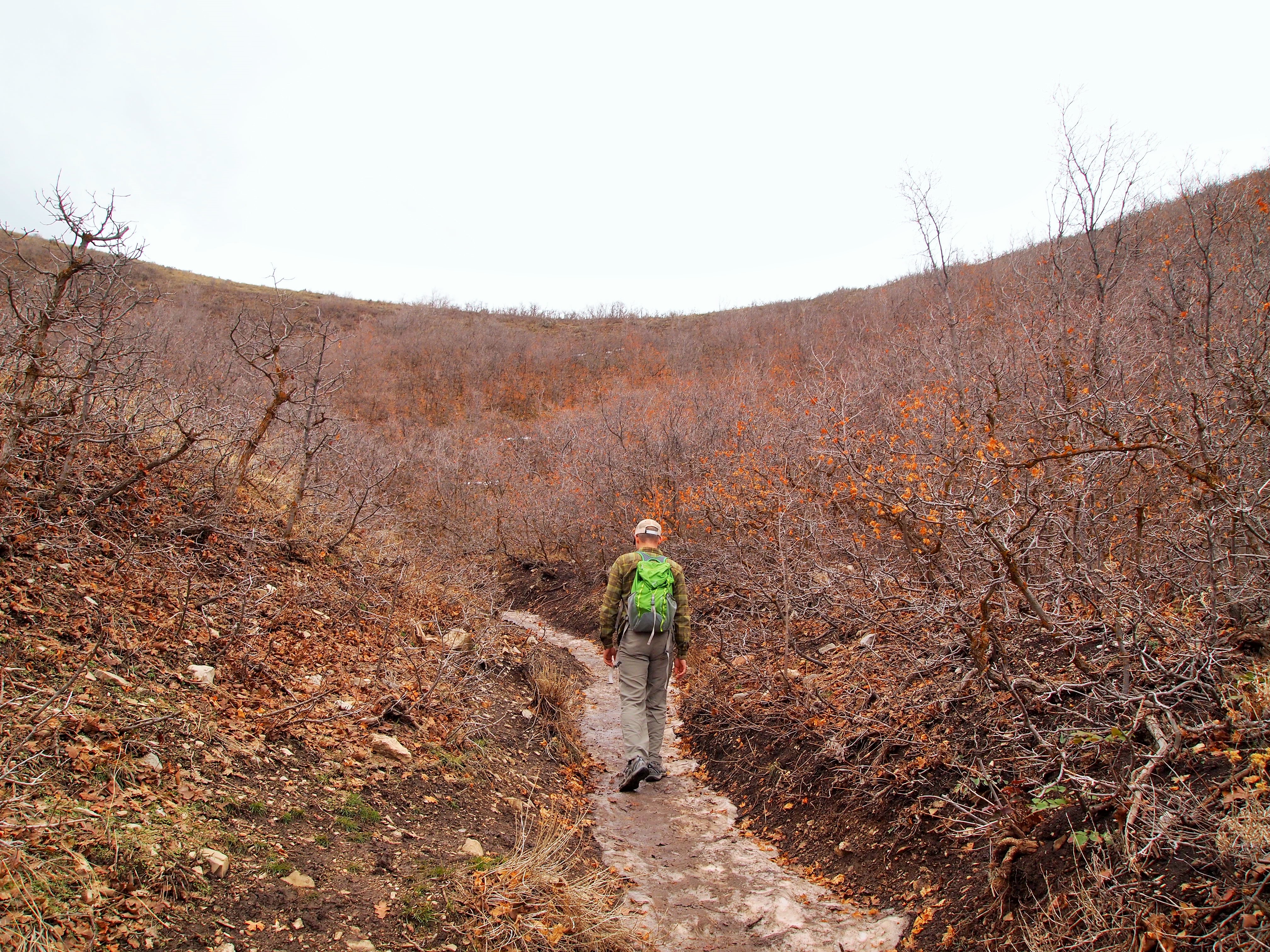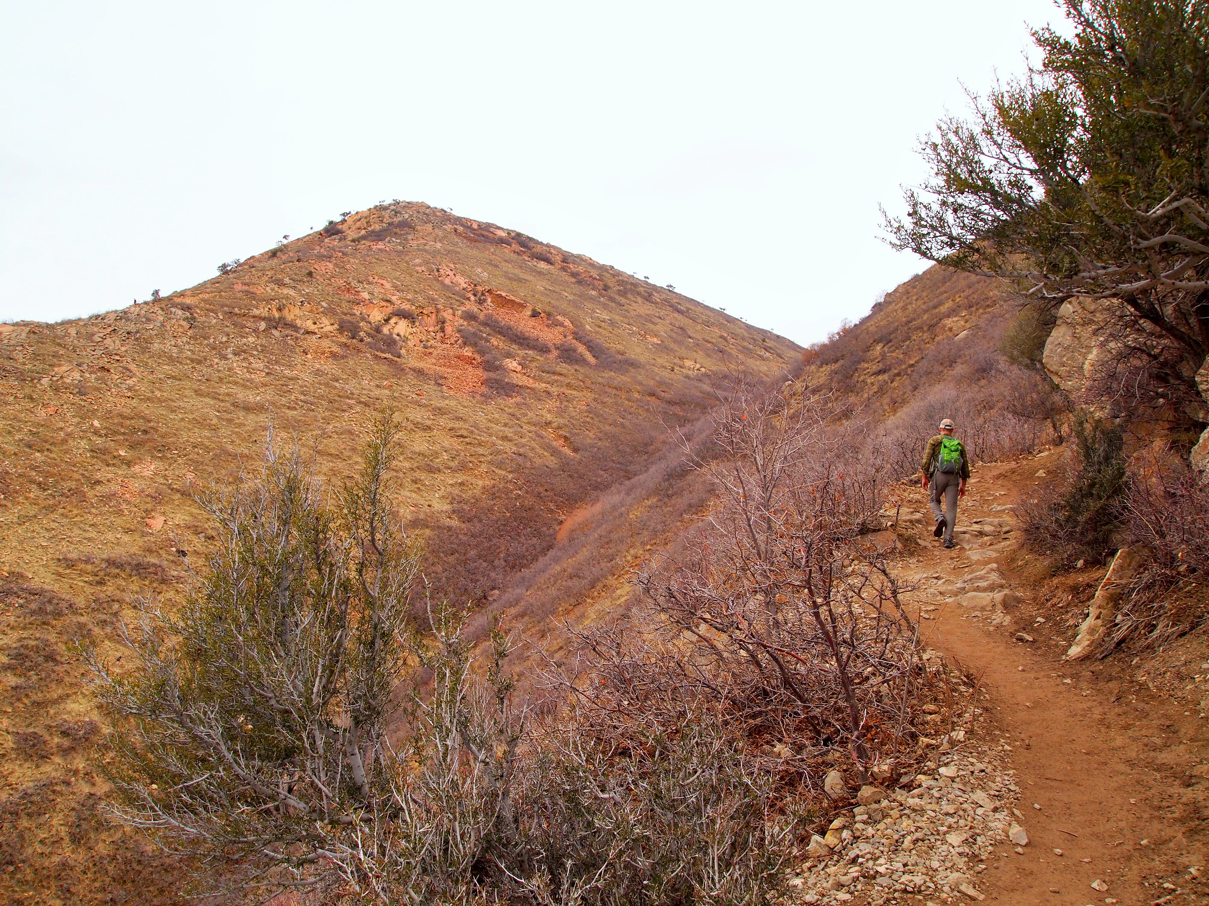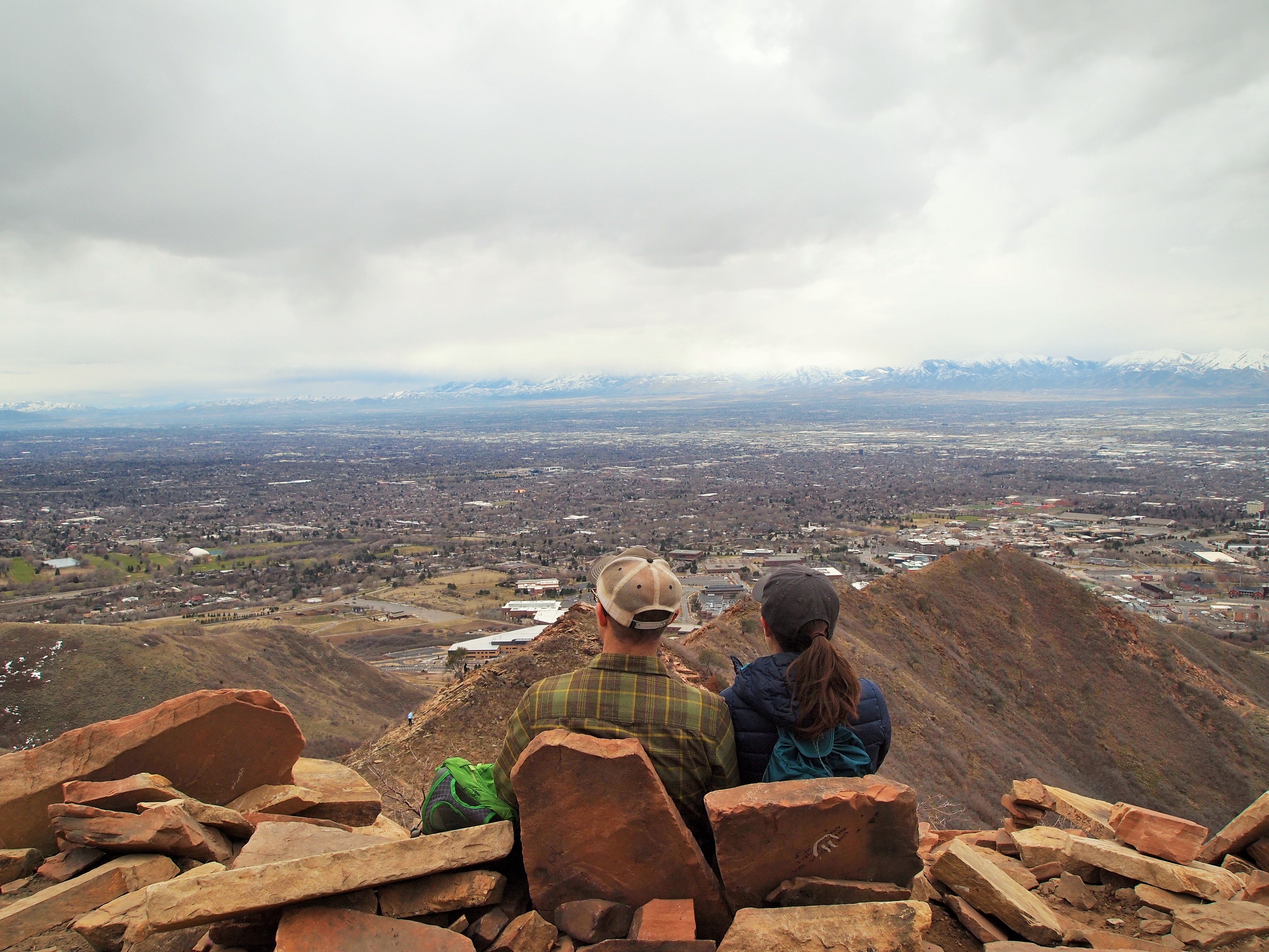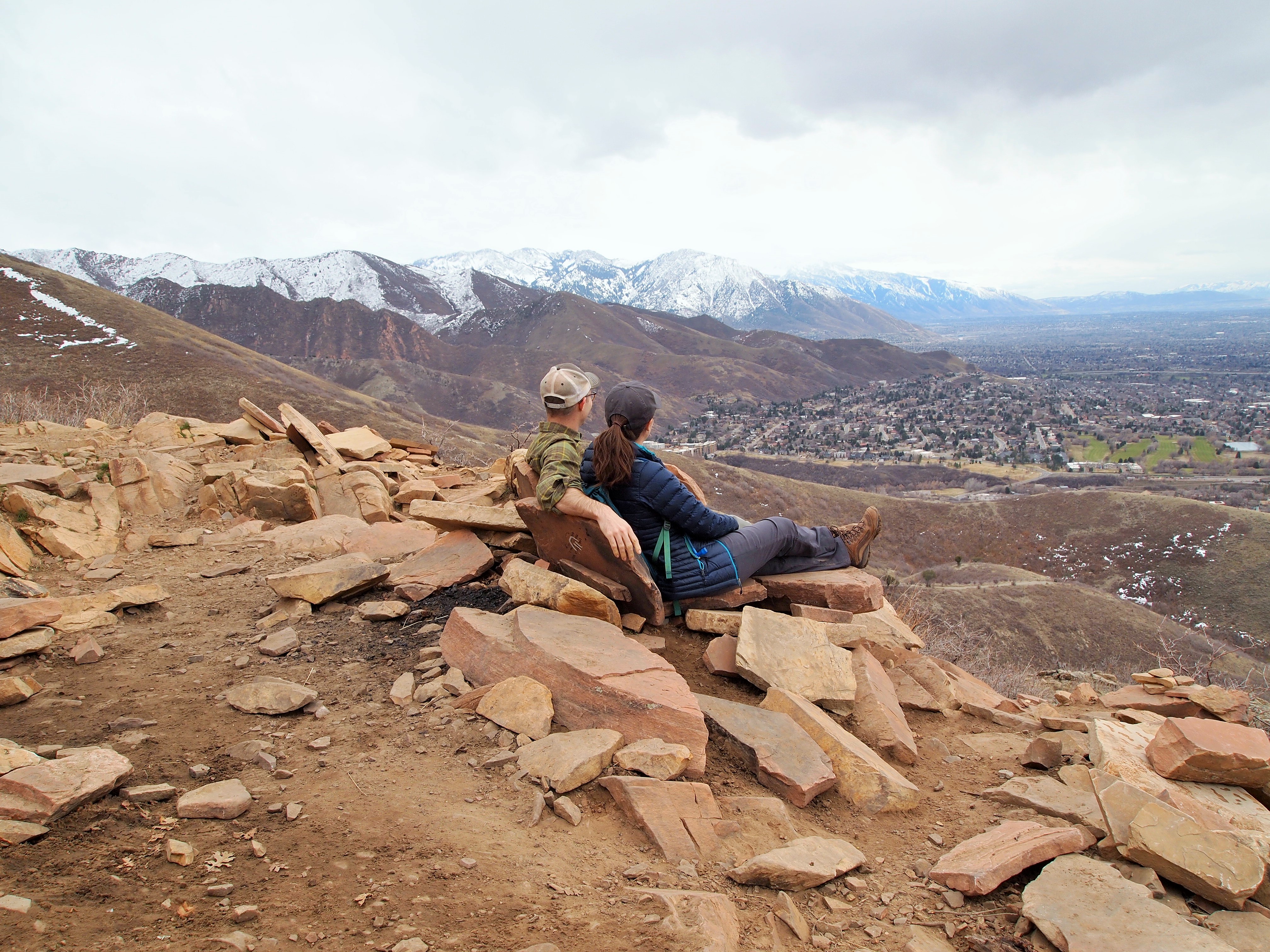 Anyhow, we took the opportunity to do a short hike in the bench above the University of Utah to a spot locals call The Living Room. It’s a quick hike, but steep, ascending roughly 1,000ft. over less than 2 miles. There are two routes up – a steep trail over a ridgeline or a more gradual one through a ravine. We took the gradual route since I have knees that I love and want to keep.