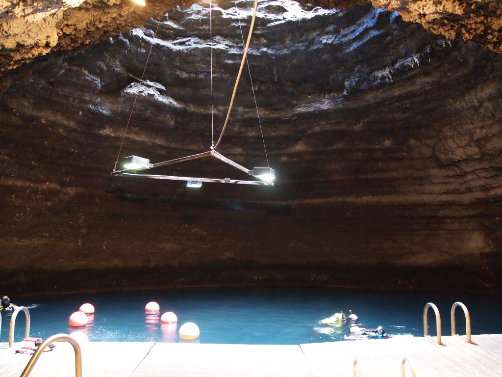 Since the crater is also the only warm scuba diving site in the Continental US, it’s a popular destination for diving lessons and hour logging. There were often pockets of air bubbles floating up around us which was alarming until I saw their producer, a fleshy alien-like form slithering below me.