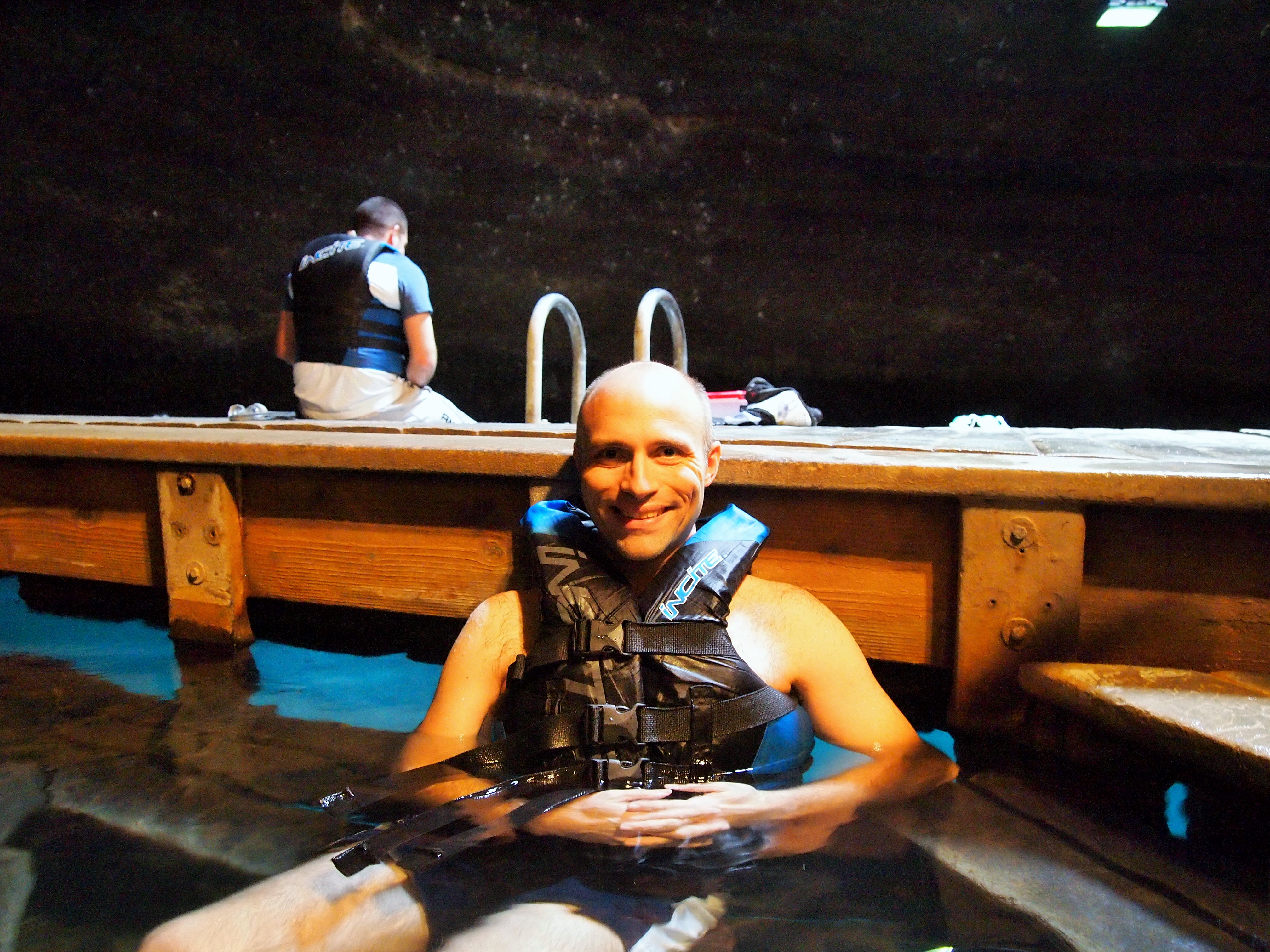 The mineral water fluctuates between 90-96 degrees F to create the sensation of warm bath, definitely a bit cooler than some of the pools at Lava Hot Springs, but it was pleasant for bobbing around. Since most hot springs I’ve visited are shallow pools, the Homestead Crater didn’t feel quite right at first. It’s like swimming in an indoor swimming pool, but in a slightly claustrophobic space. The absence of a shallow bottom was more unnerving than I expected. Thankfully, the dome isn’t fully closed; the presence of light from both the floodlights and the top of the crater made it less sinister.