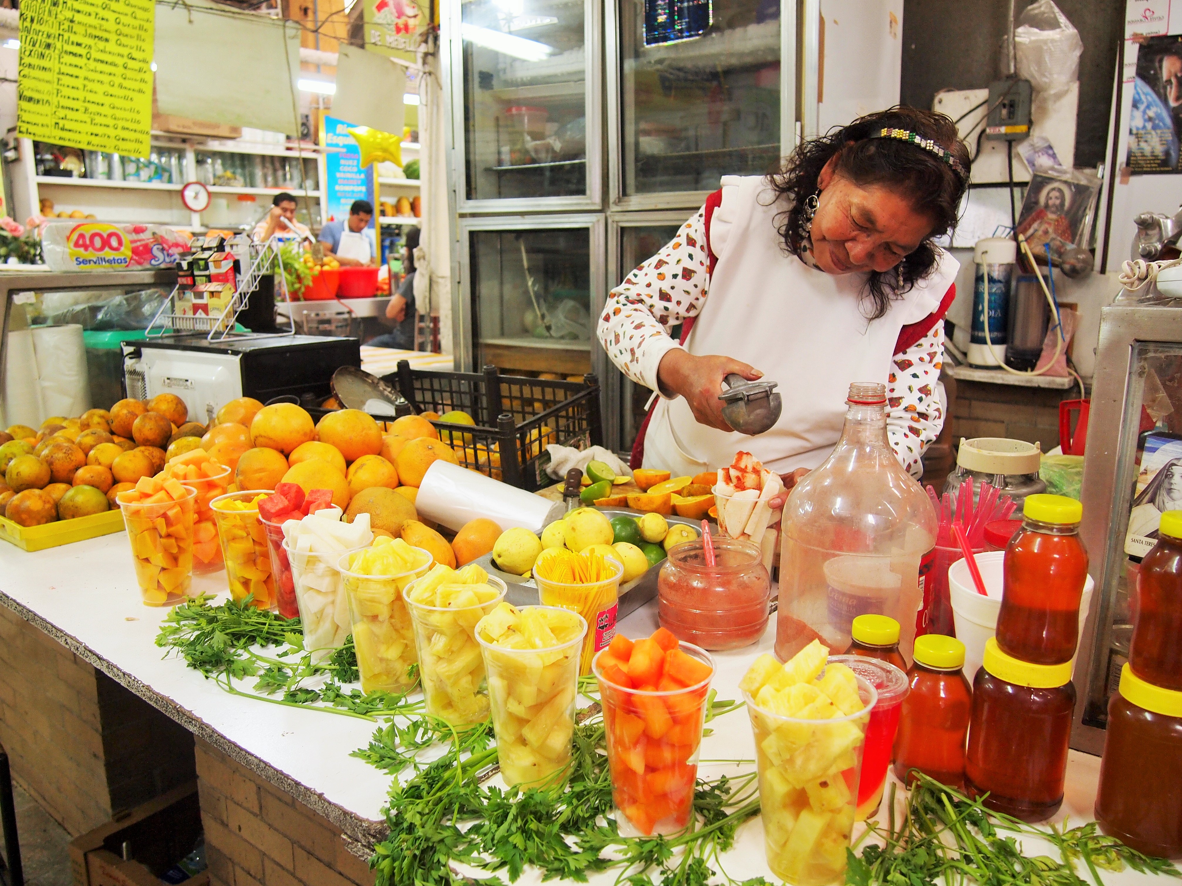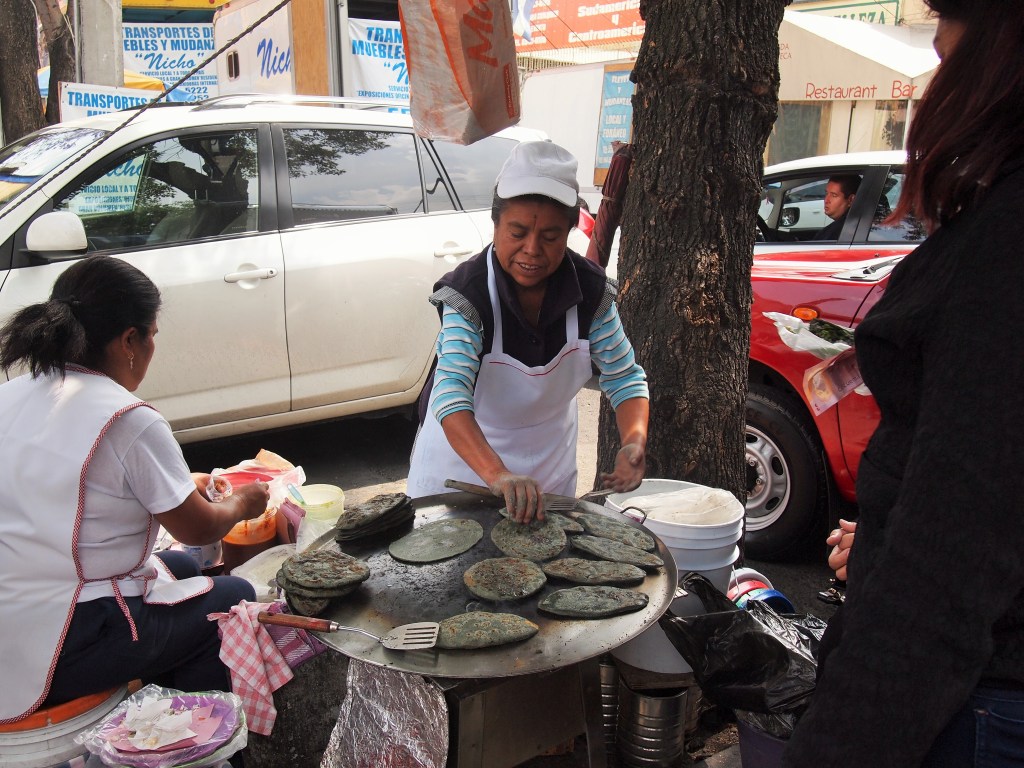 Another great spot was Mercado Medellin, a recommendation from both of our Airbnb hosts. We spent a decent amount of time at the market. It was our first stop after Tim arrived in town and only a block north of his place. I think the highlight was the woman in front of the market selling quesadillas. Quesadillas in Mexico City are not the quesadillas you know. I mean, in theory, they are. But they are just so much better! Fresh, hand-pressed blue corn tortillas filled with cheese and a variety of fillings cooked on the griddle in front of your eyes. It’s hot and gooey and actually warms your heart. Your order is served on a plate covered in plastic for easy clean up. Once inside the market we poked around a bit before sitting at a seafood counter for some ceviche and soda. Tim and Zach later ended up with some jicama, and Tim stopped for another quesadilla (or two?) before we finally left.
