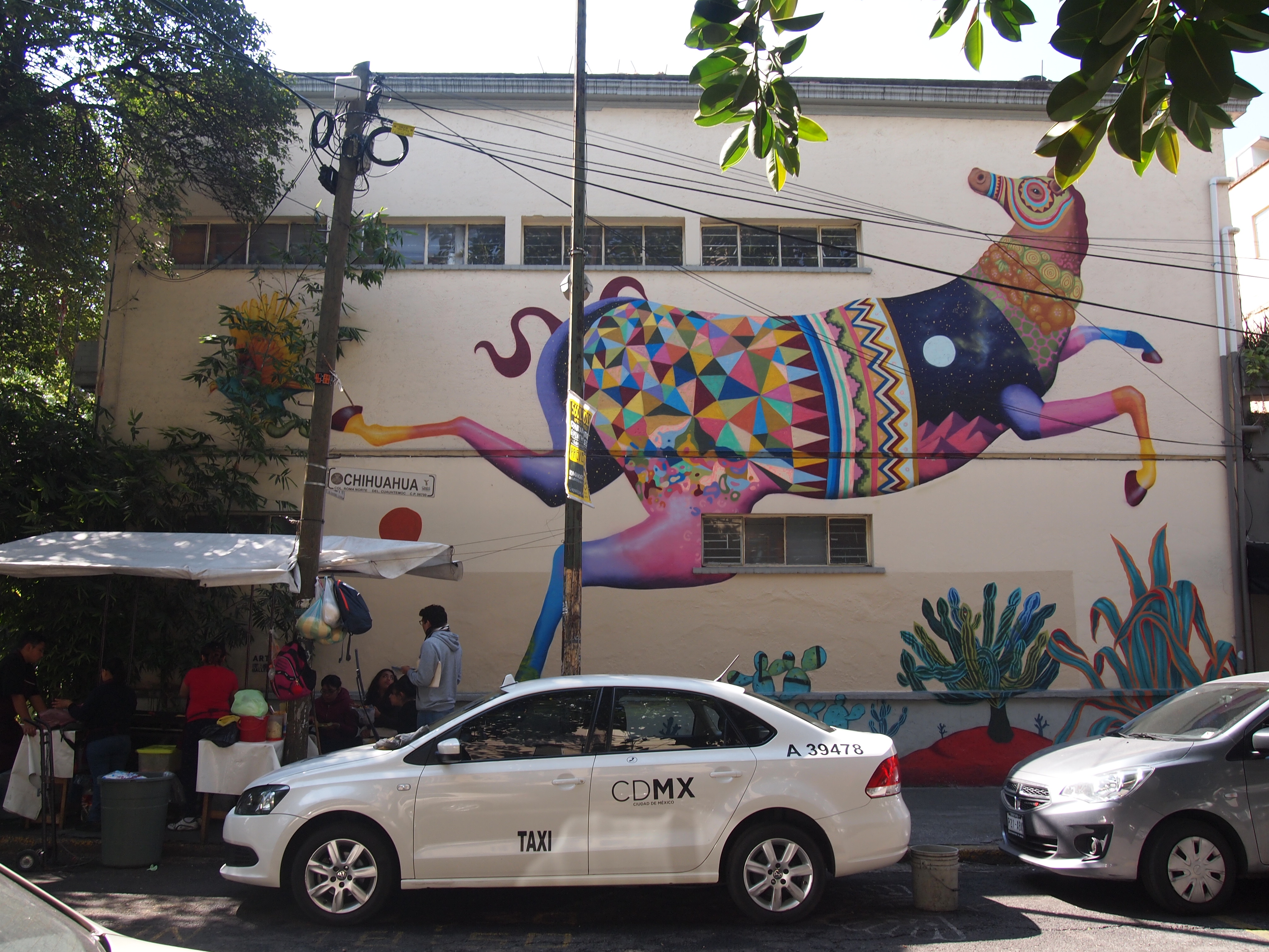 Roughly ten blocks north of our temporary home, Roma Norte began. The main avenue, Obregón, is a wide boulevard lined with shops, restaurants, and bars and split by a pedestrian walkway. Roma Norte is home to some amazingly hip joints and we thoroughly enjoyed eating our hearts out. Plus, there’s street art and food vendors around every corner, gorgeous 19th century mansions, and some eclectic architecture.