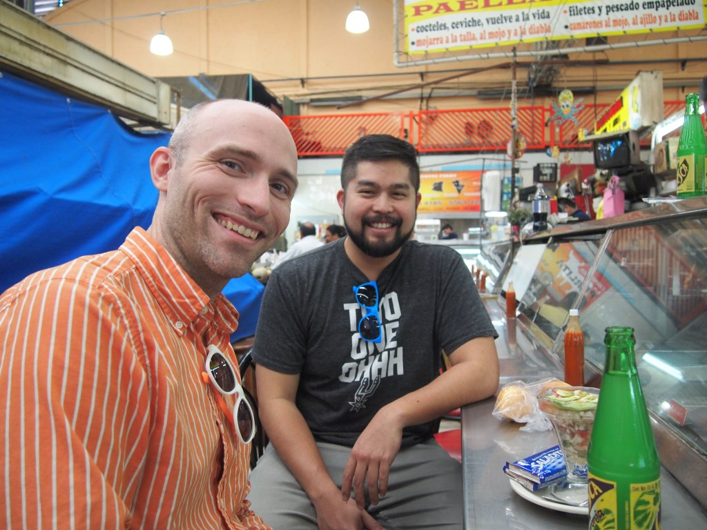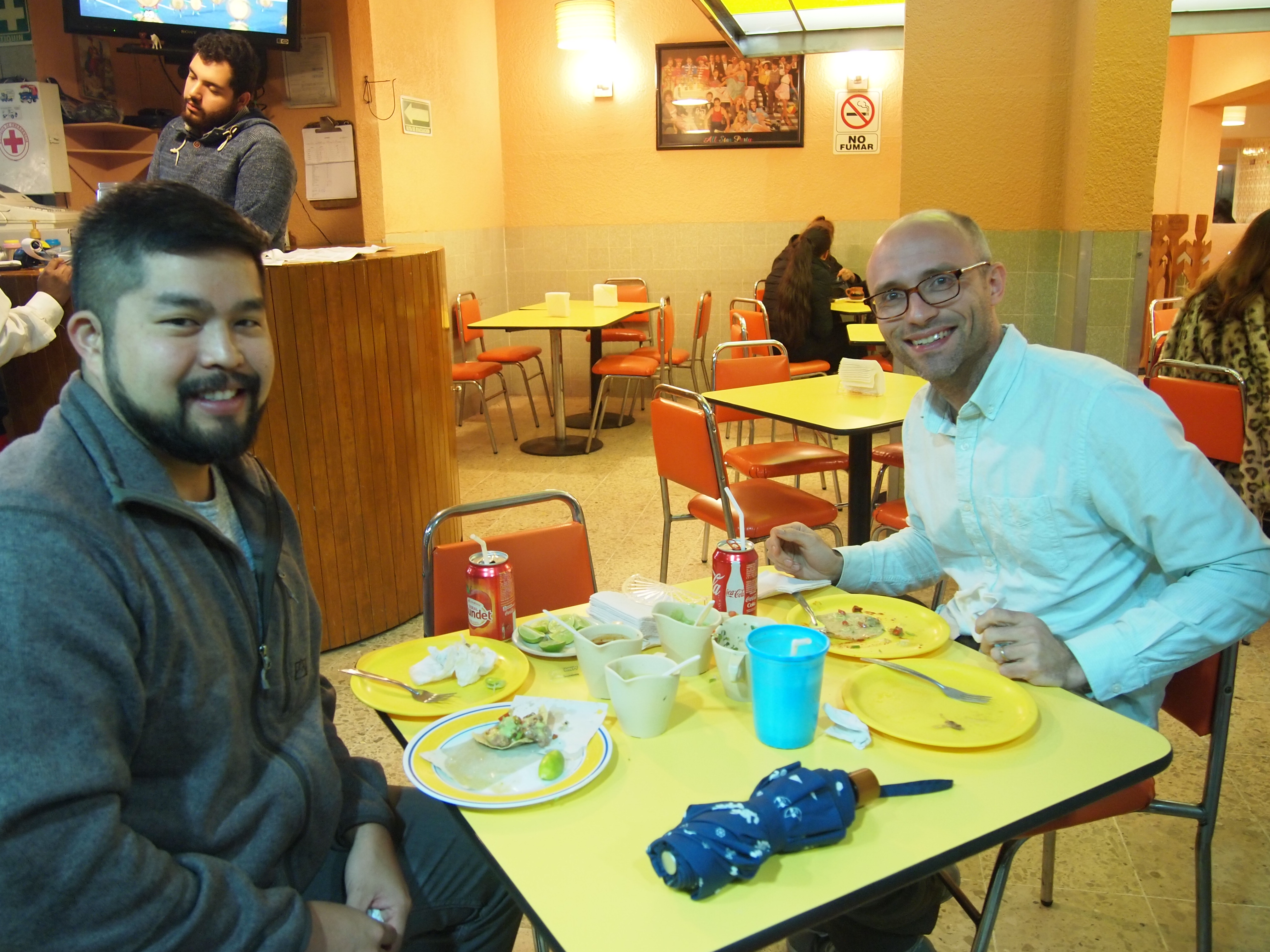 If you can believe it, we actually went directly from the market to Los Parados for al pastor tacos, Mexico City’s specialty. It was everything you want in an al pastor place – walk up, the trompo (vertical spit shaped like a spinning top) glistening with delicious meat and a pineapple topper, cheap. Don’t ask me how many Tim ate.