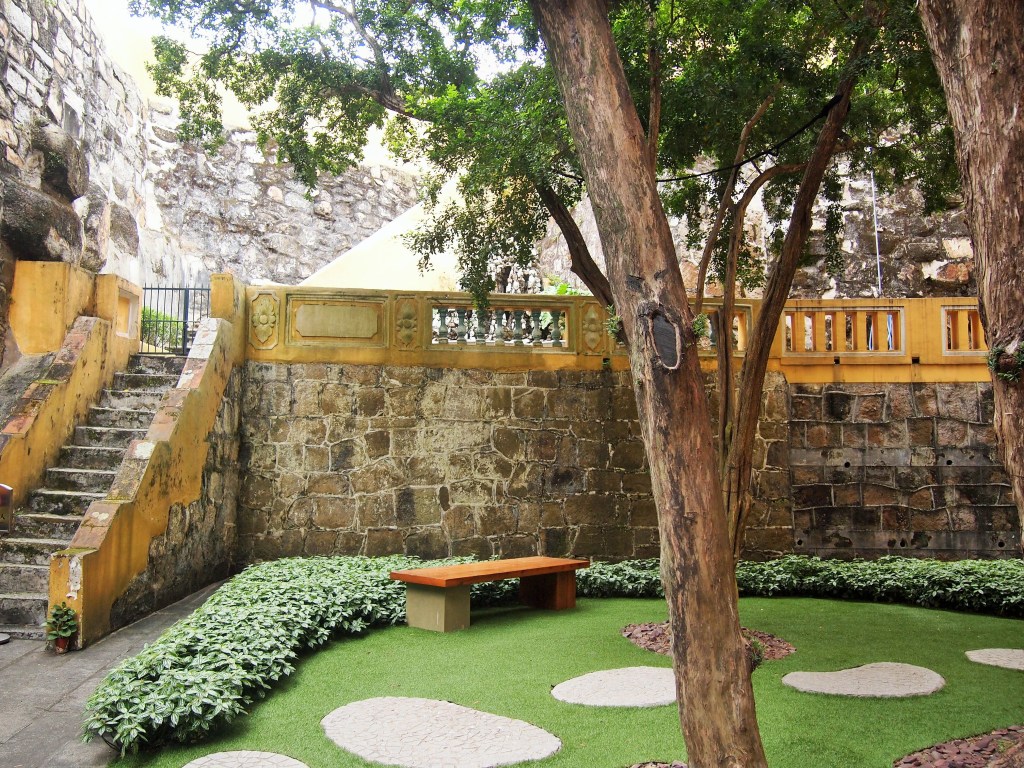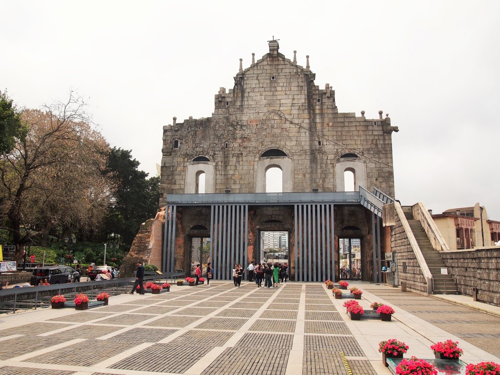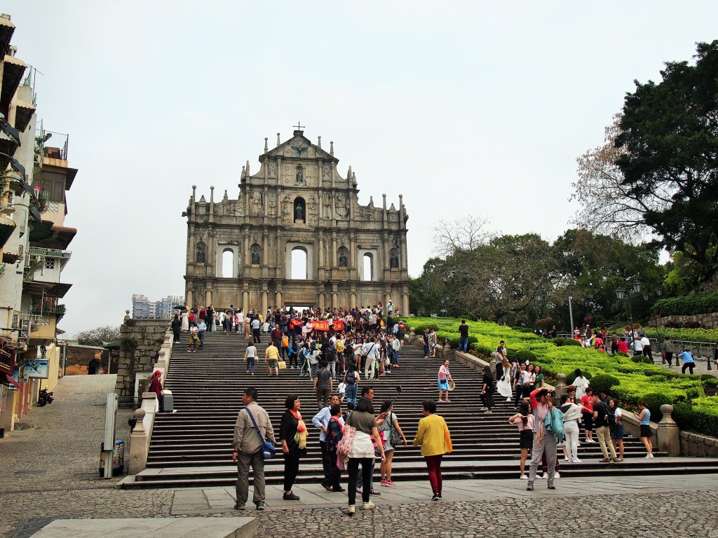 The center of it all is Largo de Senado, or Senate Square. Framed on one end by the city hall, Leal Senado, the square is often filled with selfie-stick toting tourists and shoppers laden with bags. Cobbled waves lead strollers past neo-classical buildings painted in pastel colors toward São Domingos, a baroque church established in 1587 by three Spanish Dominican priests. From there a maze of narrow streets leads visitors past storefronts for Korean skincare products; the Macanese institution, Pasteleria Koi Kei with Portuguese and Chinese style pastries and all kinds of jerky; and other souvenir shops to Macau’s most iconic site, Ruínas de São Paulo, or the Ruins of St. Paul’s. The facade is all that remains after a fire destroyed the church in 1835. The ruins combine Eastern and Western design elements; there are statues of Jesuit saints and the Virgin Mary, Chinese lions, a Portuguese ship, and Biblical inscriptions in Chinese. Behind the facade you can enter the crypt which is located where the altar of the church once stood. There is a tomb in the center of the crypt and remains of martyrs from Japan and Vietnam line the sides.